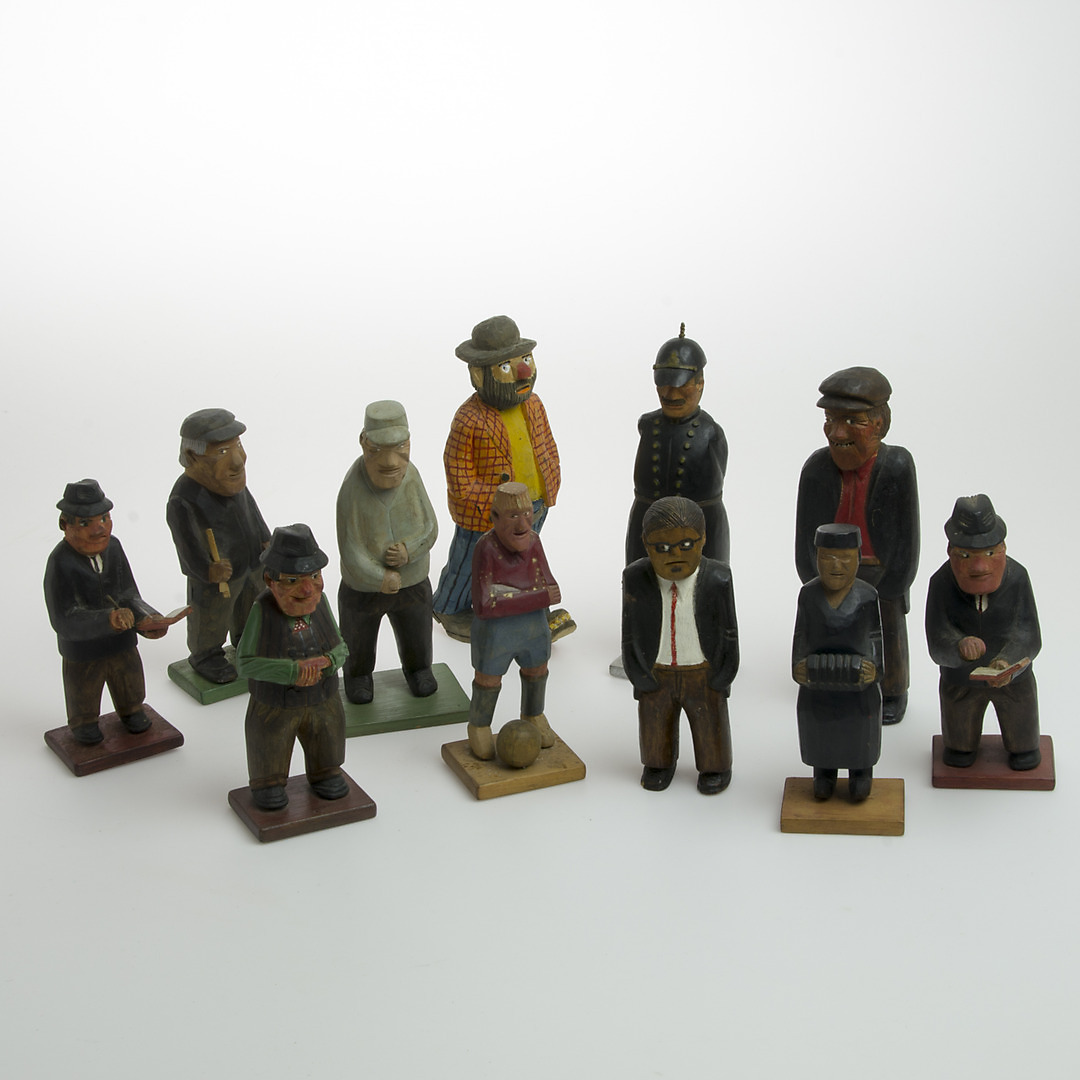 489403. SKULPTURER, 11 dele, udskåret træ.