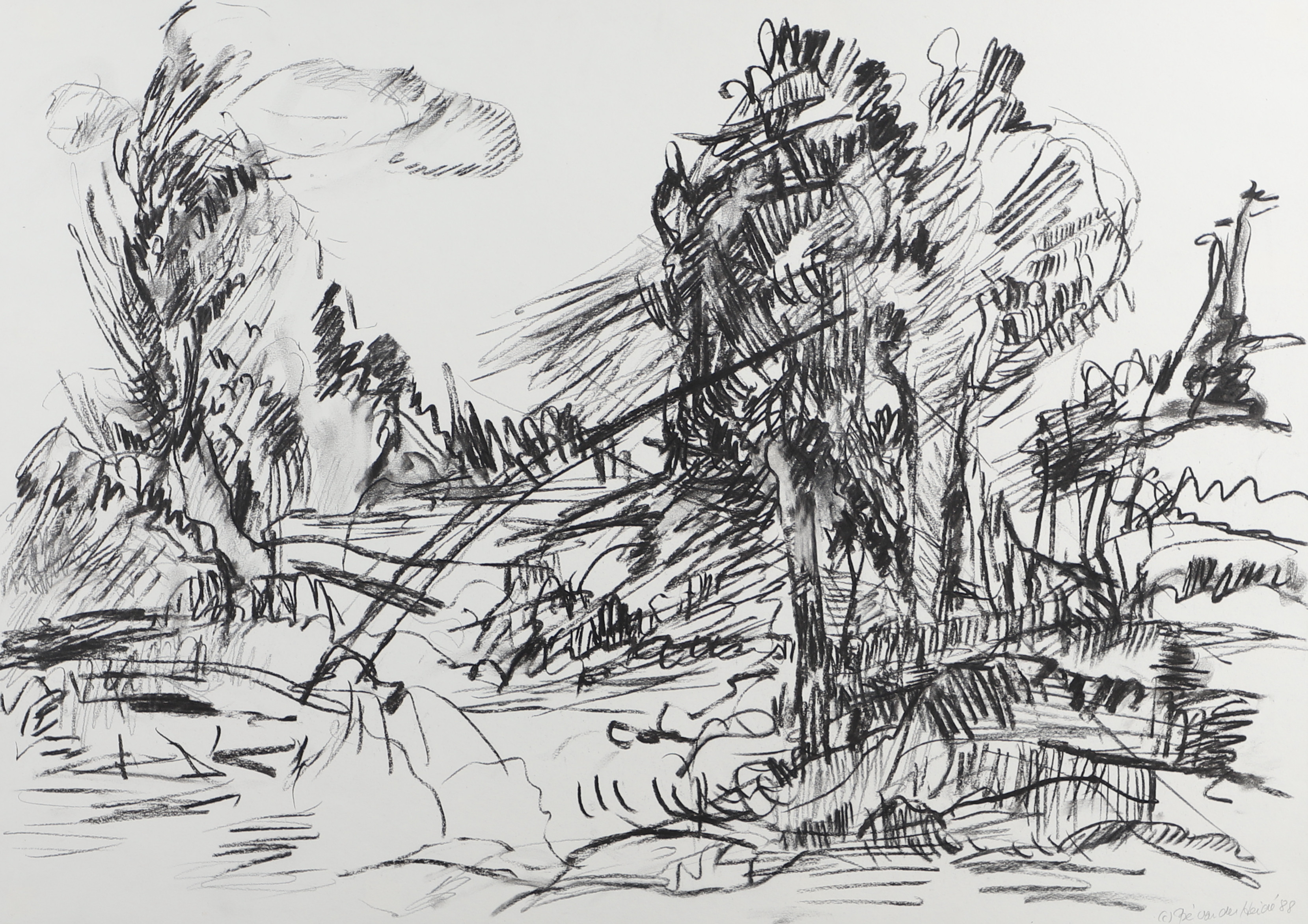 4894752. BÉ VAN DE HEIDE (B. 1938). LANDSKAB MED TRÆER.