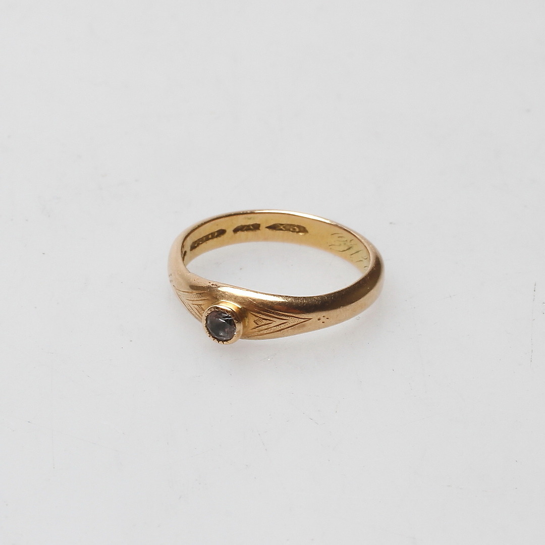 489611. RING, guld, 18k, med syntetisk sten, totalvægt ca. 3,0 gram.