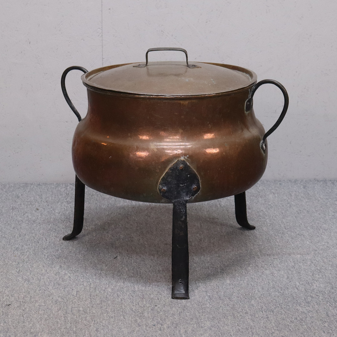 4897709. KOBBERPOTTE PÅ BEN, 1800/1900-TALLET.