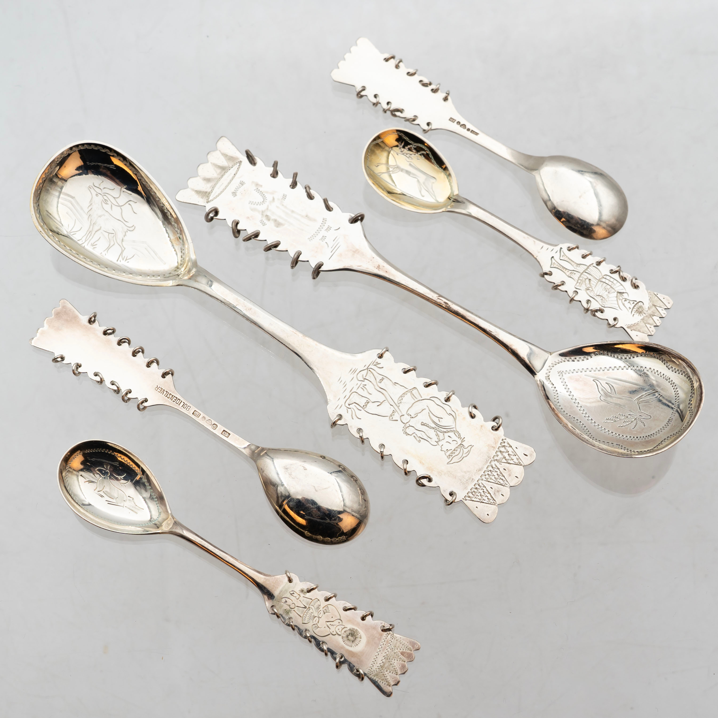 4900379. En samling af 19 sølvskeer, 20. århundrede.