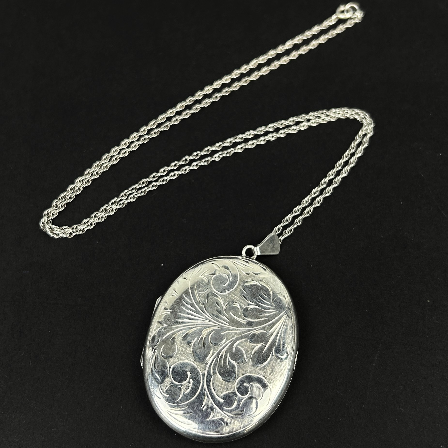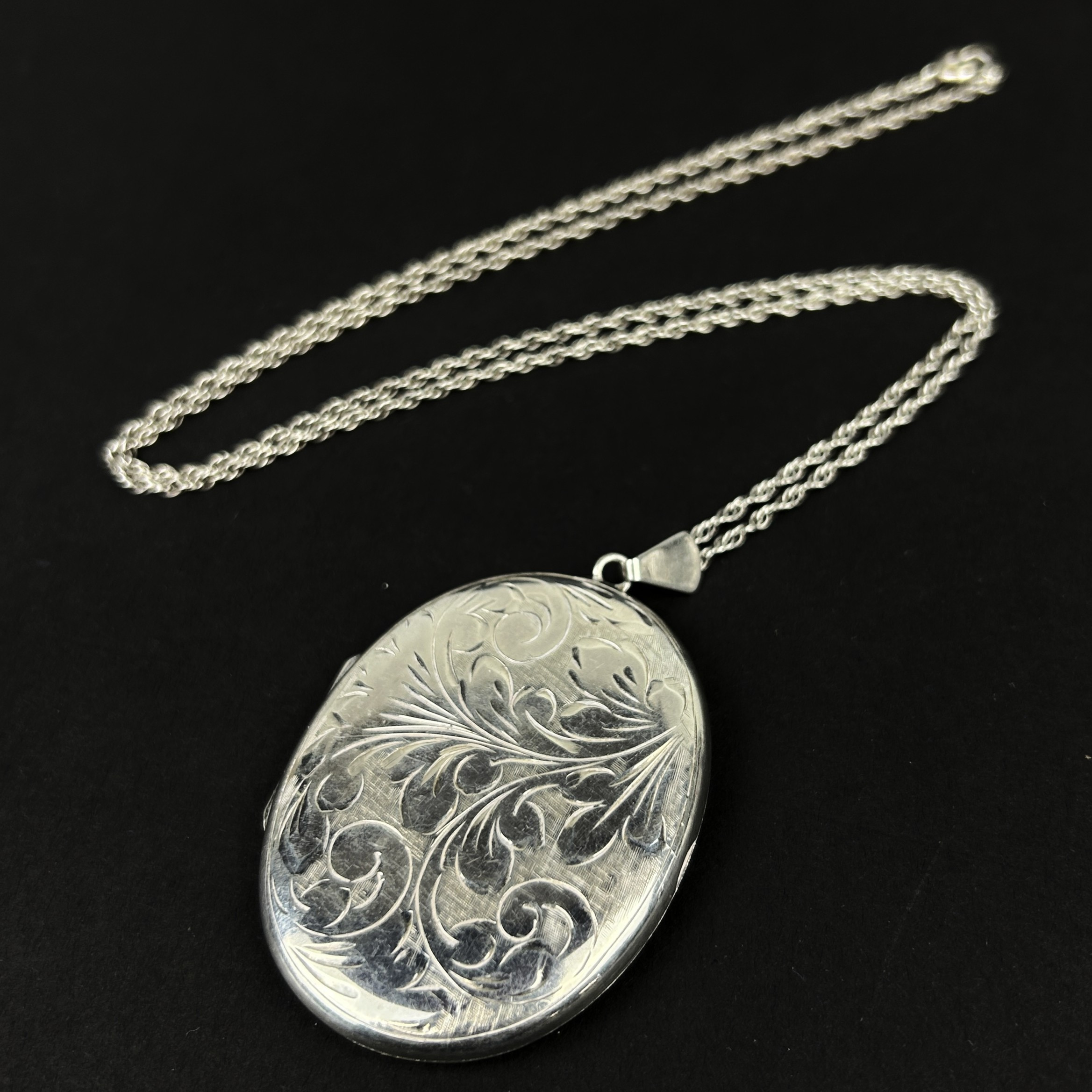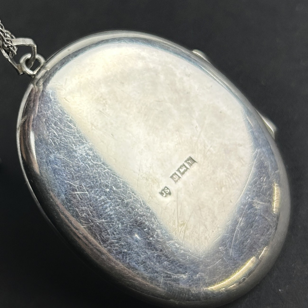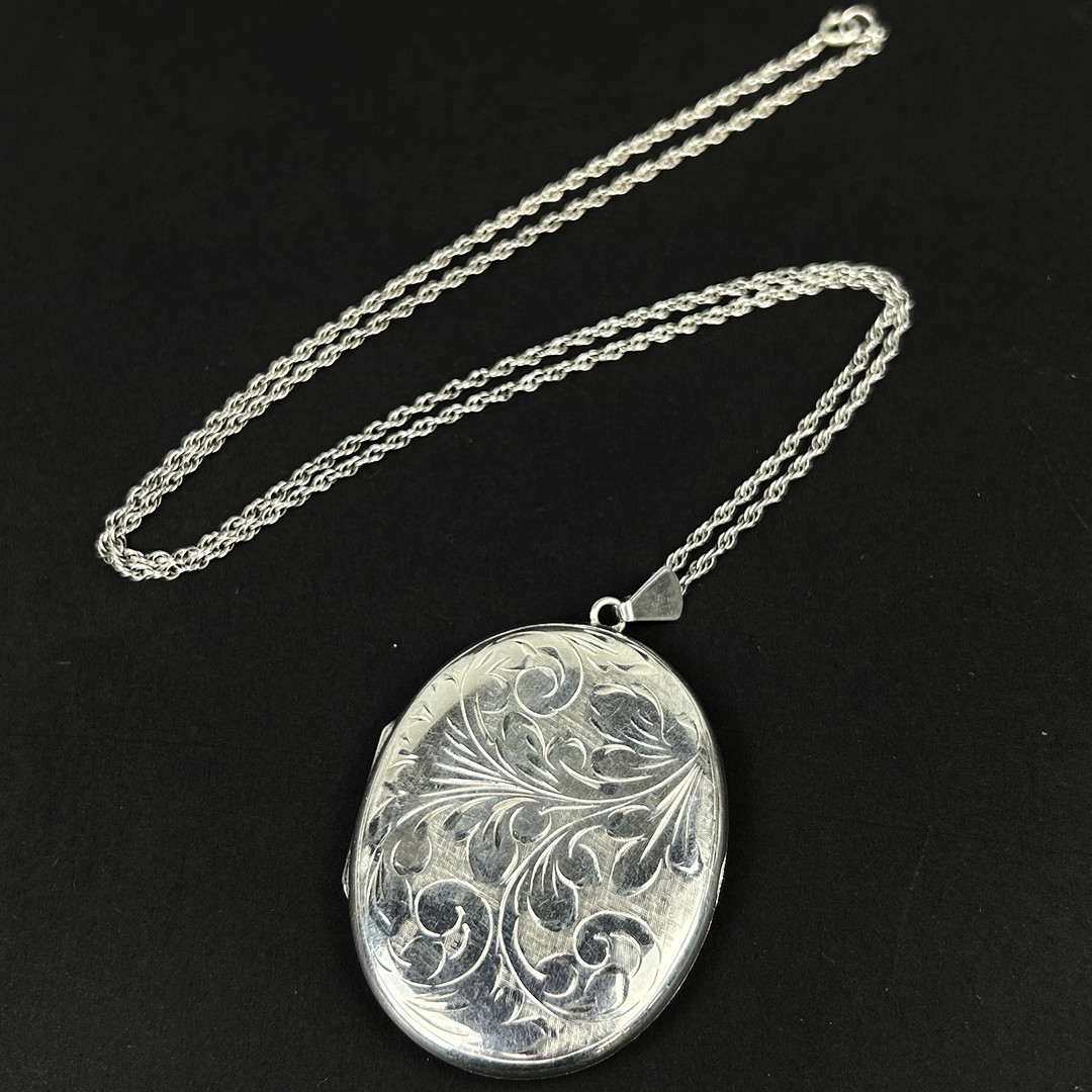 4903172. STORT STEMPLET SØLVMEDALJON VEDHÆNG OG KÆDE.