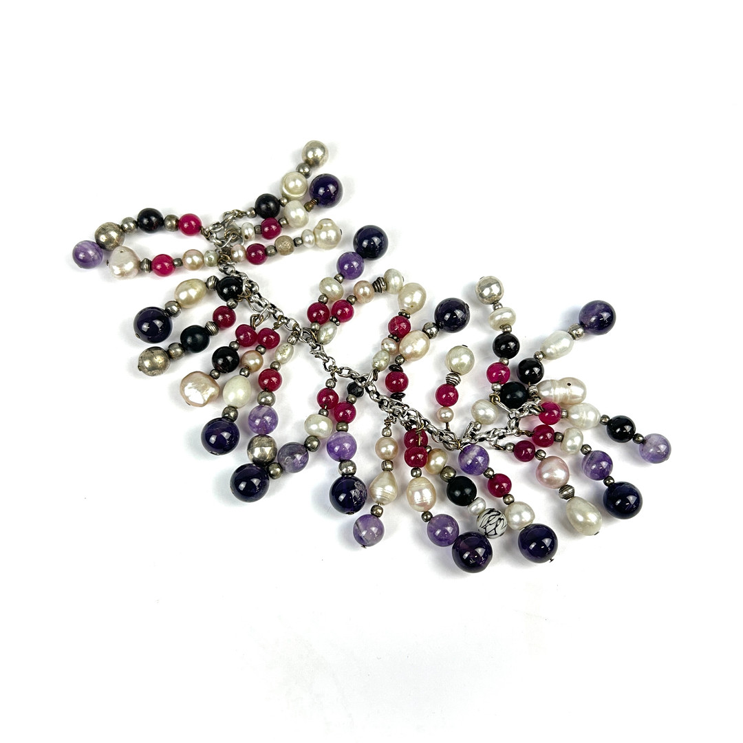 4905895. SØLV, PERLE OG STEN SÆT ARMBÅND.