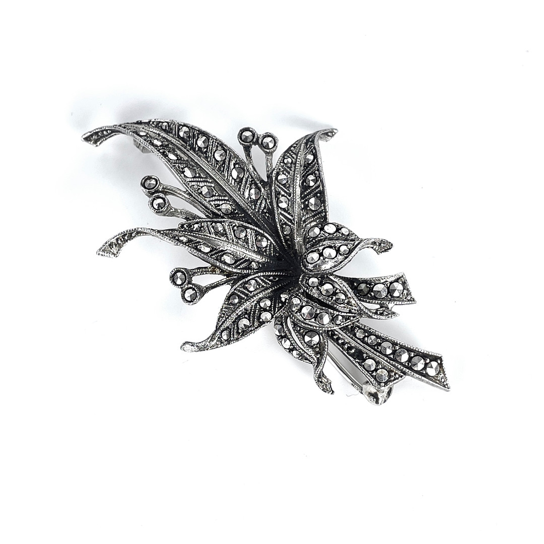 4906778. BROCHER, 2 stk. Sølv/metal, med markasitter.