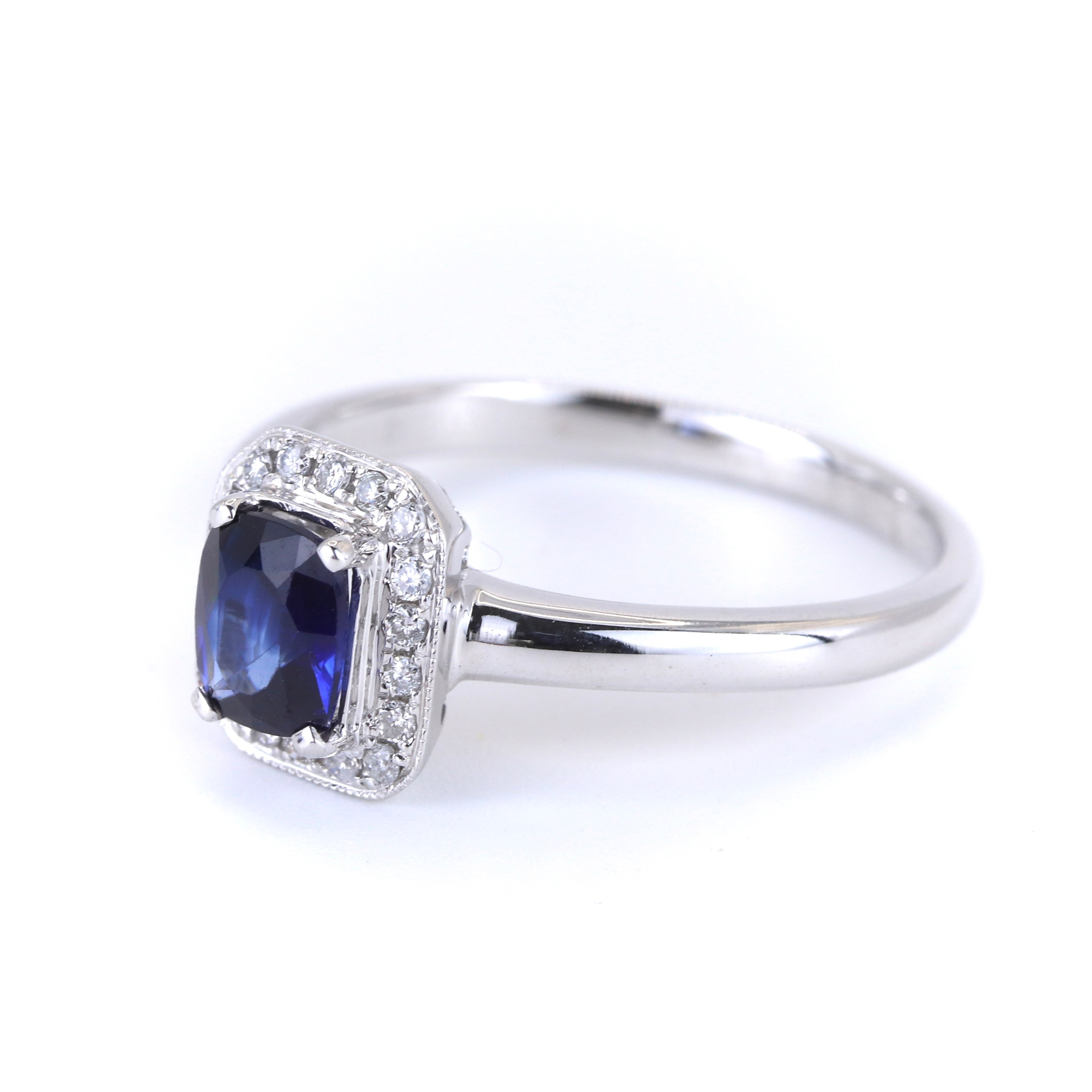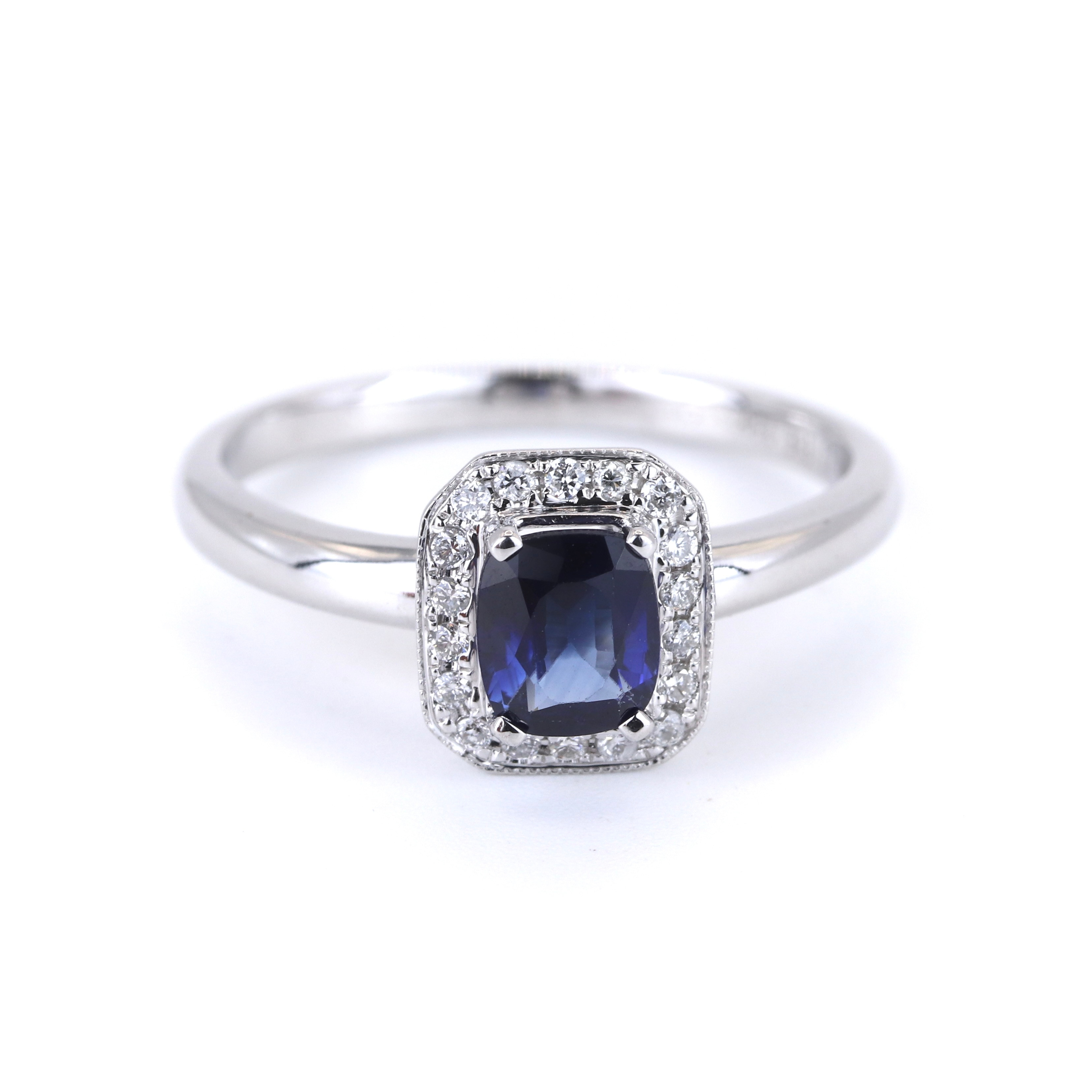 4906798. 18KT HVIDGULD SAFIR & DIAMANT SÆT RING.