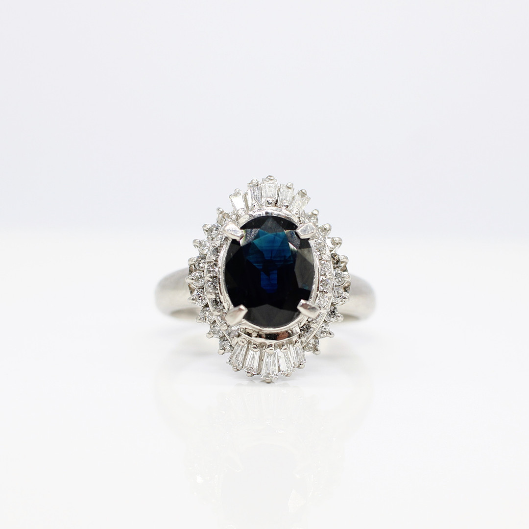 4909023. SAFIR & DIAMANT RING I PLATIN.