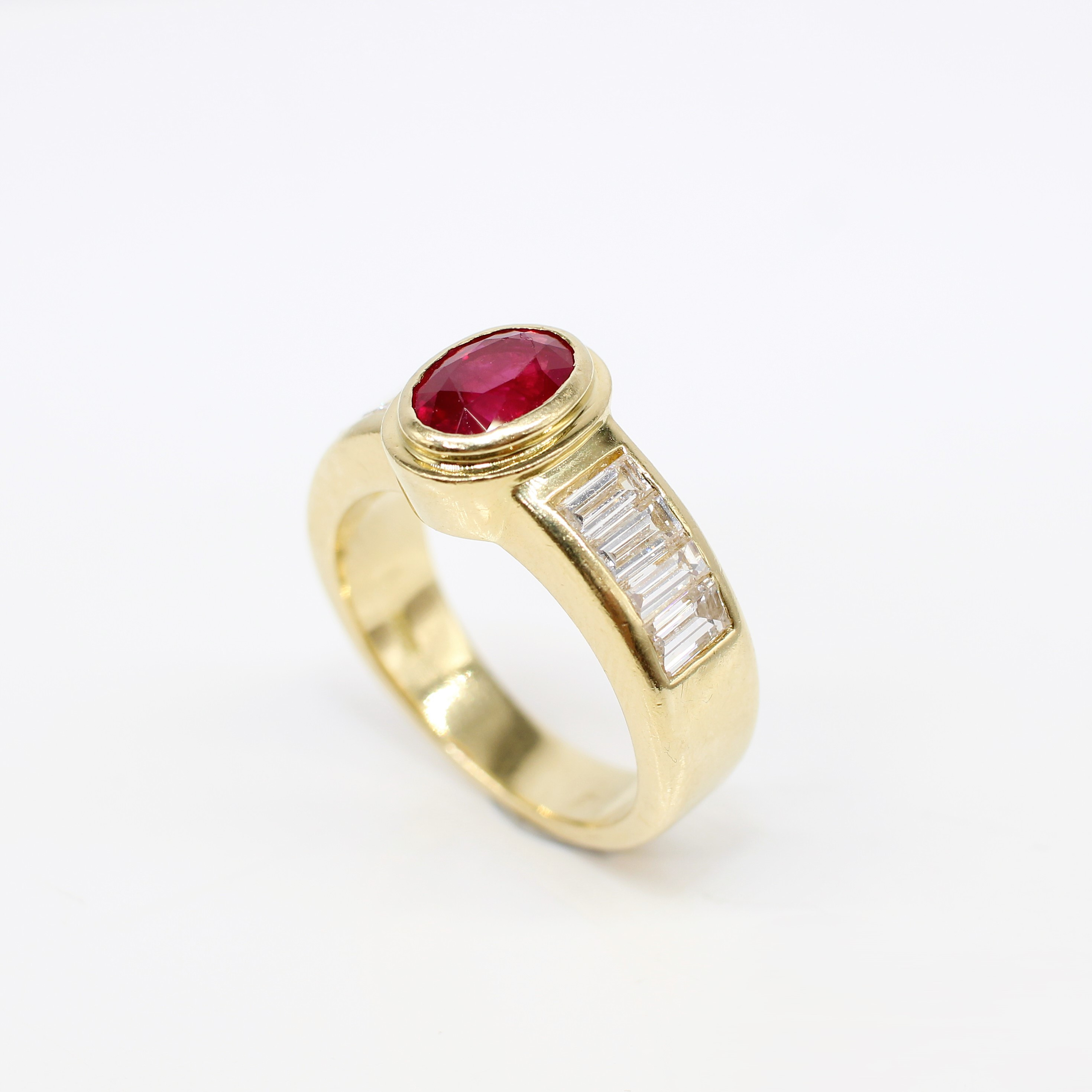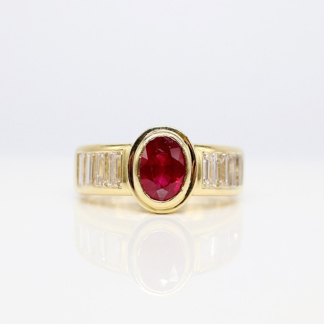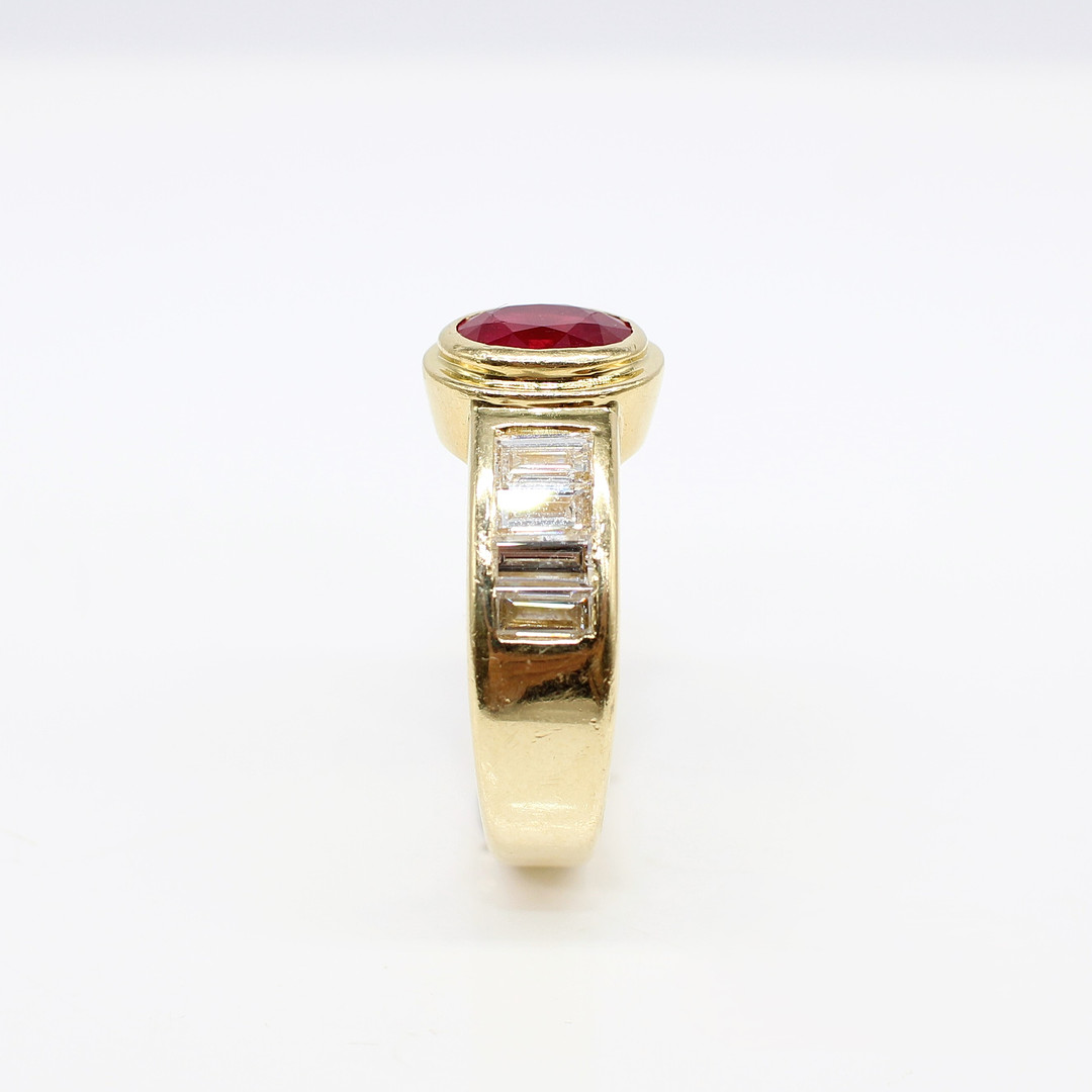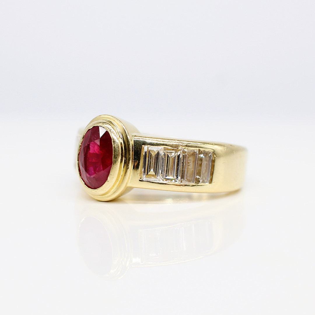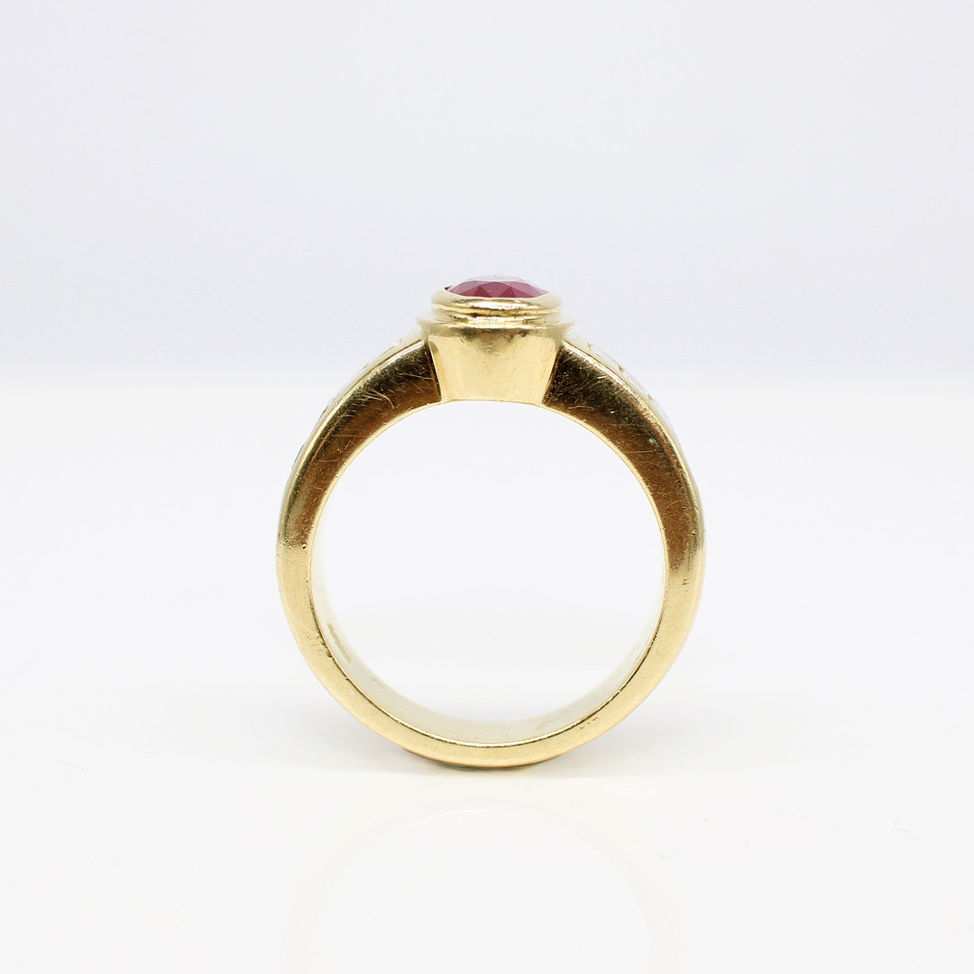 4909115. 18K TUNG (12,15 G) RUBIN & DIAMANT RING.