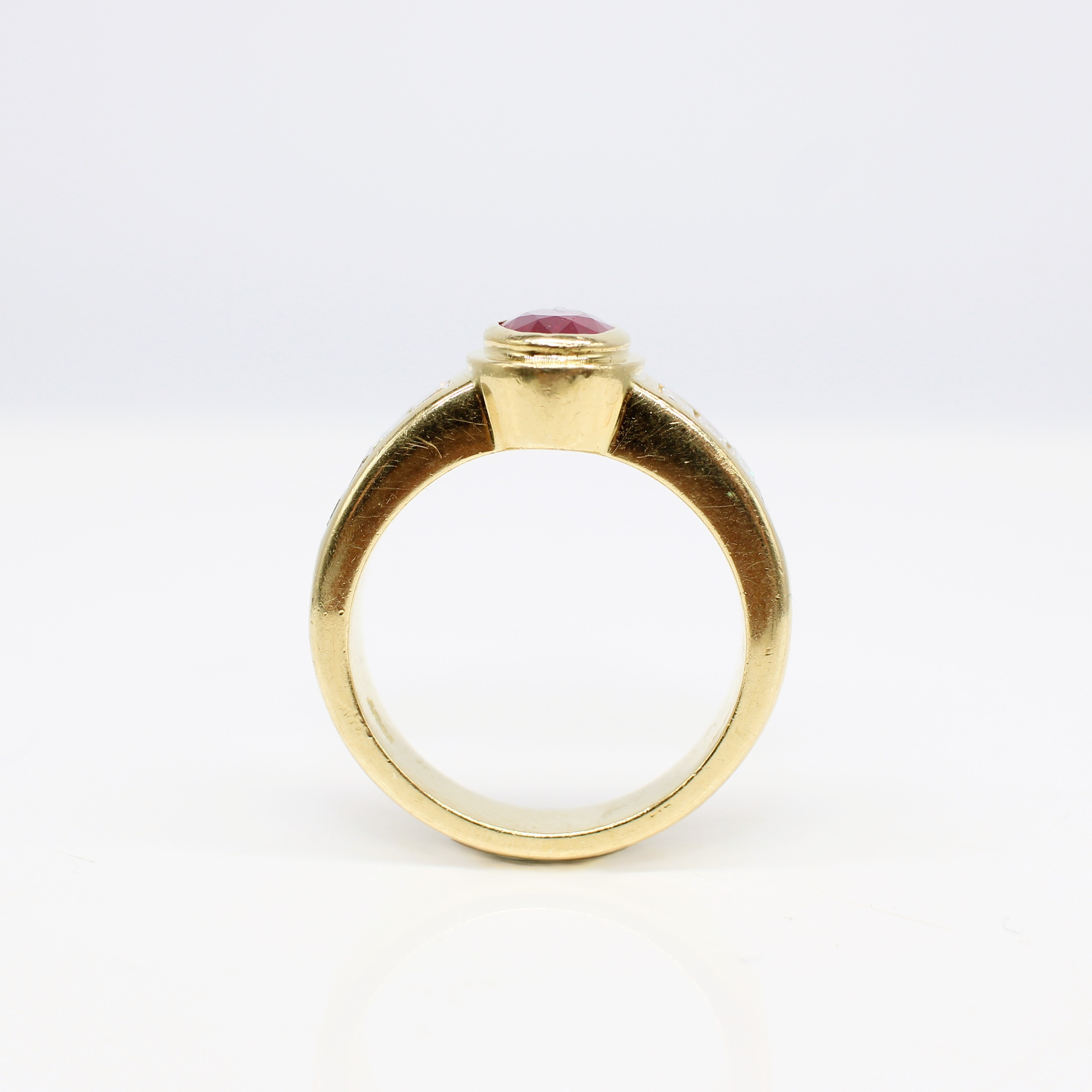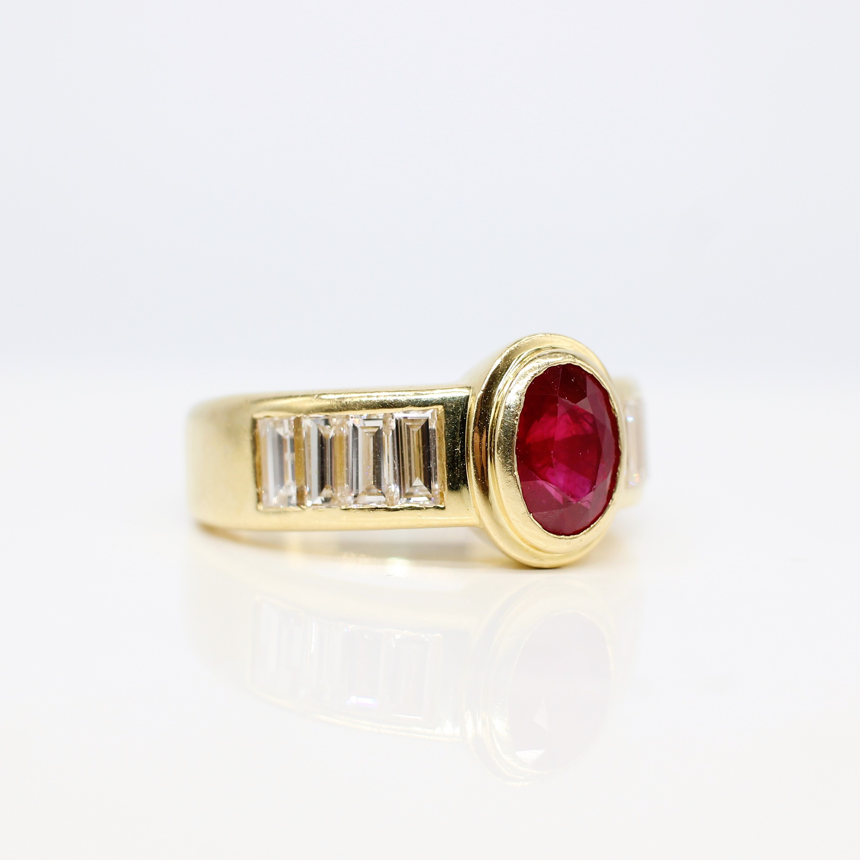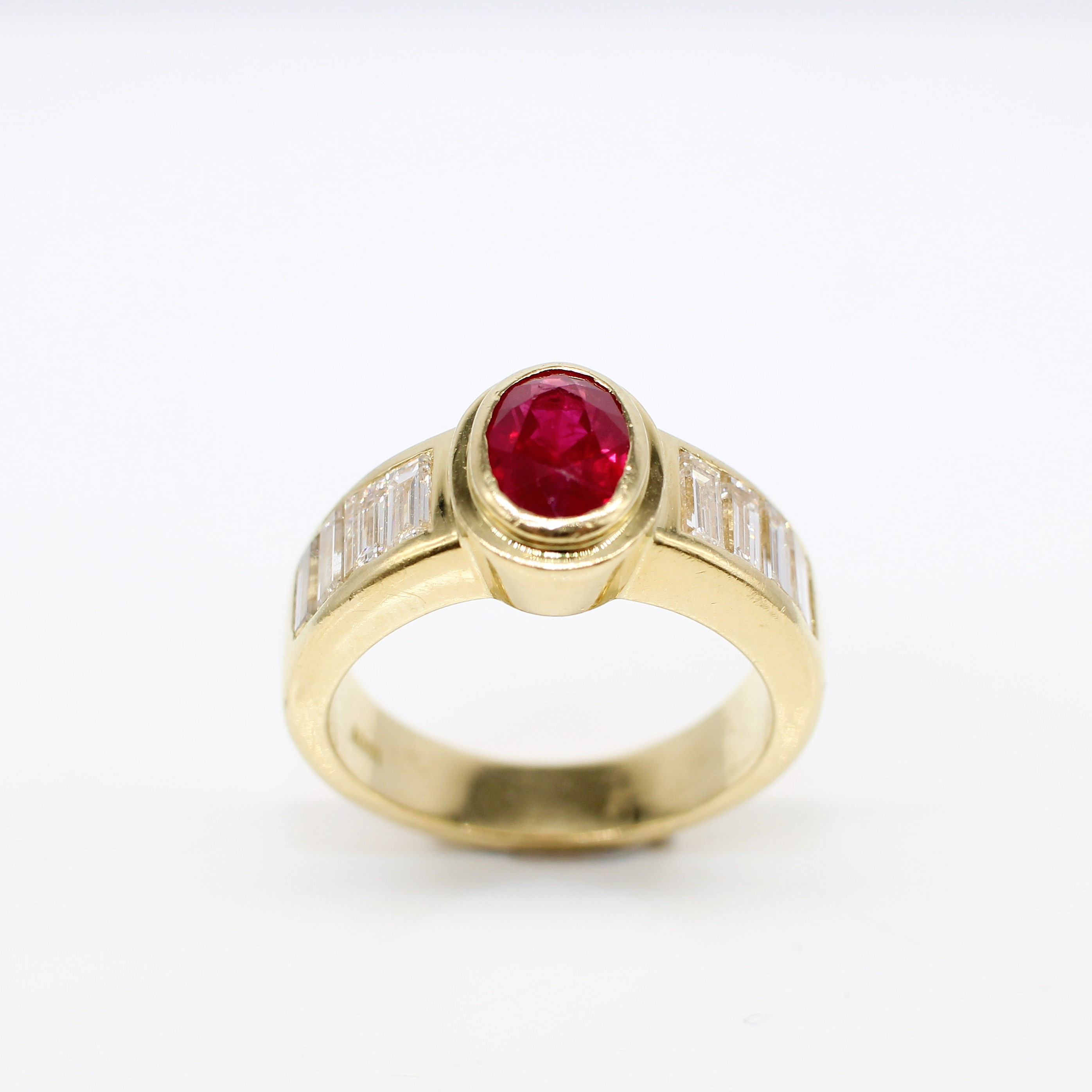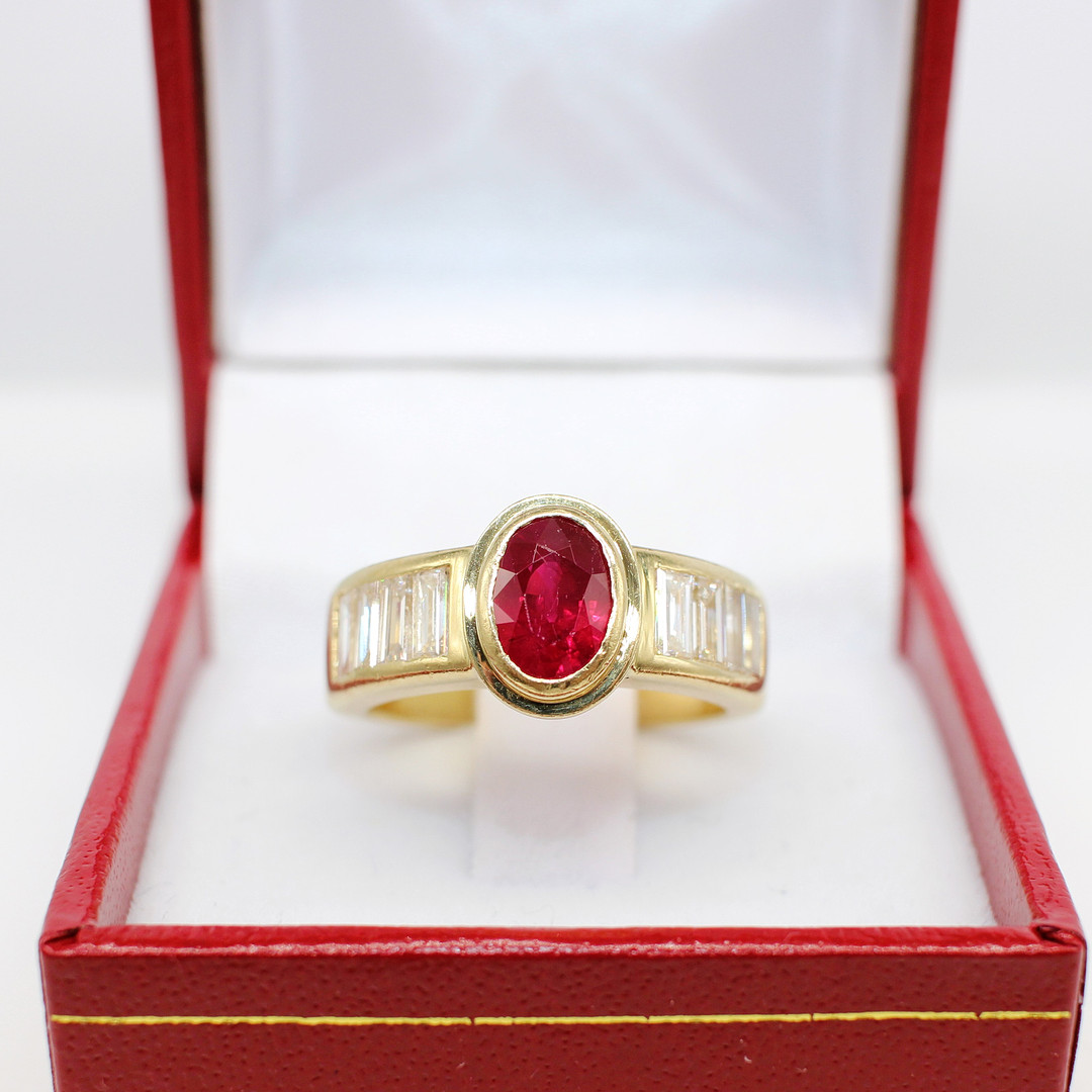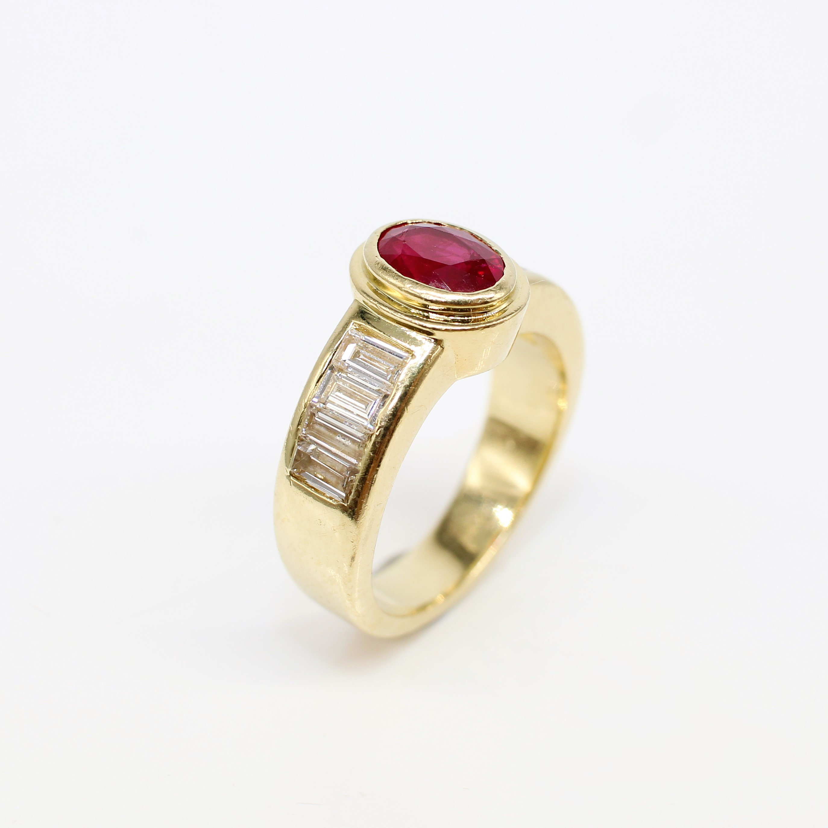 4909115. 18K TUNG (12,15 G) RUBIN & DIAMANT RING.