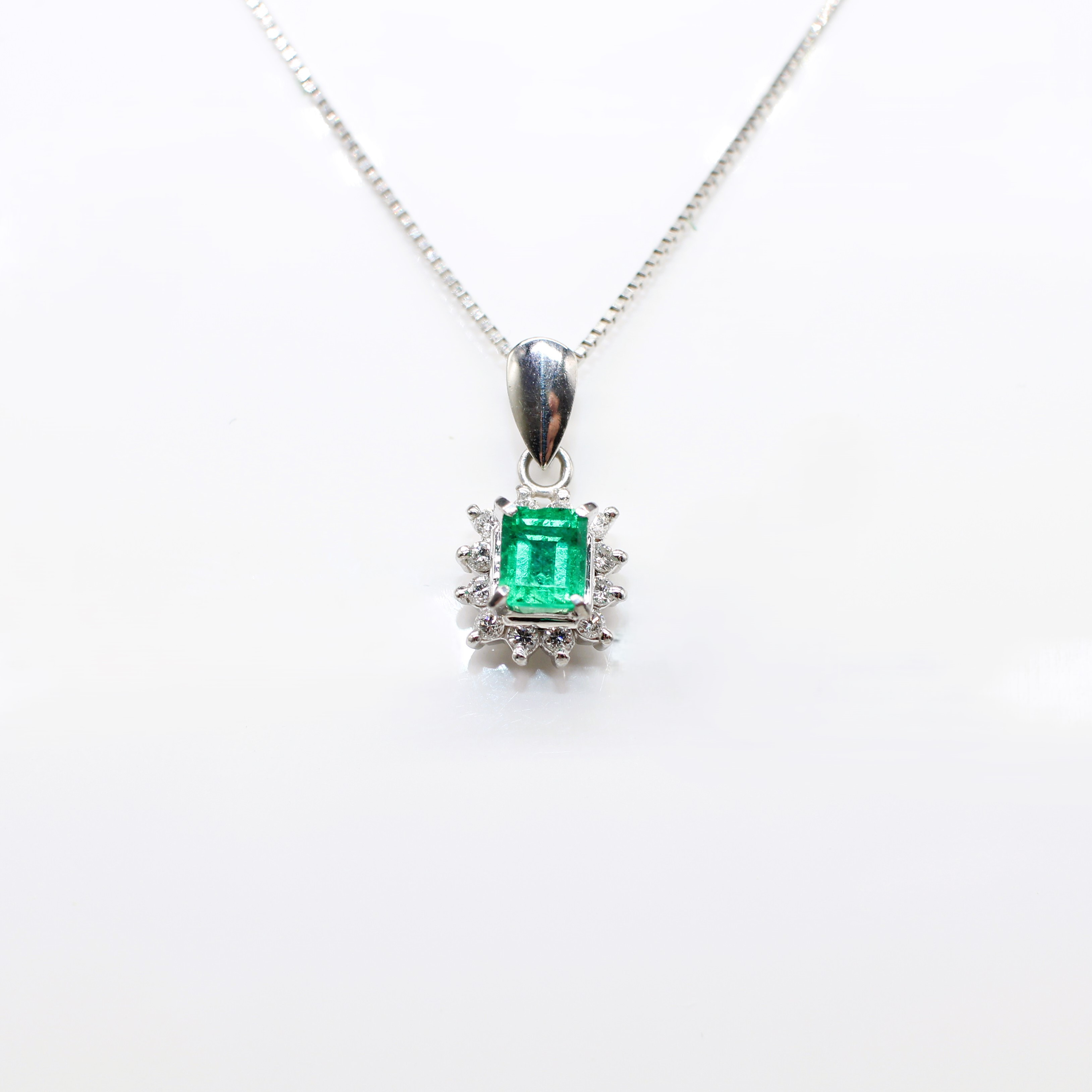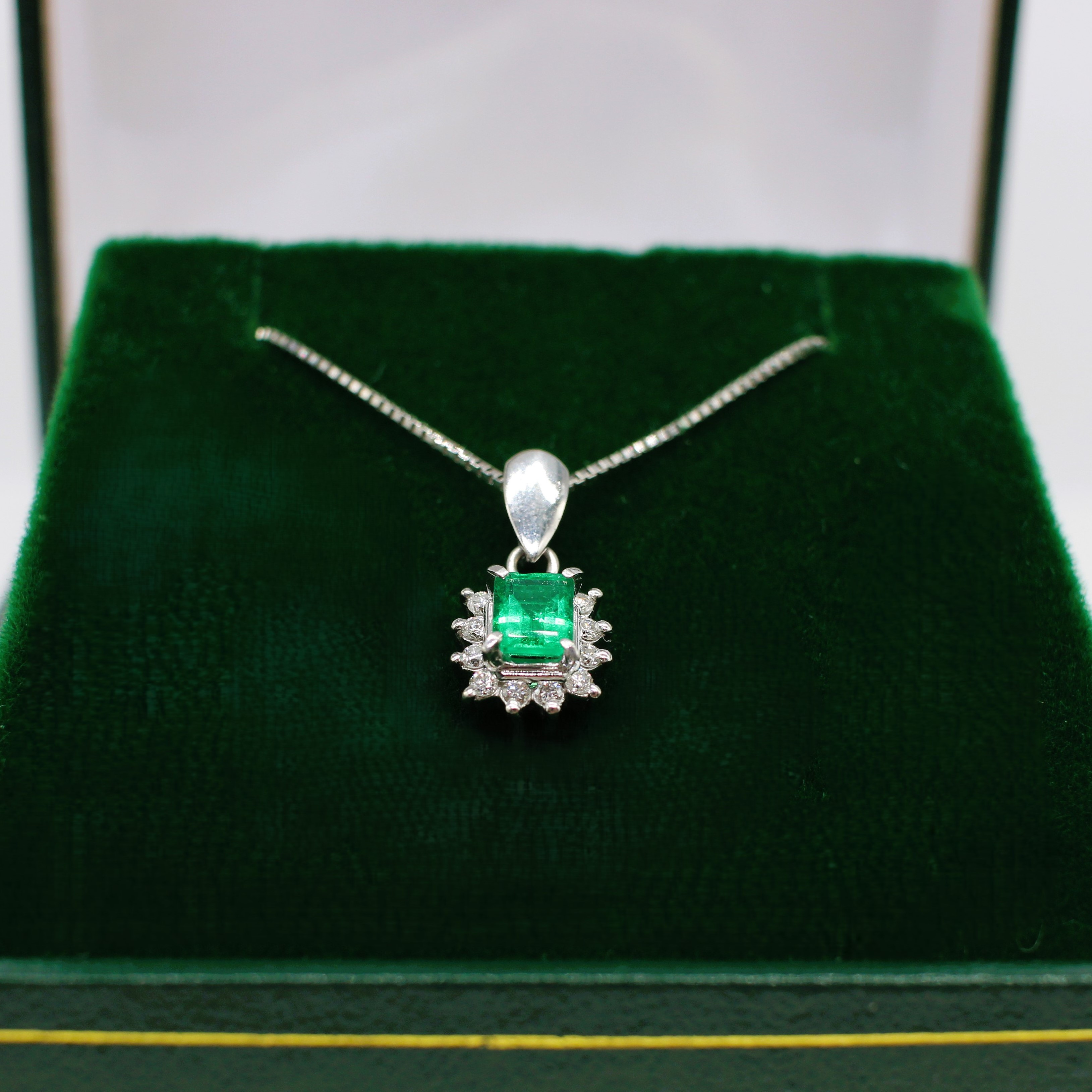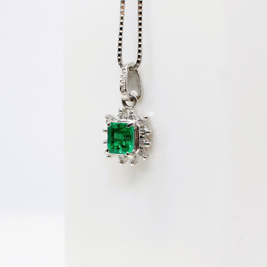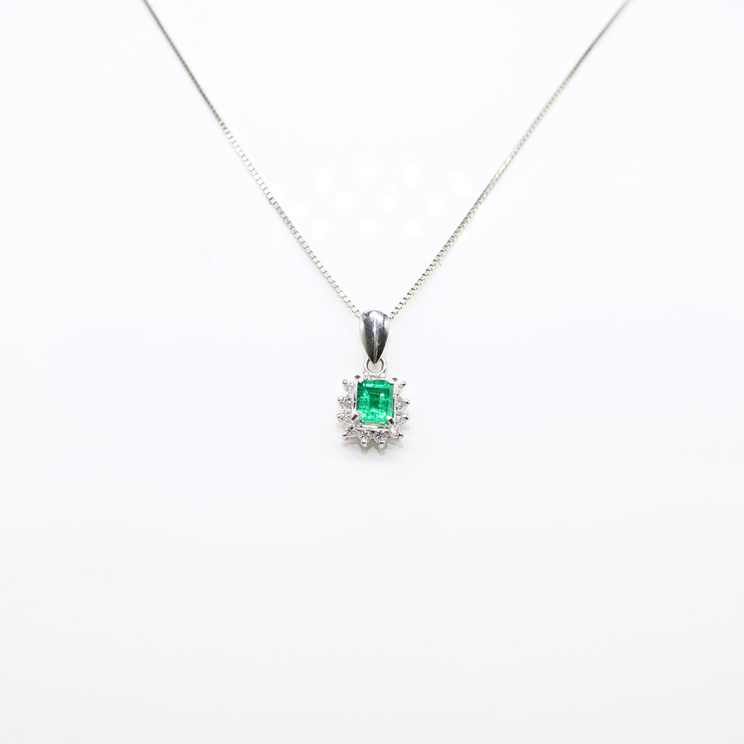 4909403. SMARAGD & DIAMANT VEDHÆNG I PLATIN.