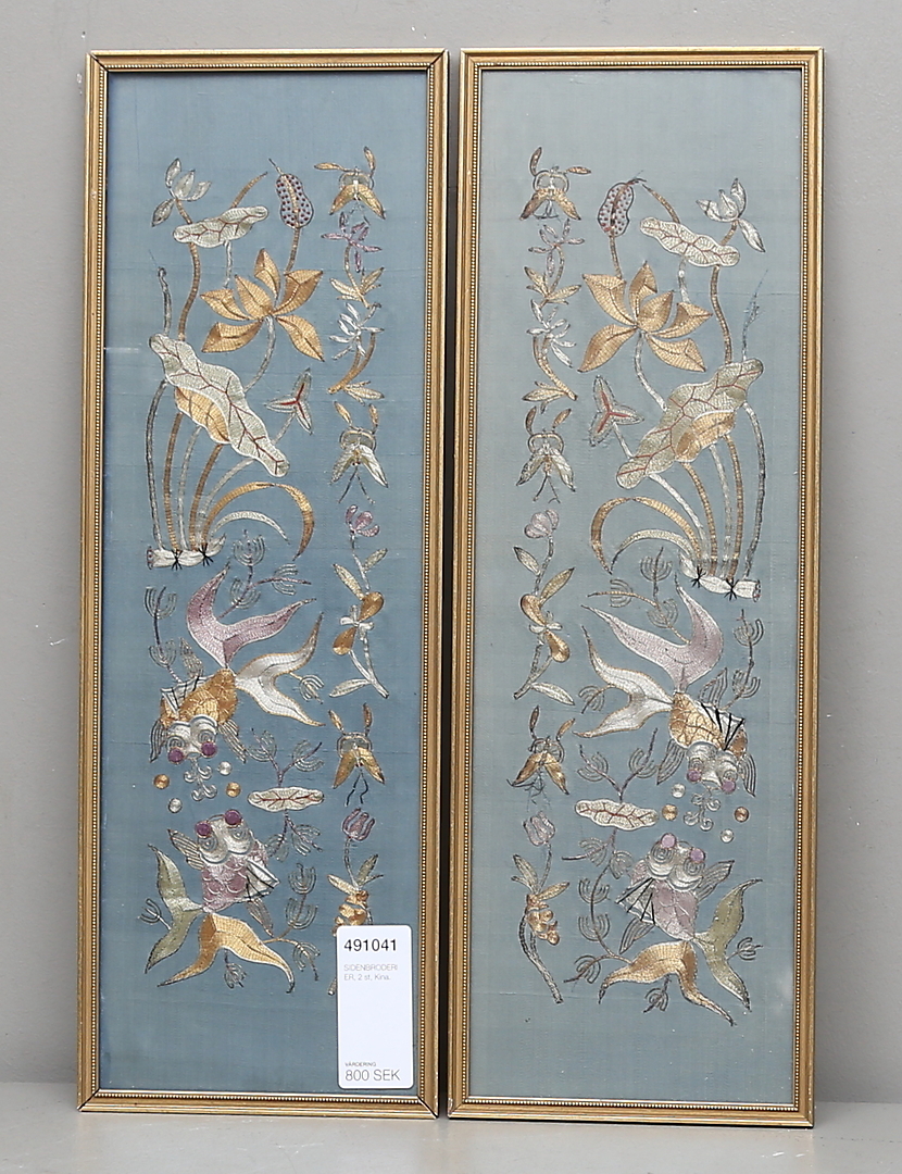491041. SILKEBRODERIER, 2 stk, Kina.