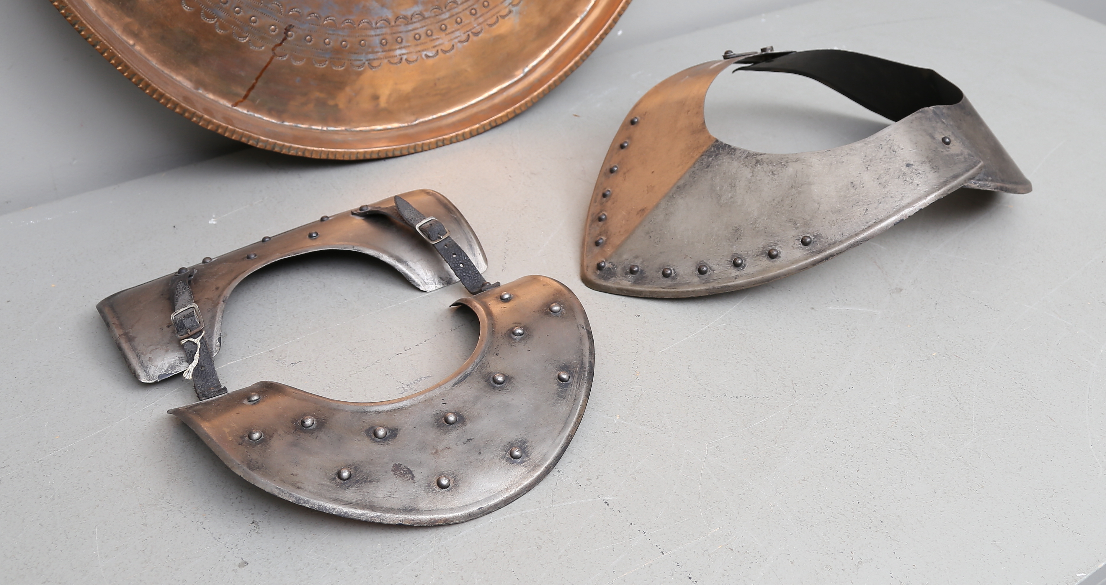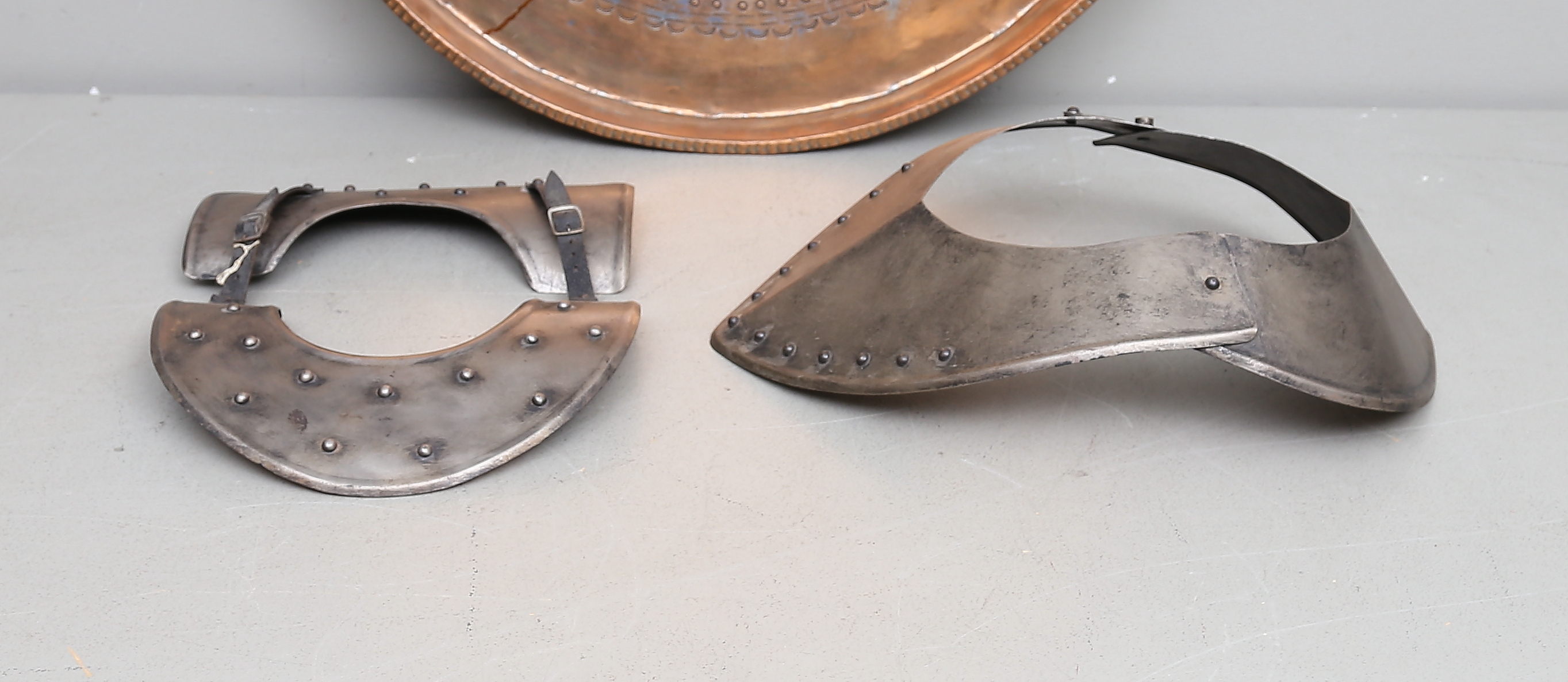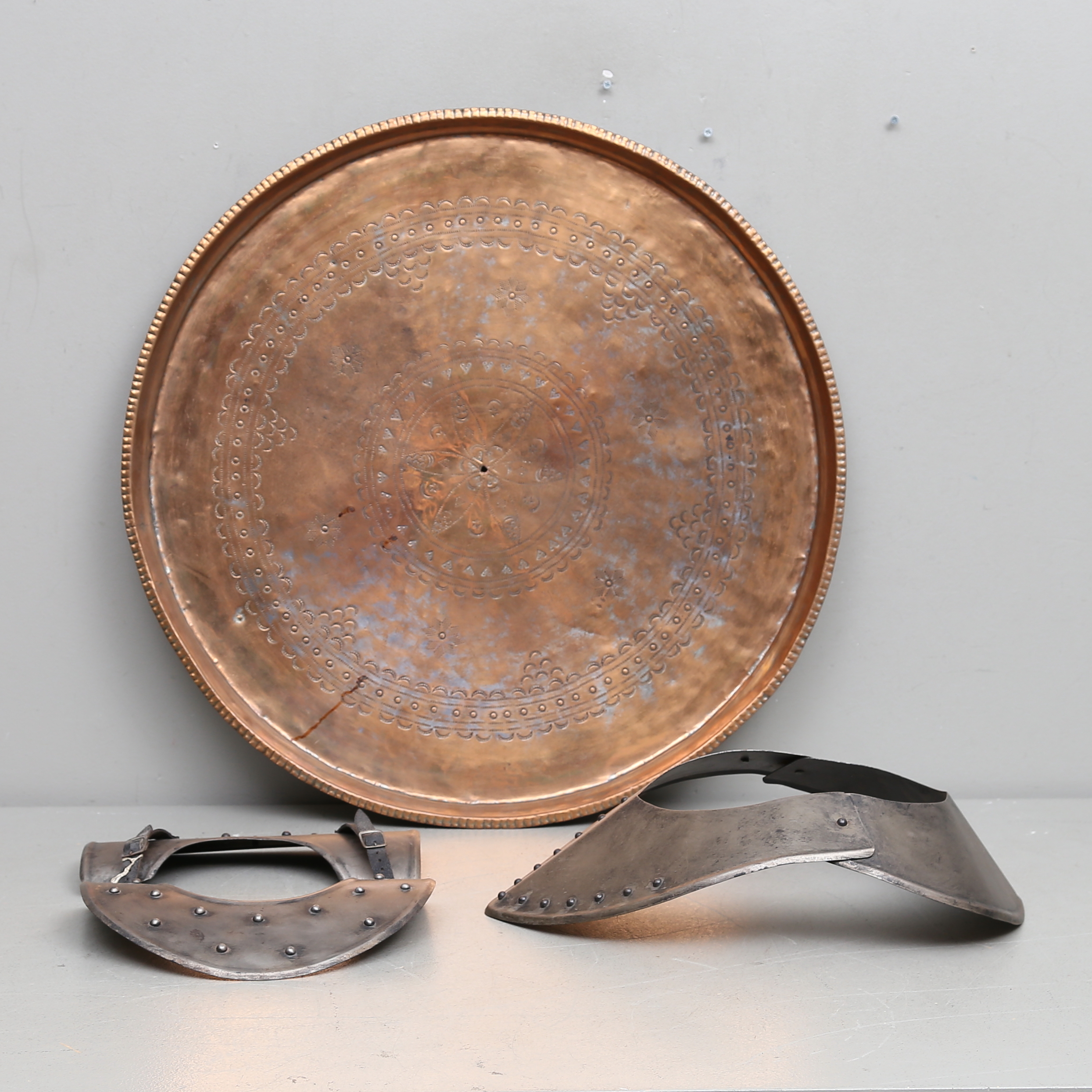 491122. PANSERDELE, 2 stk. og KARREL, kobber.