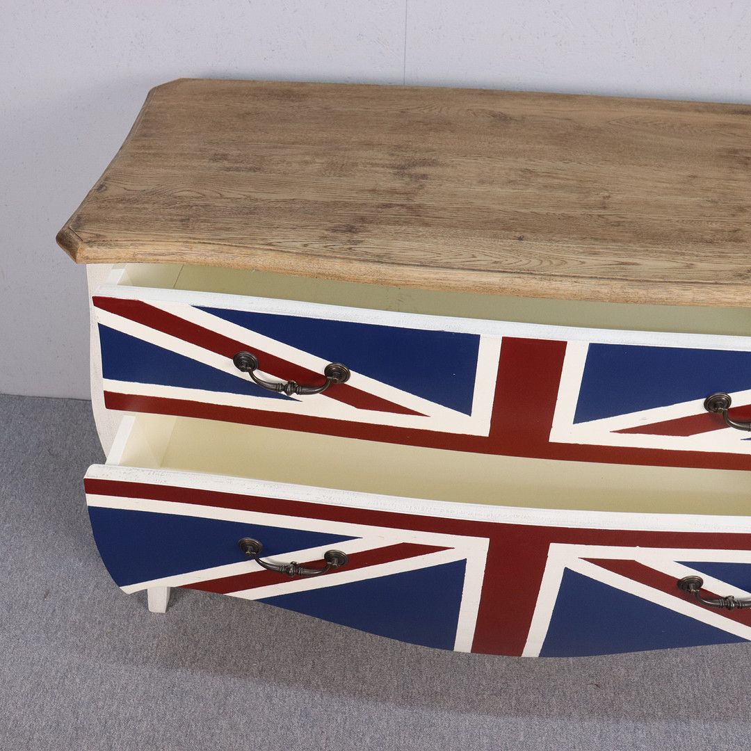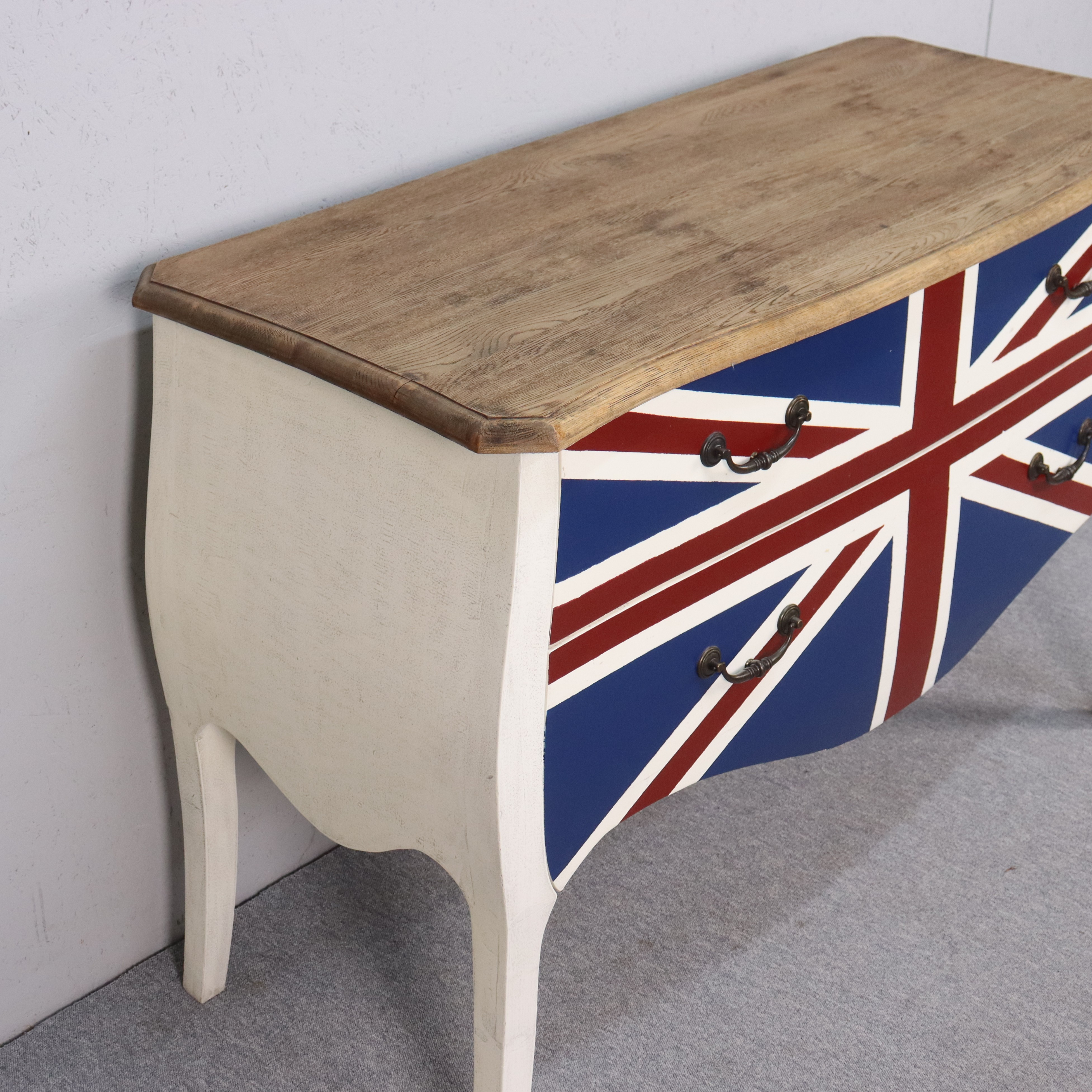 4911942. Kommode SKUFFER, træ med indretning af Union Jack.