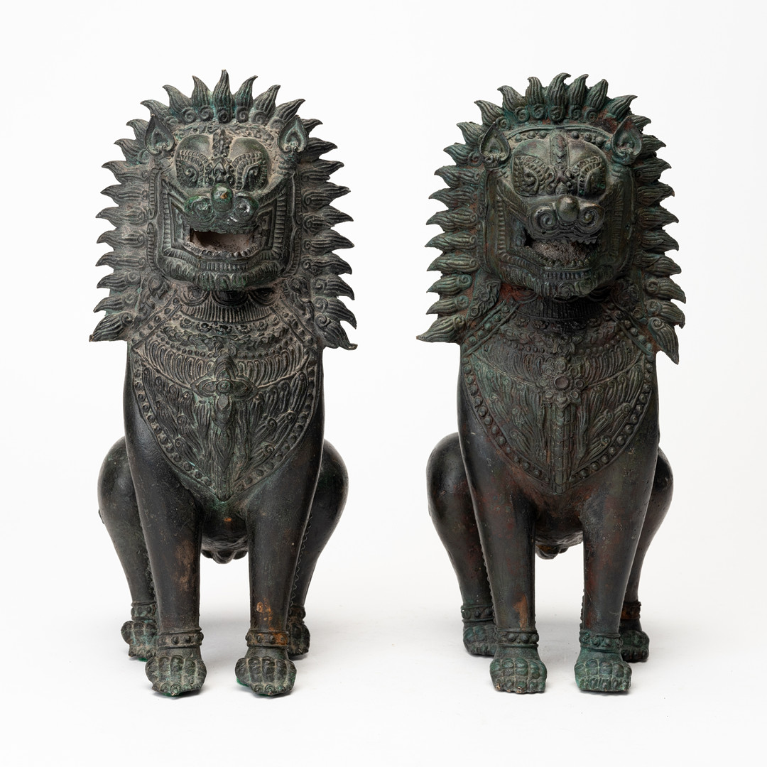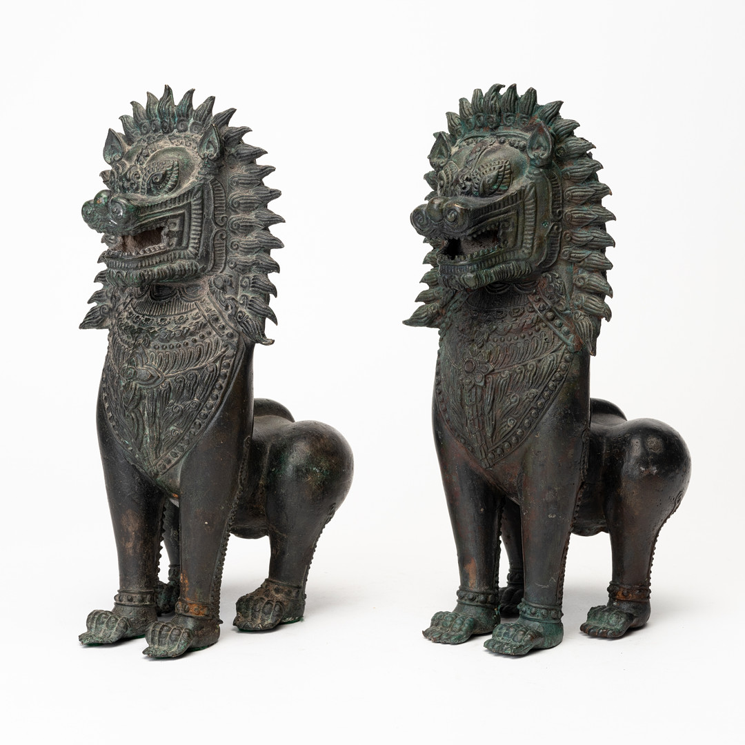4912121. Et par tempelløver i Sydøstasien i bronze.
