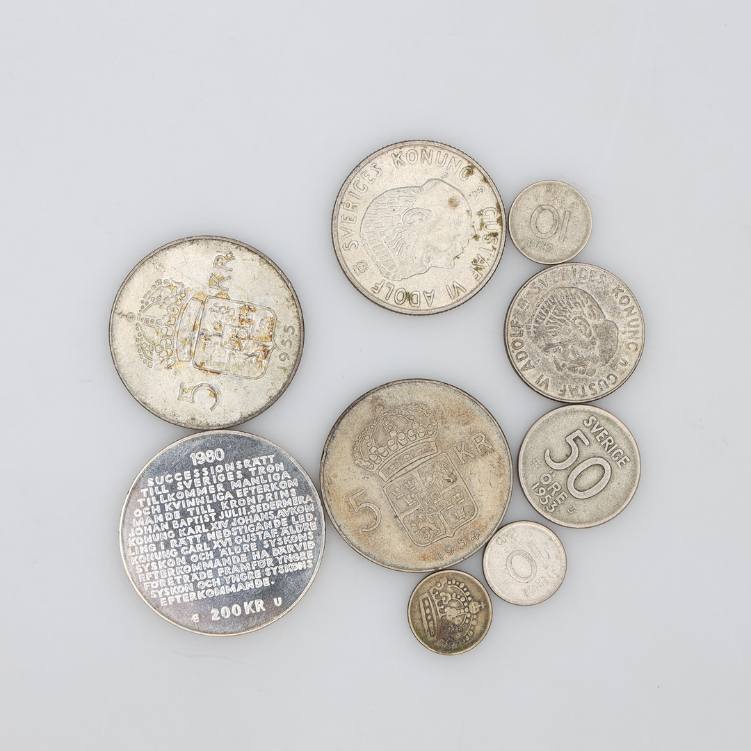 4912651. MØNTER, 9 stk., sølv, fin vægt ca. 51 gram.