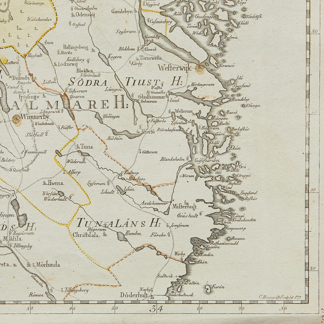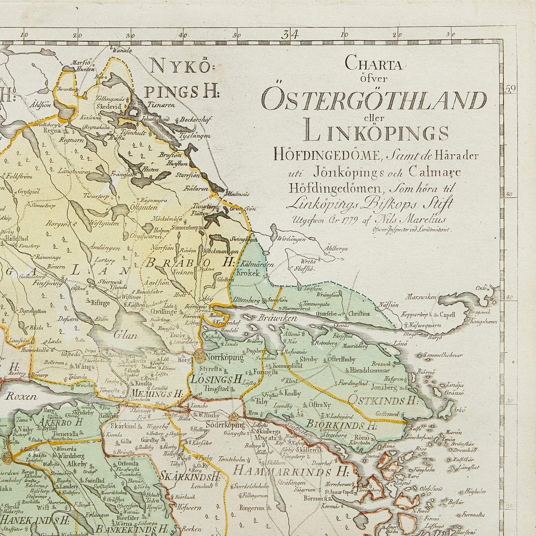 4913469. KORT OVER ÖSTERGÖTLAND, MARELIUS, 1779.