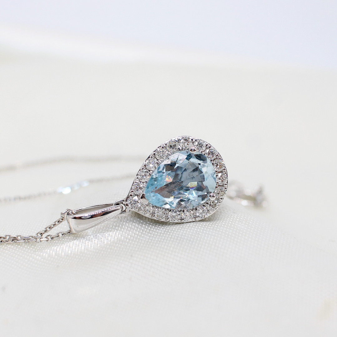 4914135. AKVAMARIN & DIAMANT HALSKÆDE.