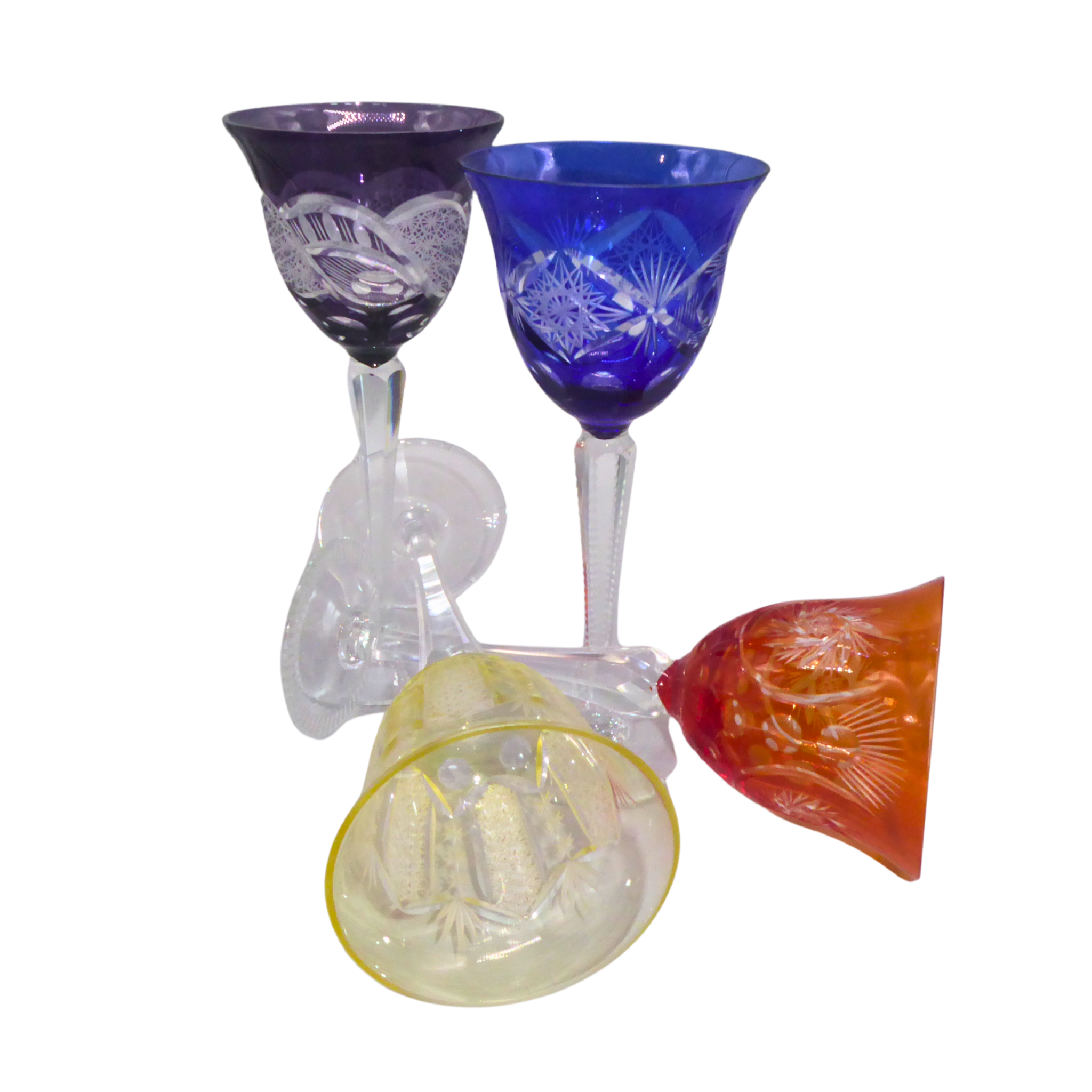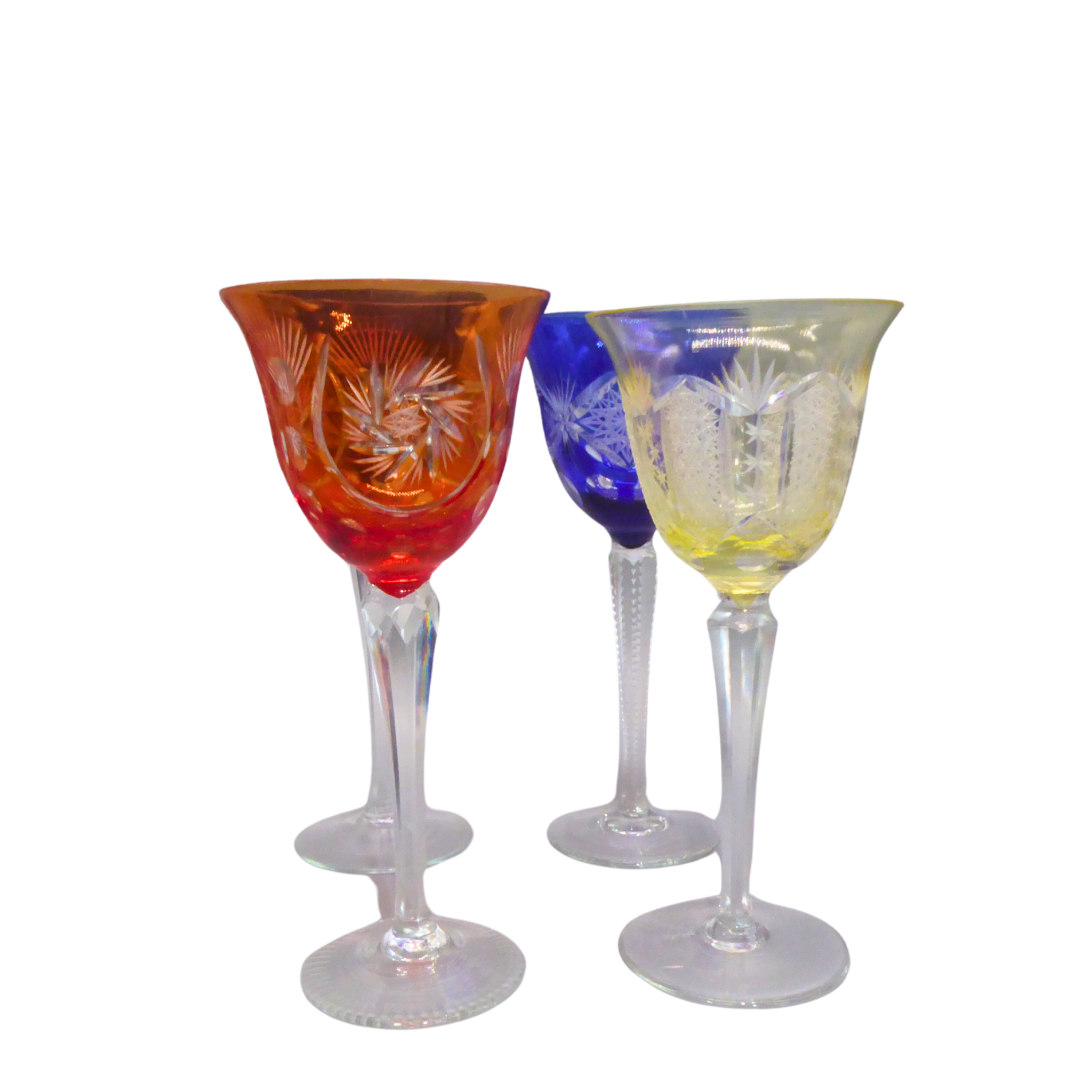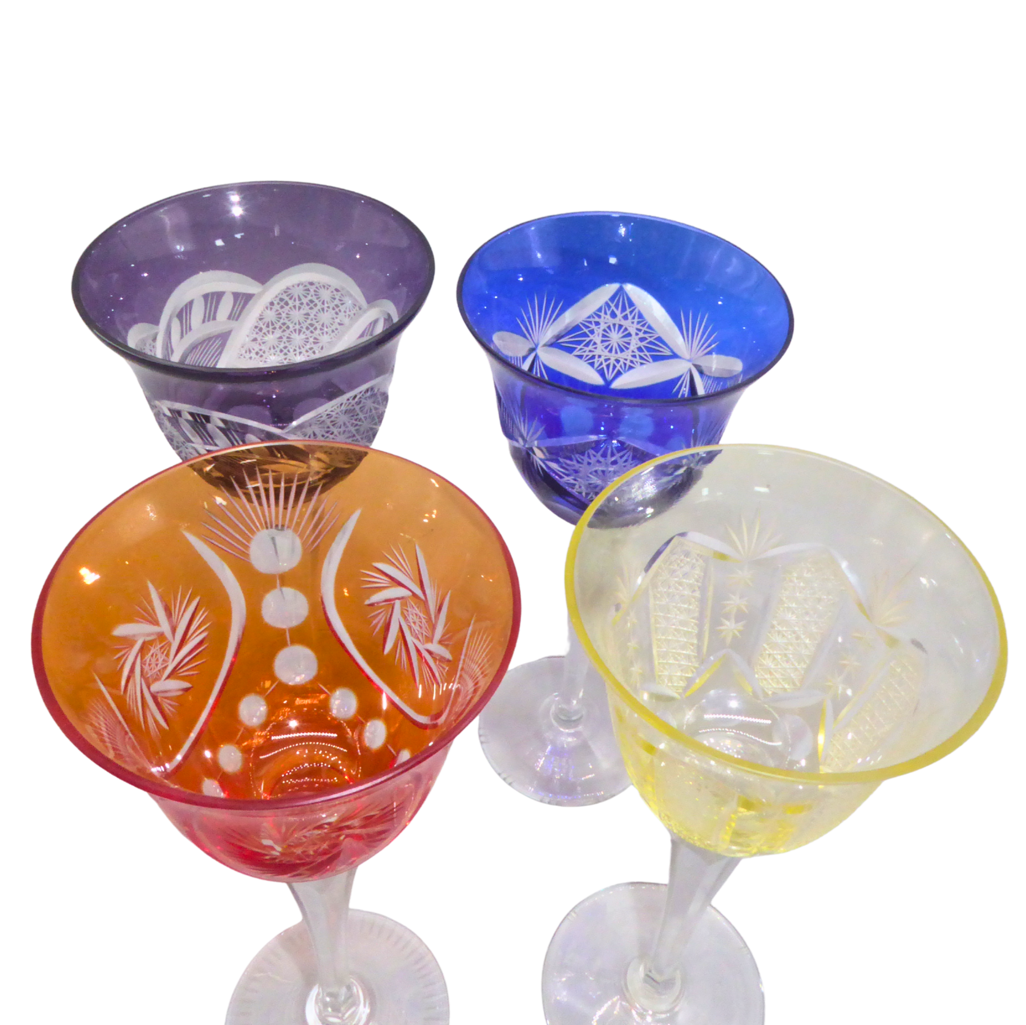 4915438. 4 FARVERIGE KRYSTALGLAS MED SNIT.