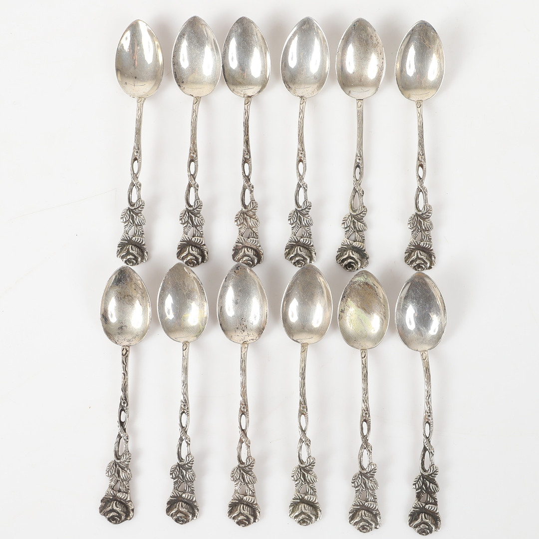 4915706. KAFFESKEER, 12 stk., „Rosen“, sølv.