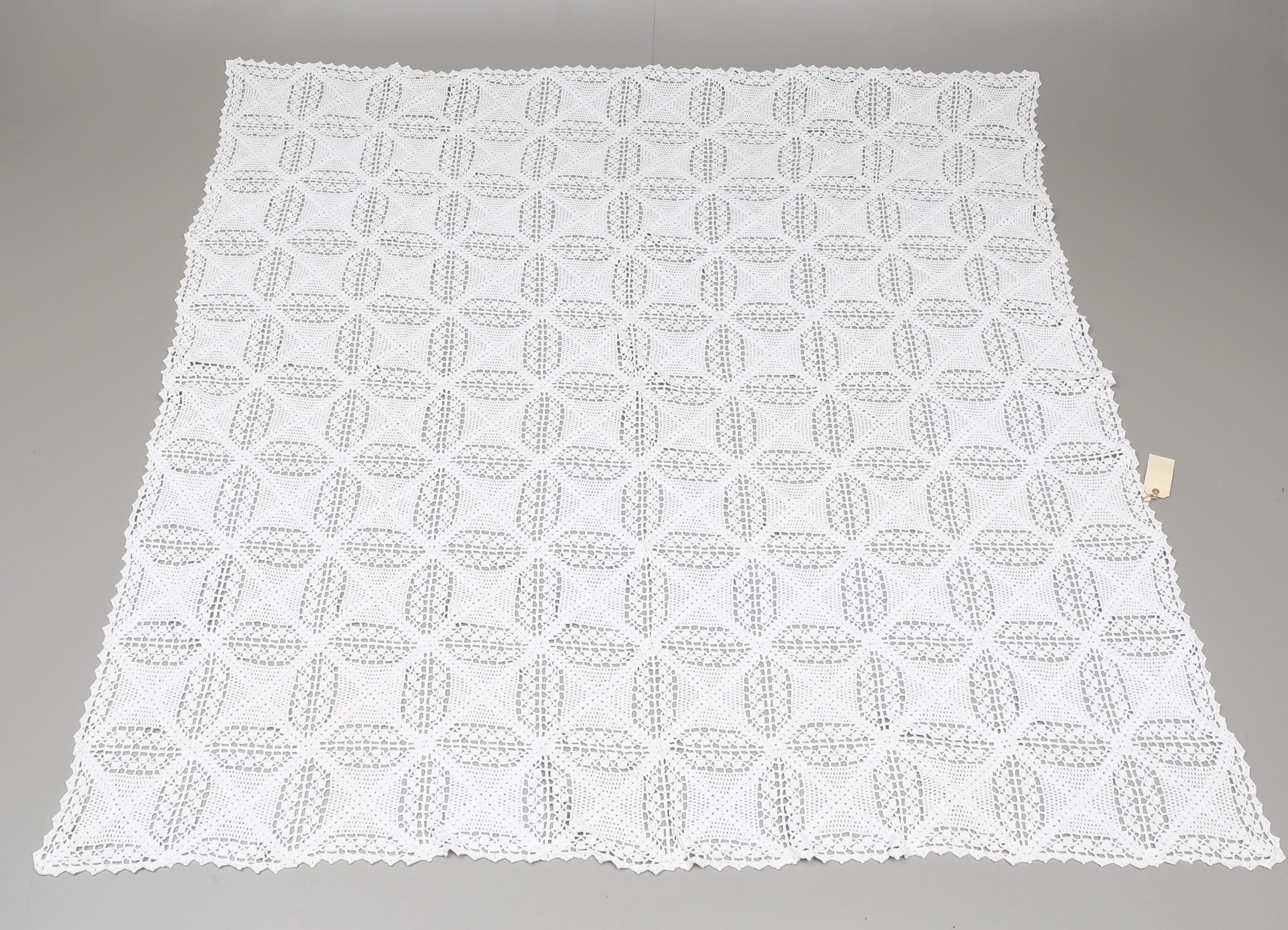 491816. BEtræk til dobbeltseng, hæklet.