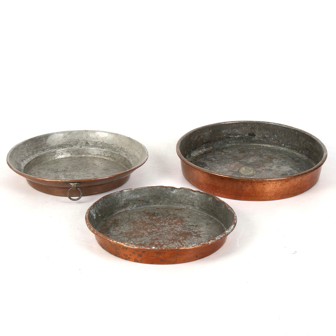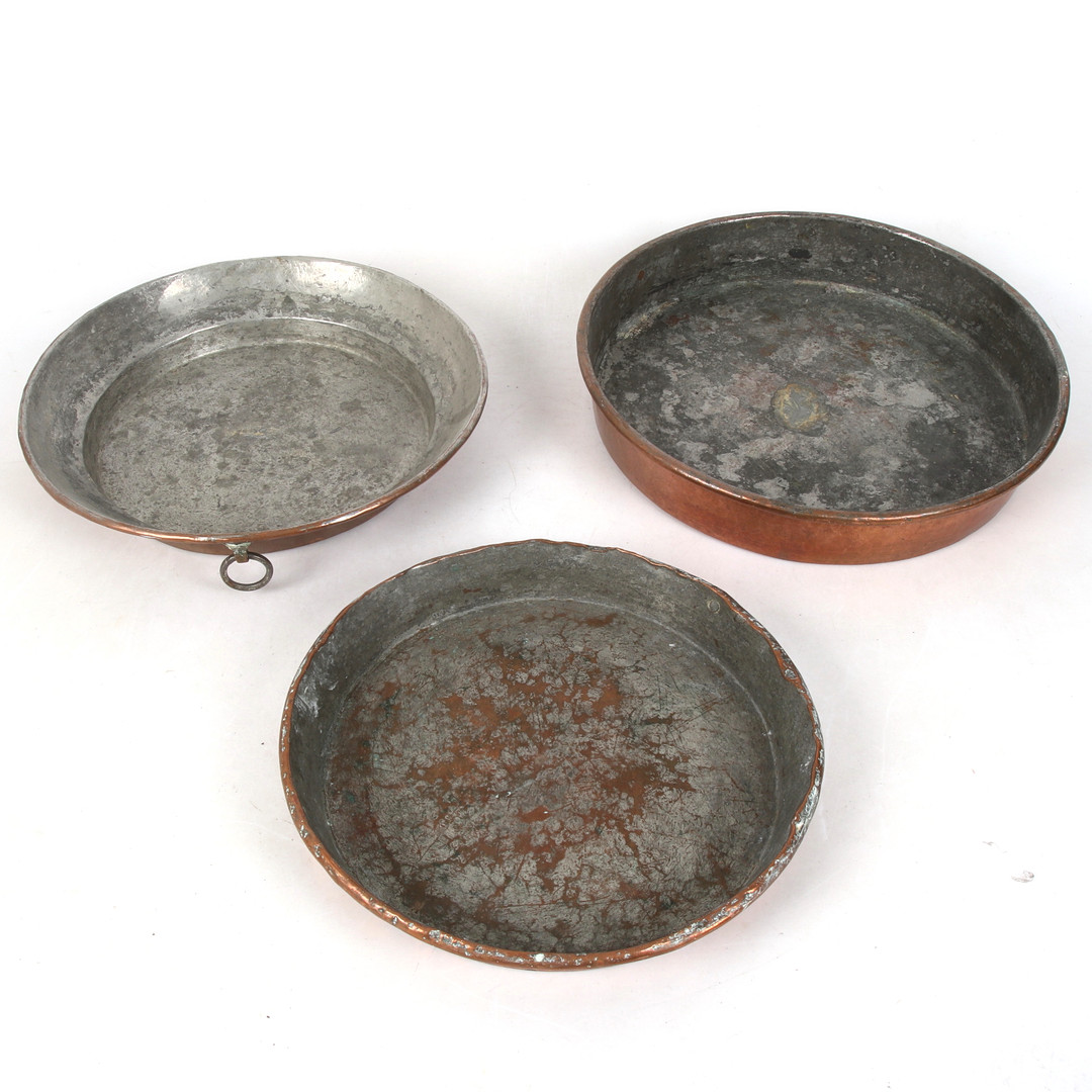 4920307. TALLERKEN/FORME, 3 stk, kopper. 18./20. århundrede.