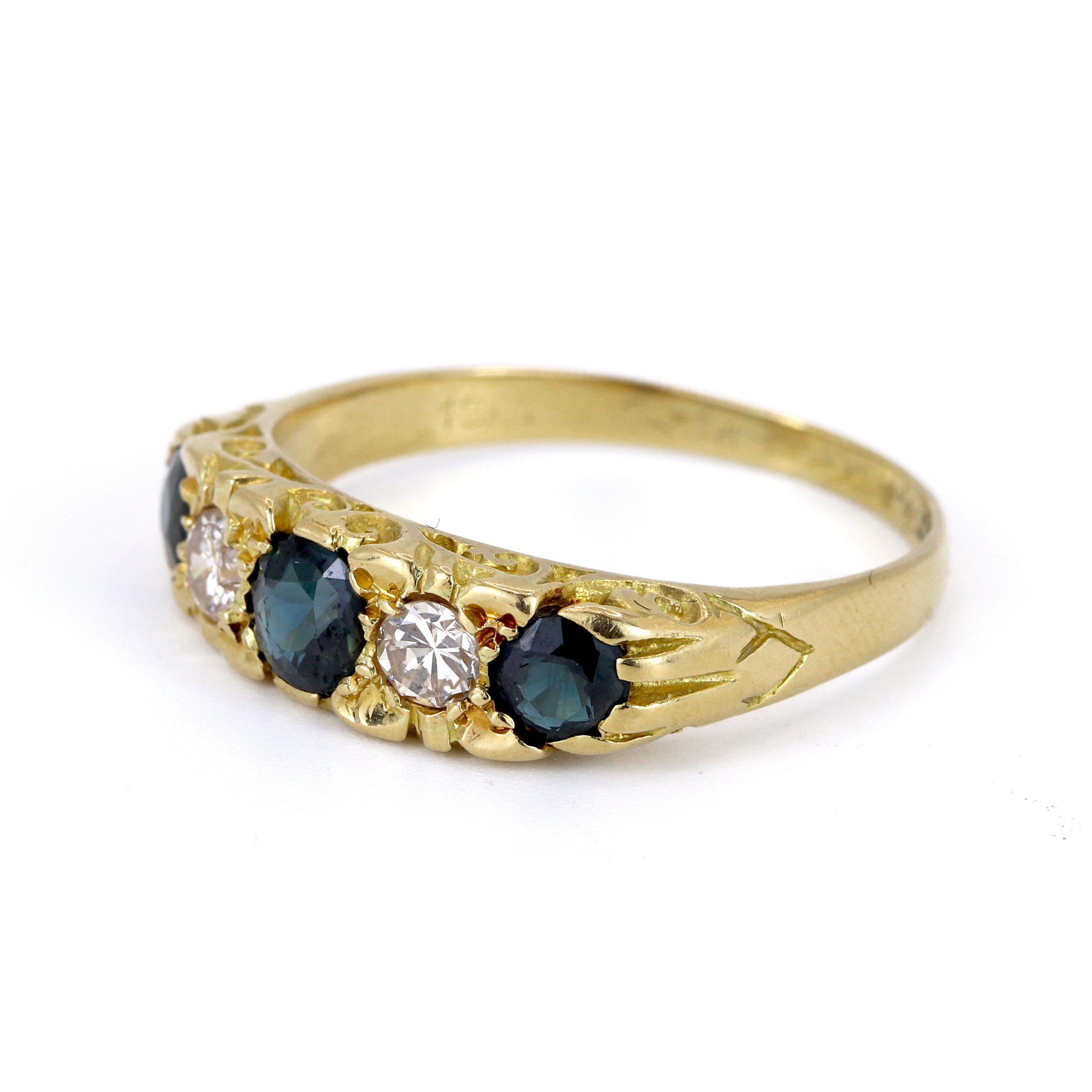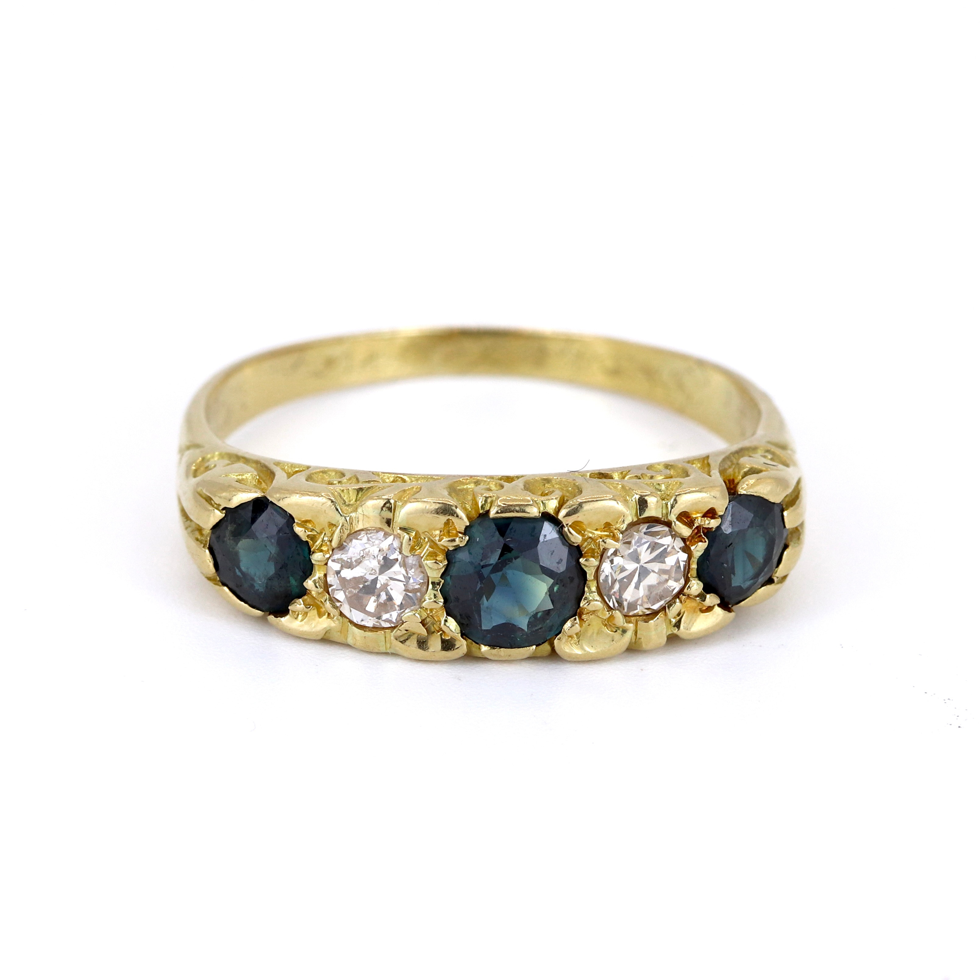 4923348. 18KT GULD SAFIR OG DIAMANT SÆT RING.