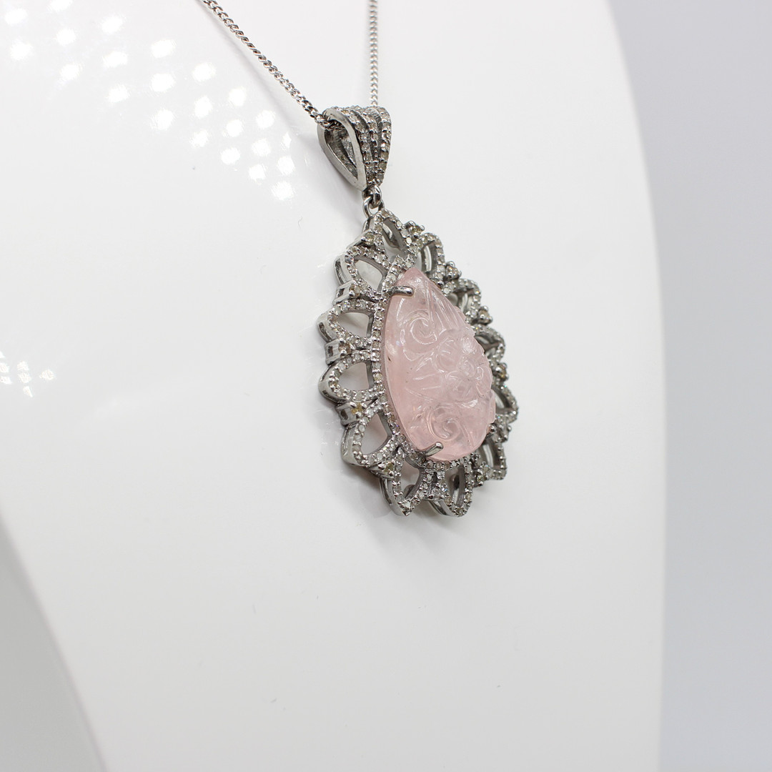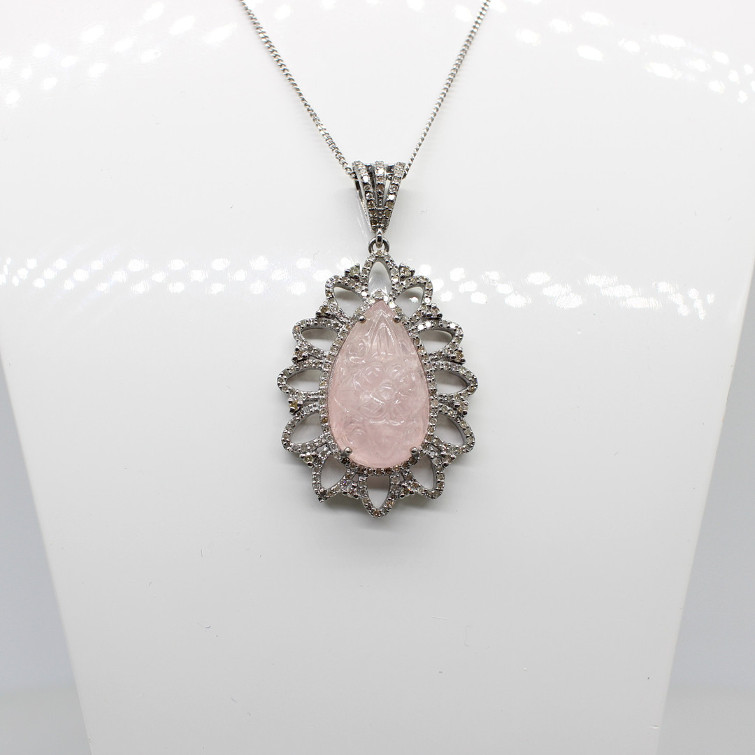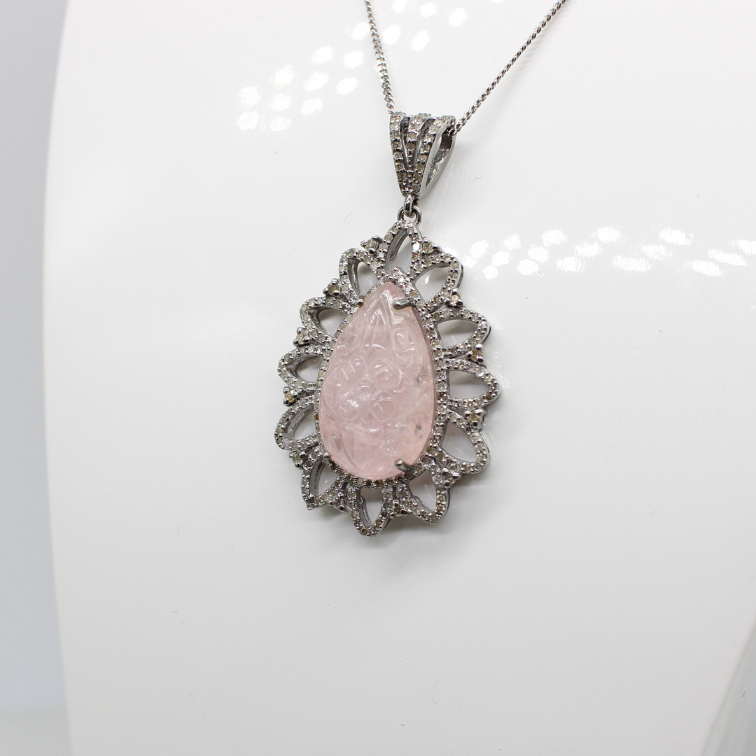 4927462. STOR DIAMANT & MORGANIT VEDHÆNG HALSKÆDE.