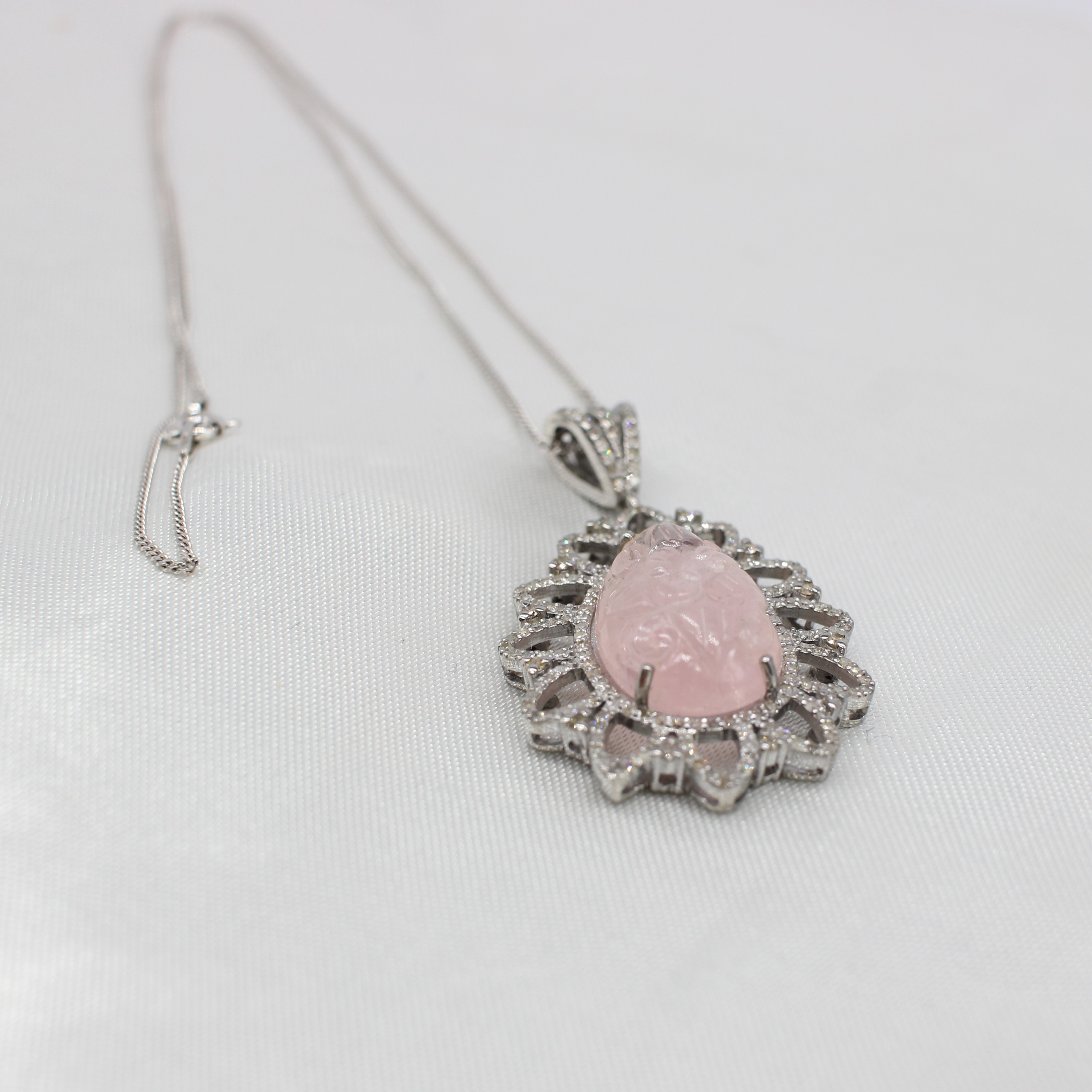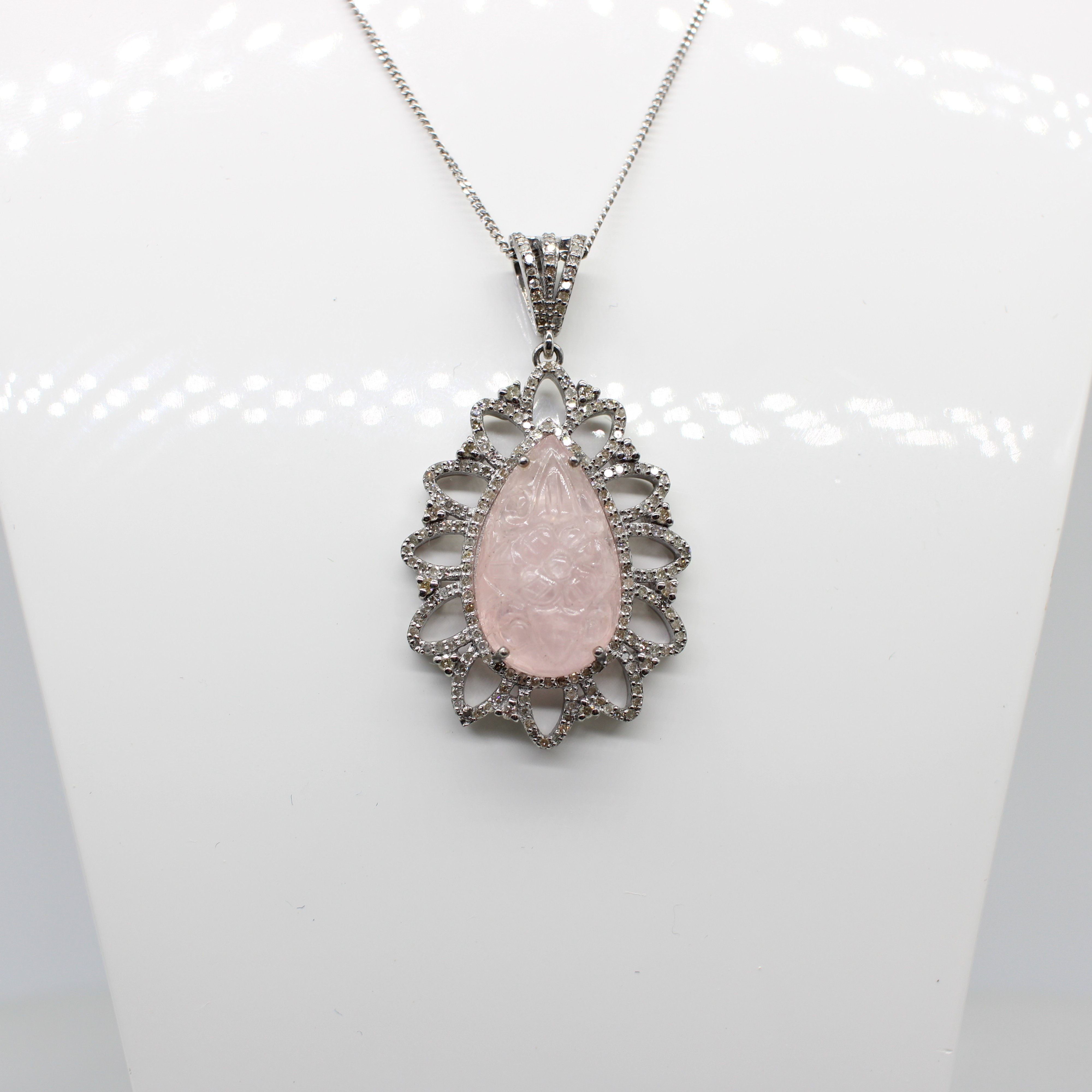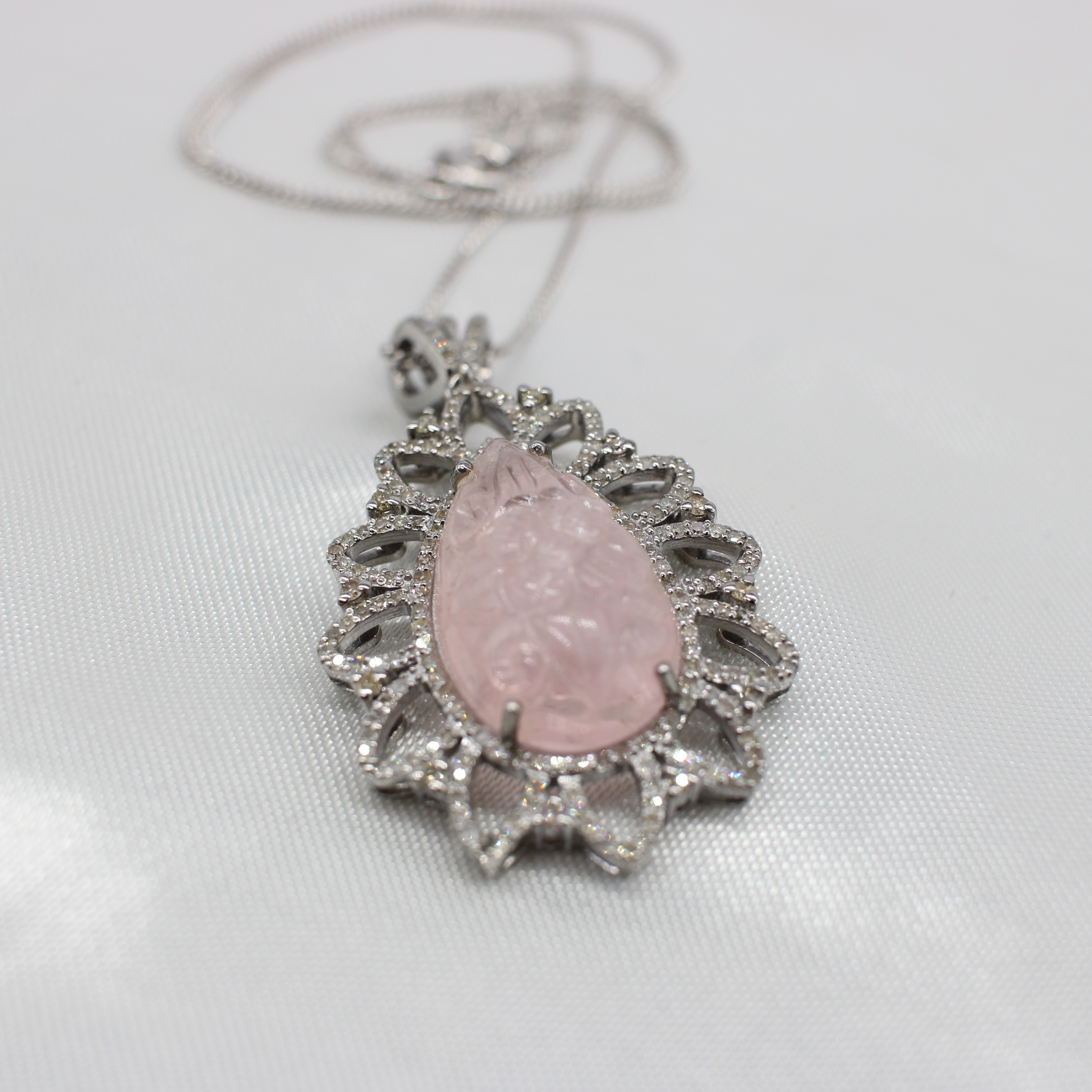 4927462. STOR DIAMANT & MORGANIT VEDHÆNG HALSKÆDE.