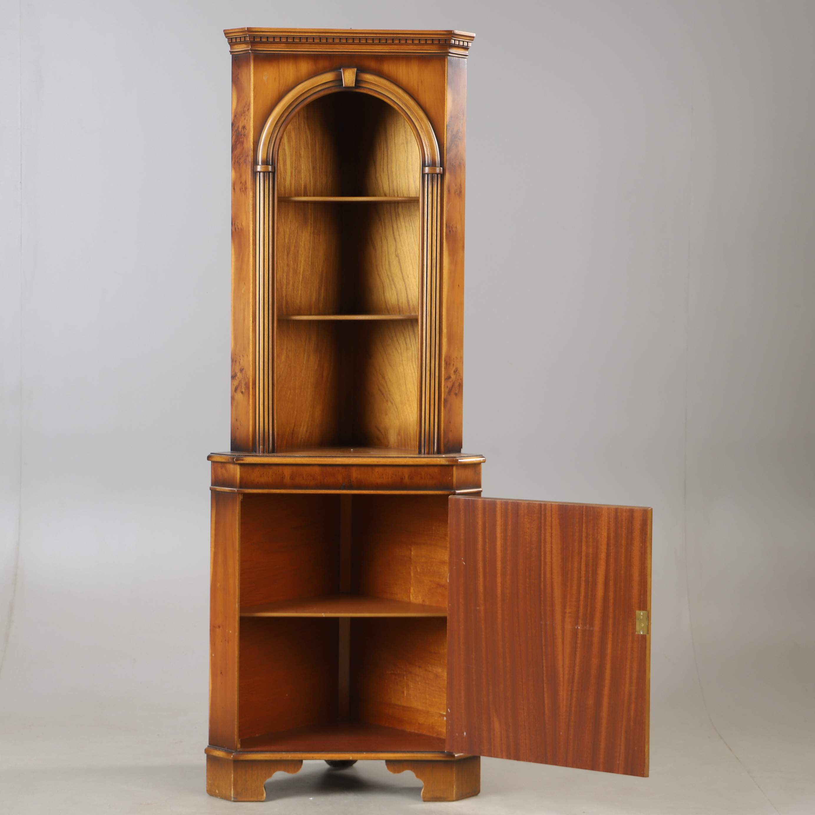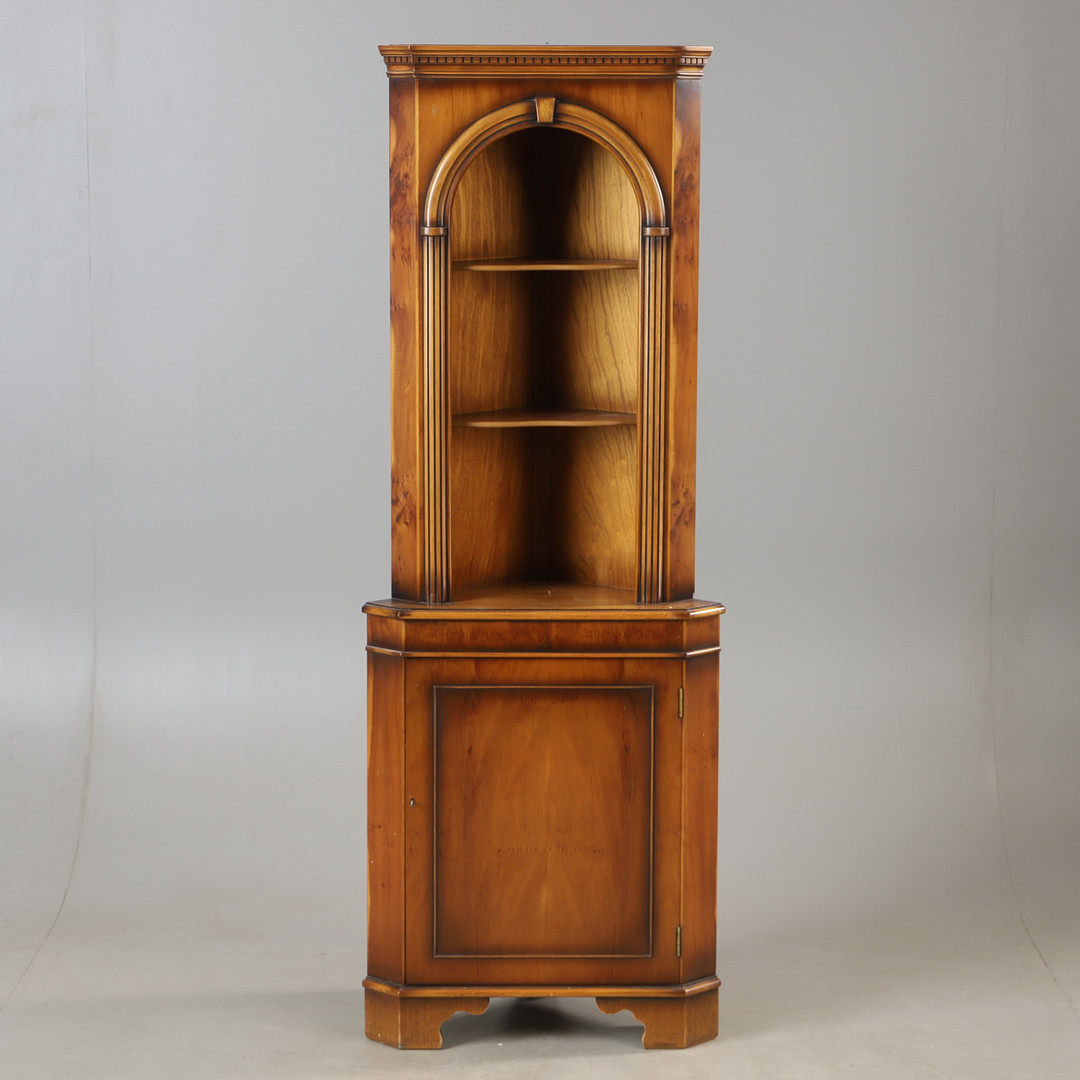 4928267. HJØRNESKAB, barlind, engelsk stil.