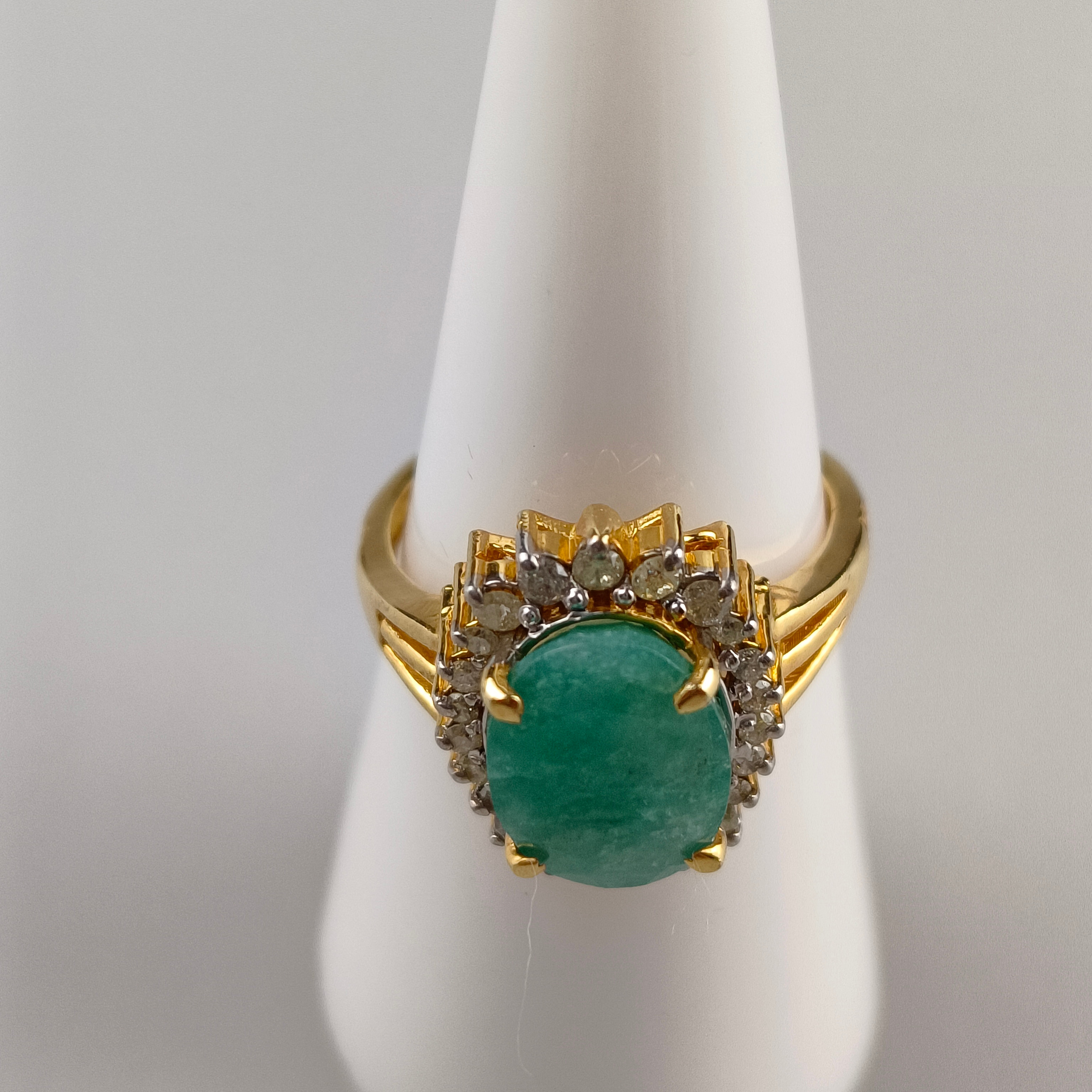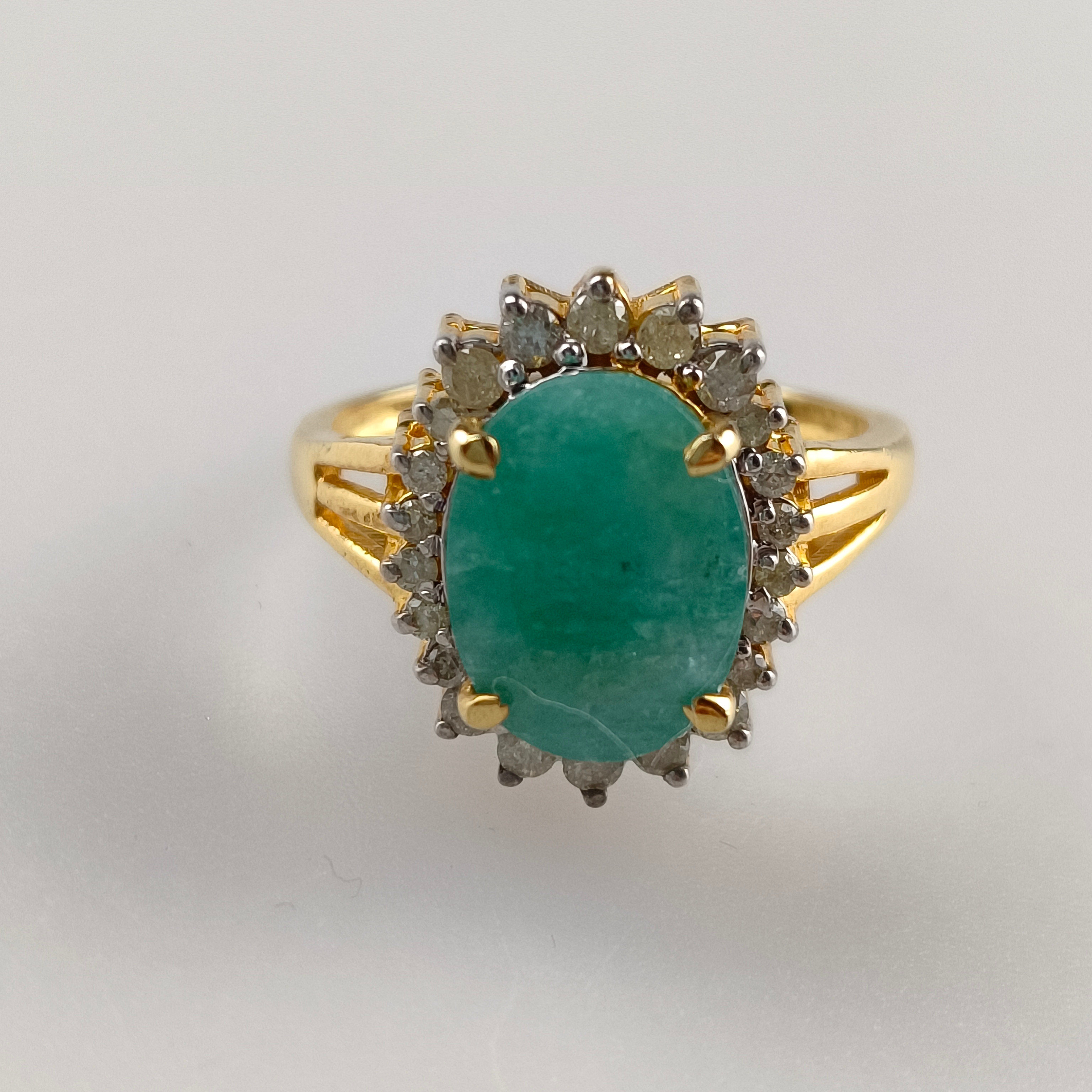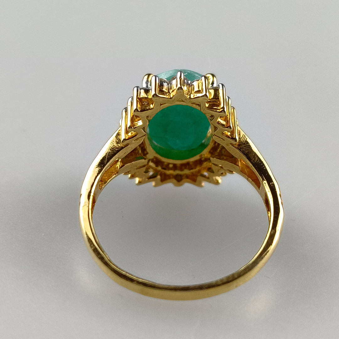 4928793. Smaragdring med diamant accenter, 925 sølv.