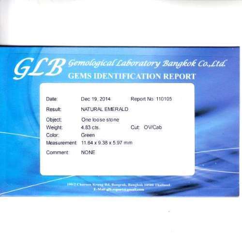 492903. EMERALD 4.83CT. Grøn, certifikat.
