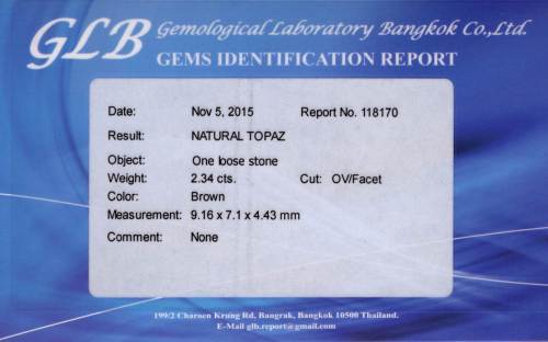 492908. TOPAZ 2.34CT. Champagne, certifikat.