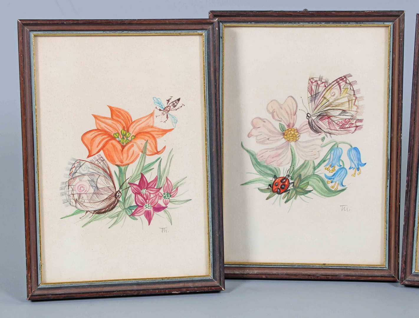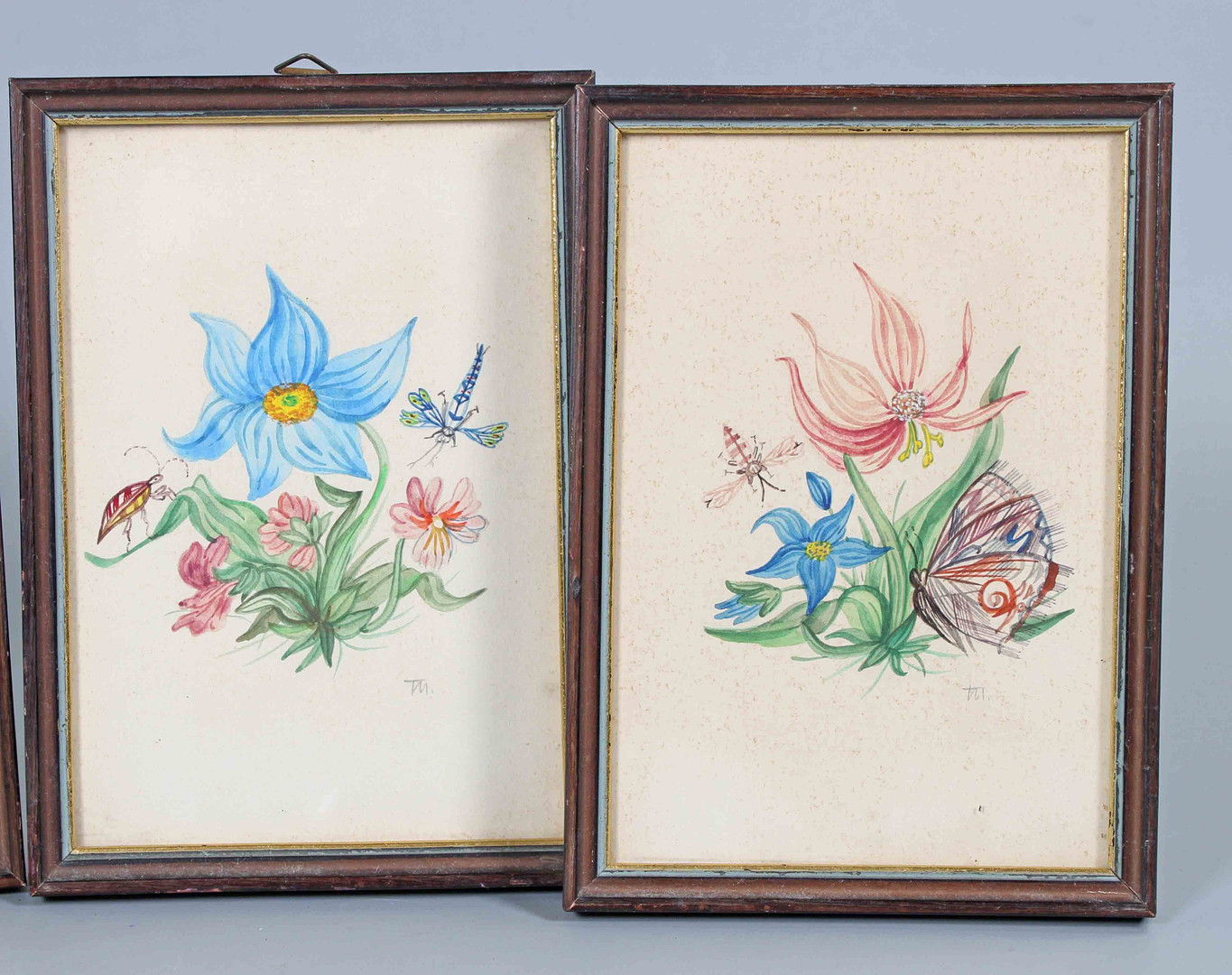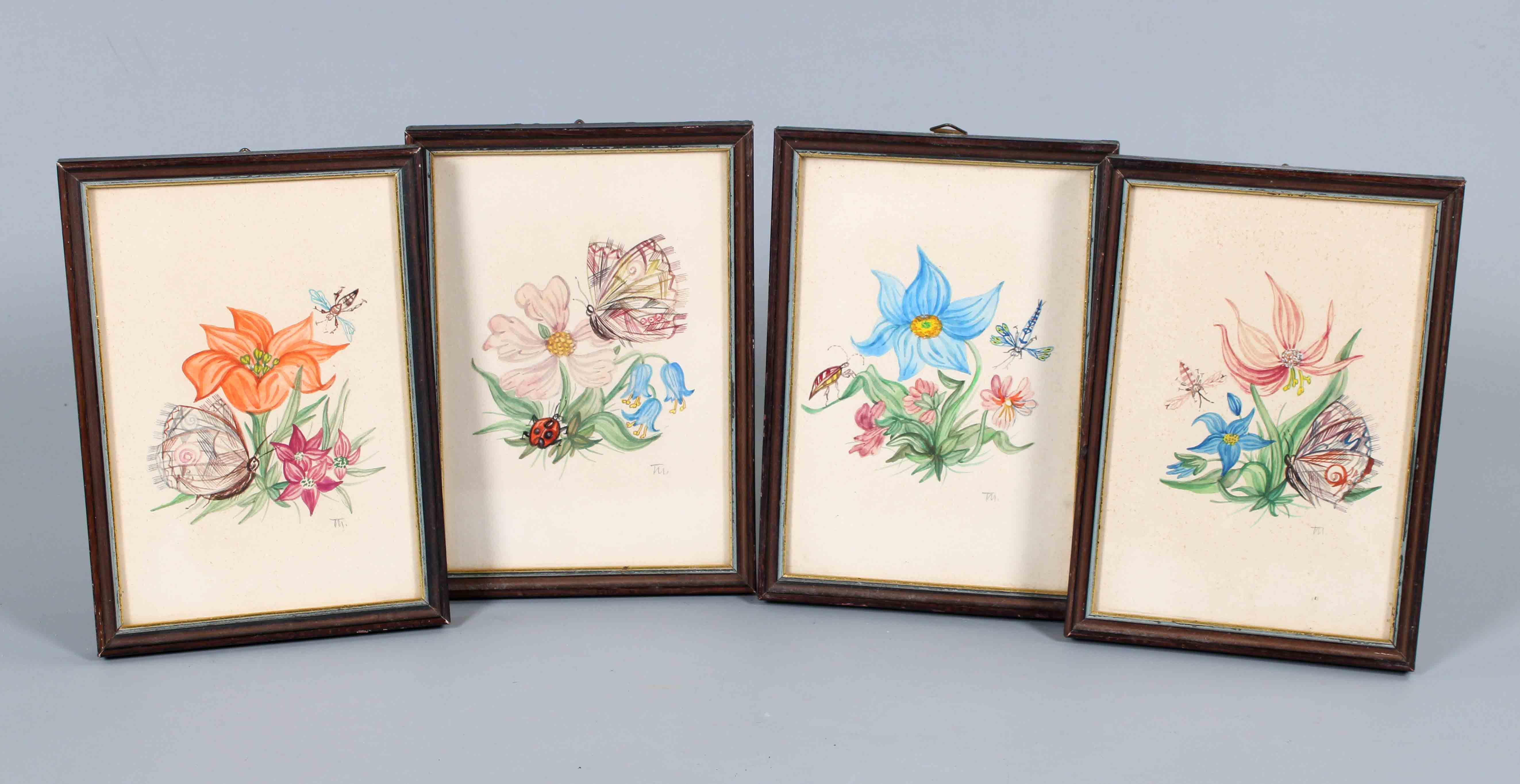 4929103. 4 SMÅ BLOMSTERMALERIER, signeret.