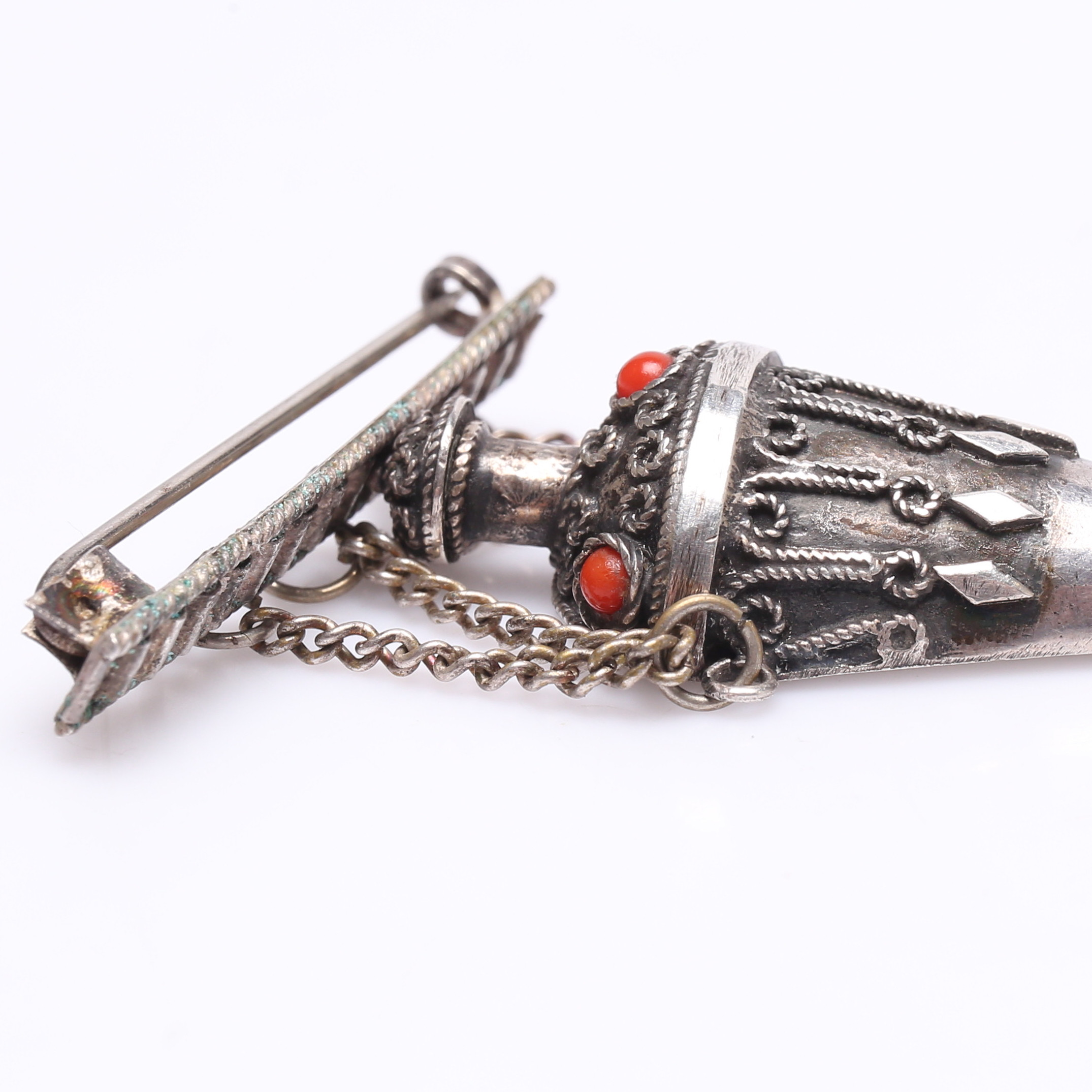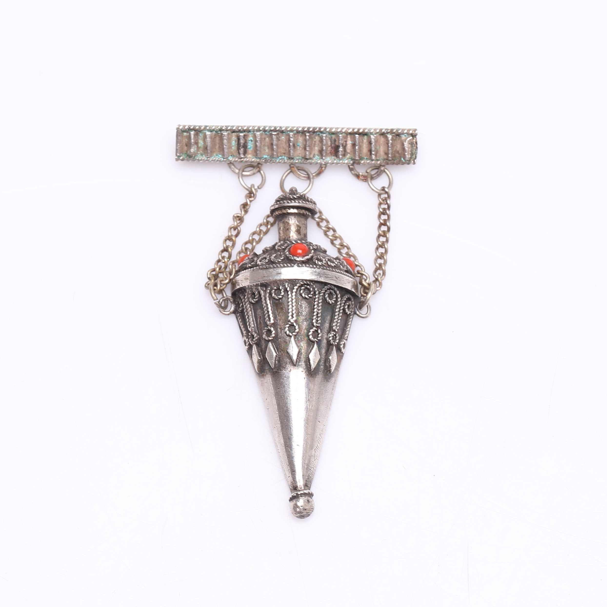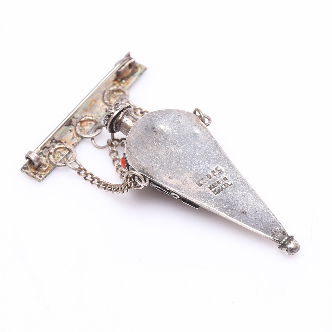 4930897. BROCHE/PARFUME FLASKE, sølv, Israel.