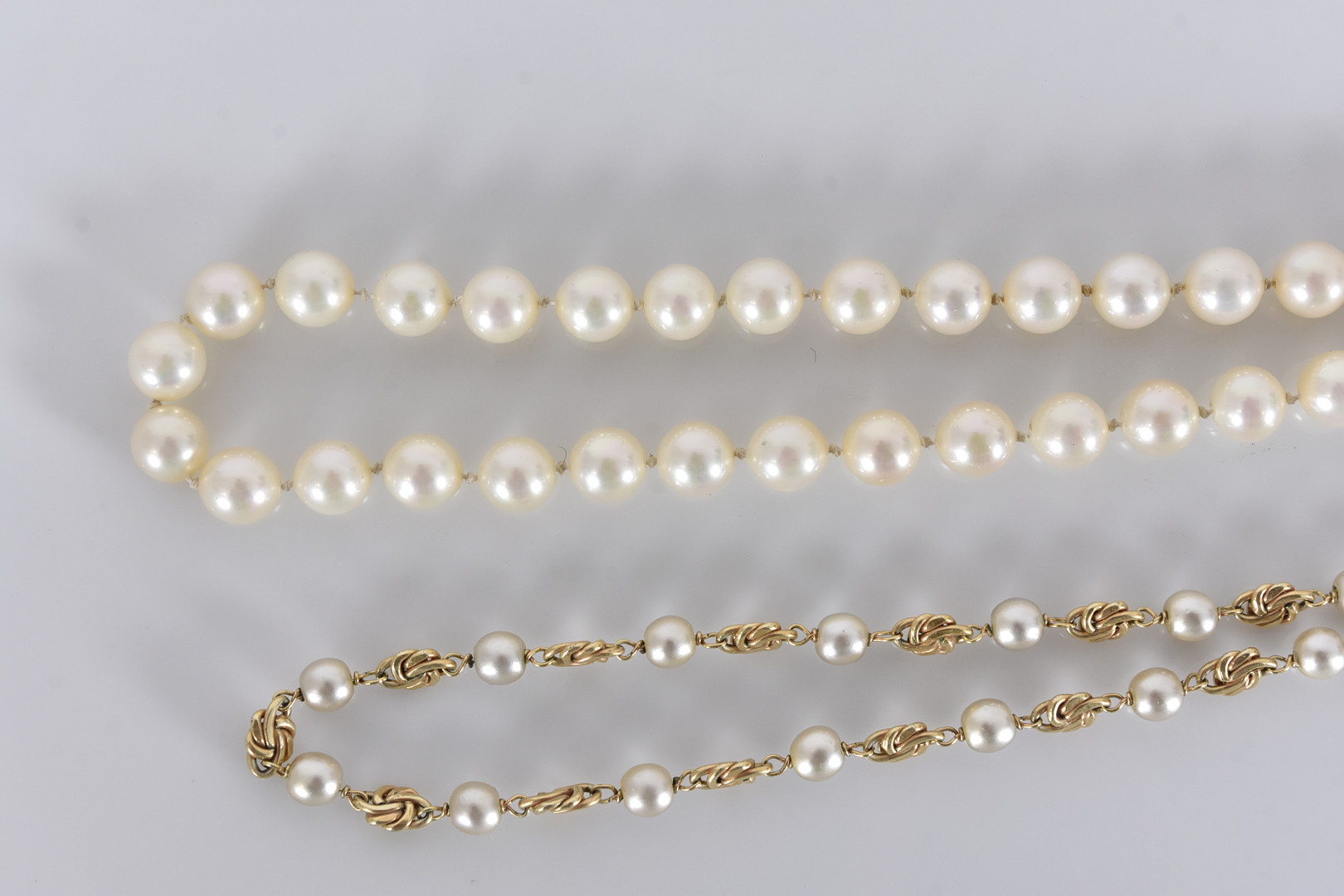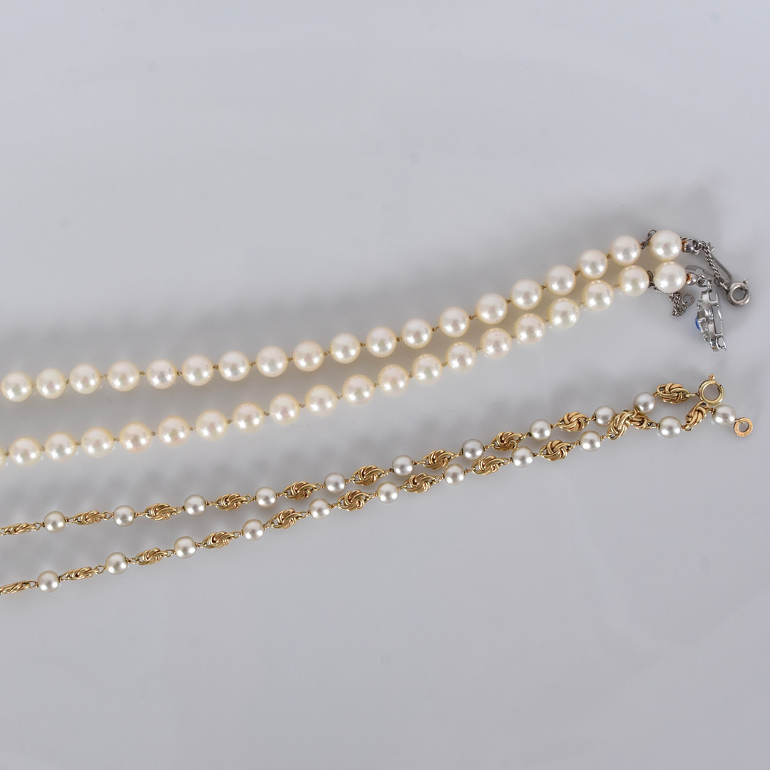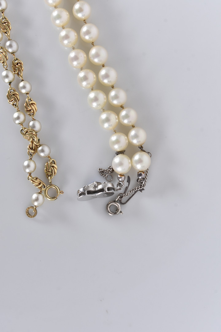 4933295. PERLEHALSKÆDE, 2 stk, inkl. sølvspænde.