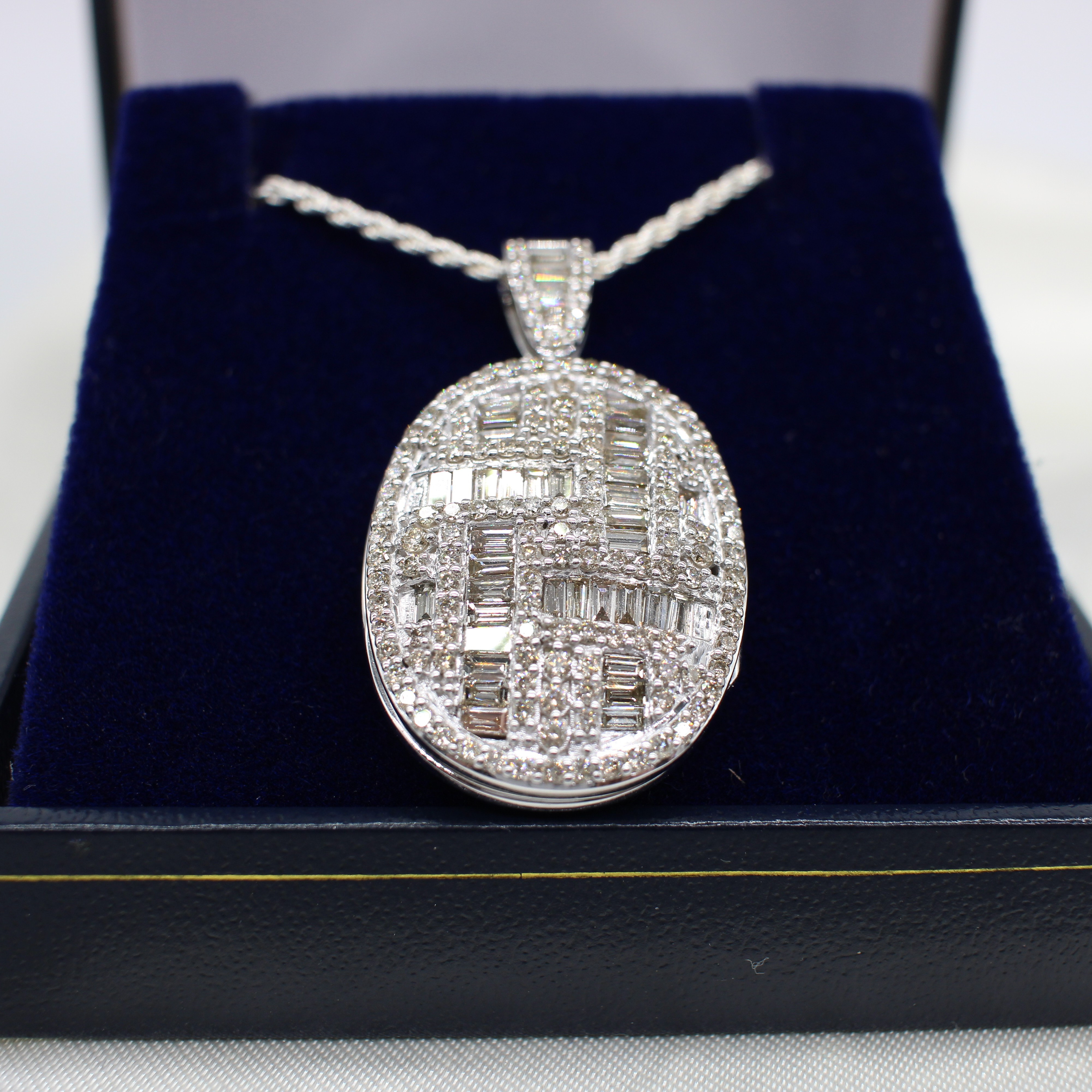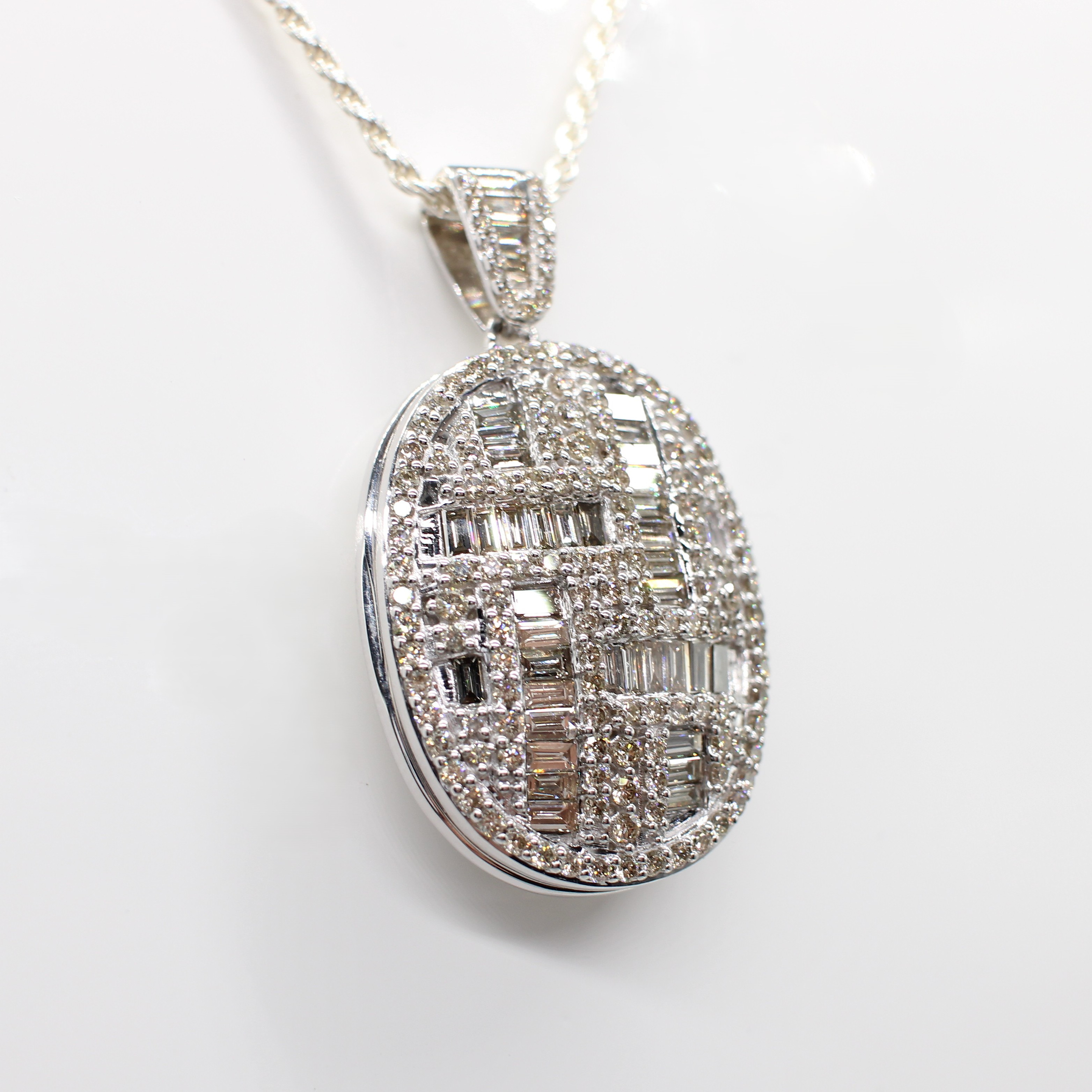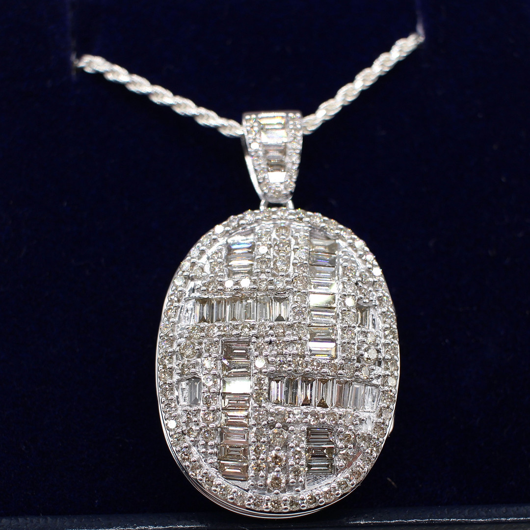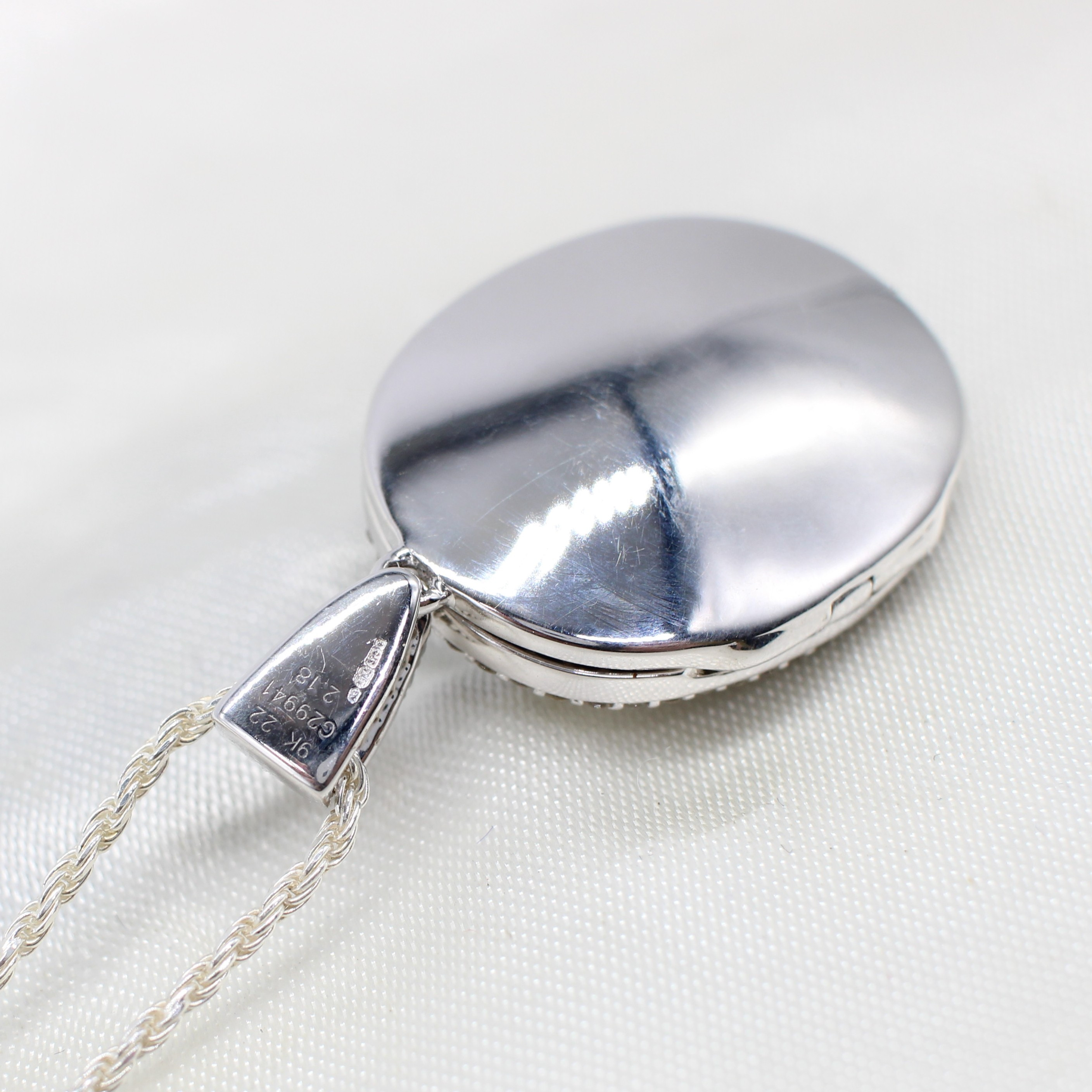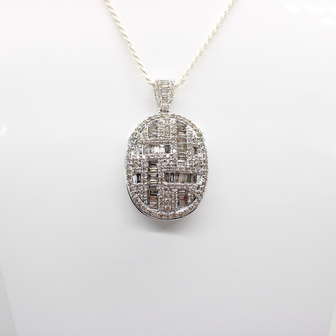 4934227. DIAMANT INDKAPSLET HVIDGULD MEDALJON.