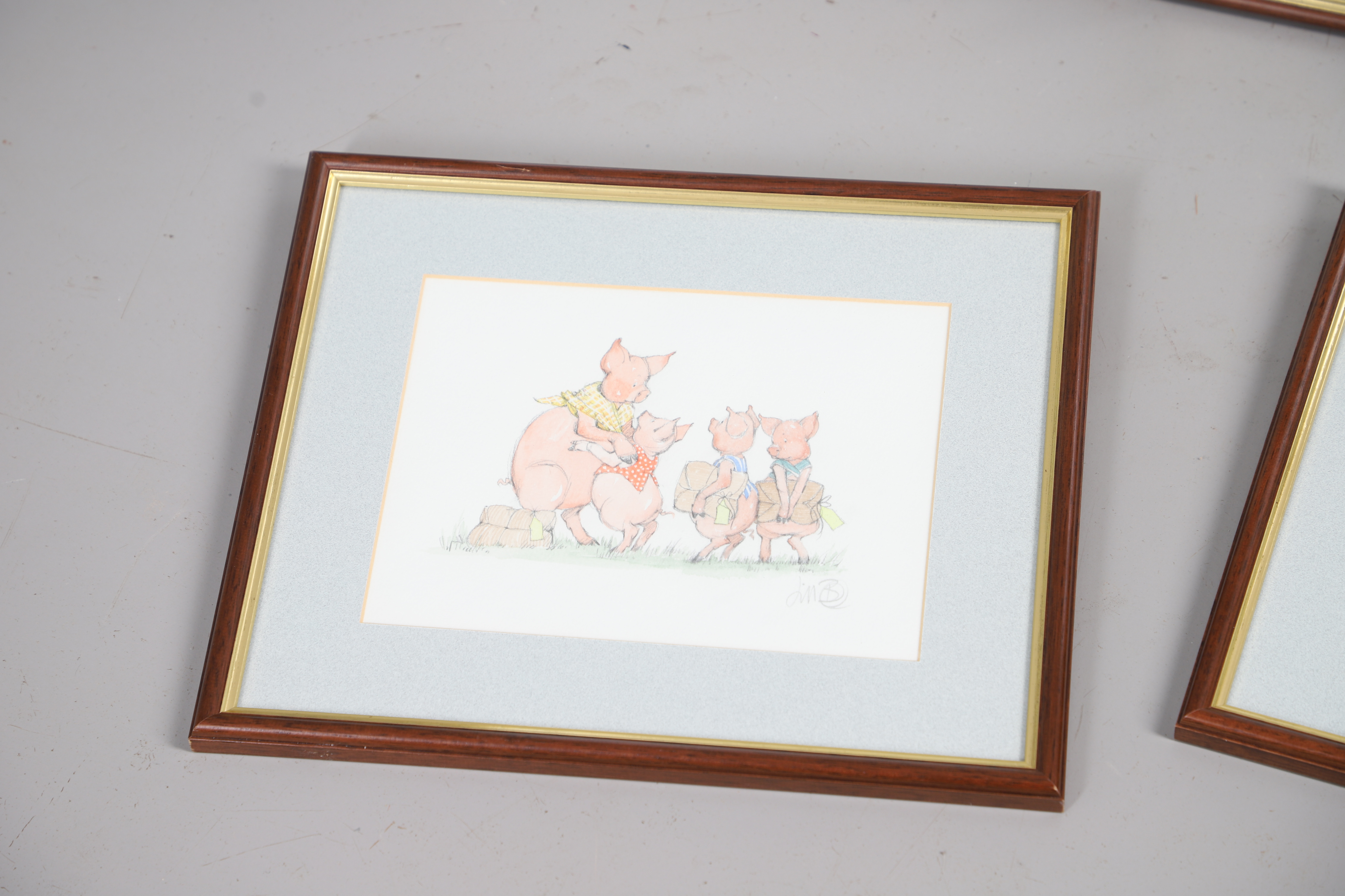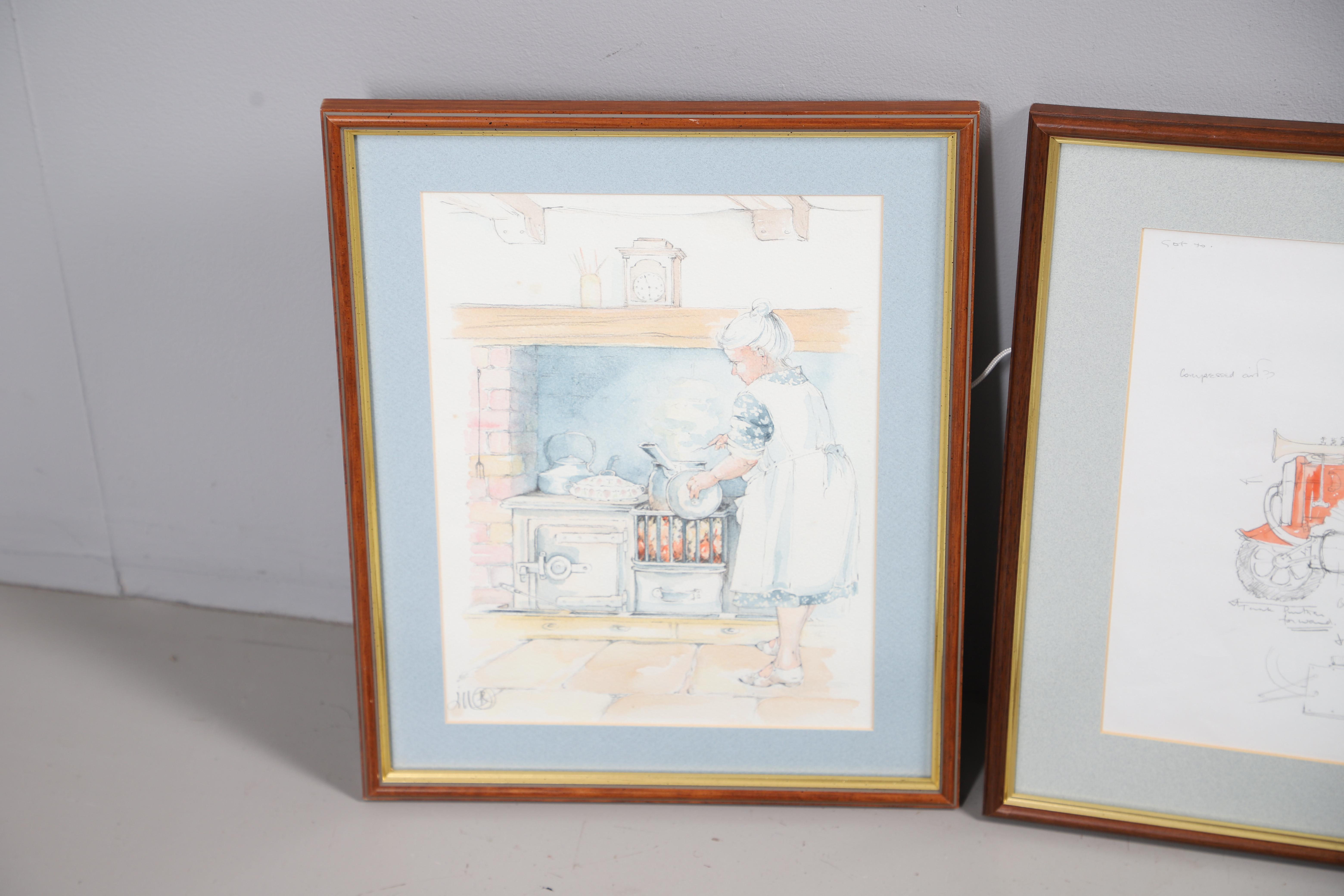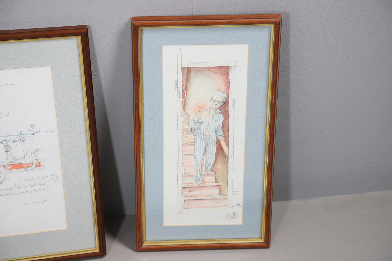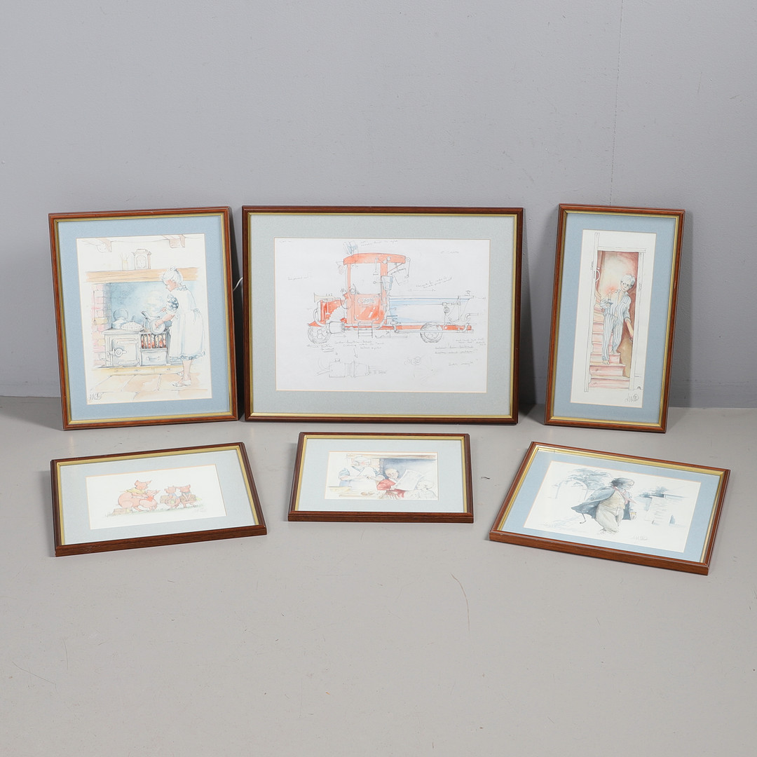 4934650. SEKS INDRAMMEDE FARVEDE BLYANTSKITSER.