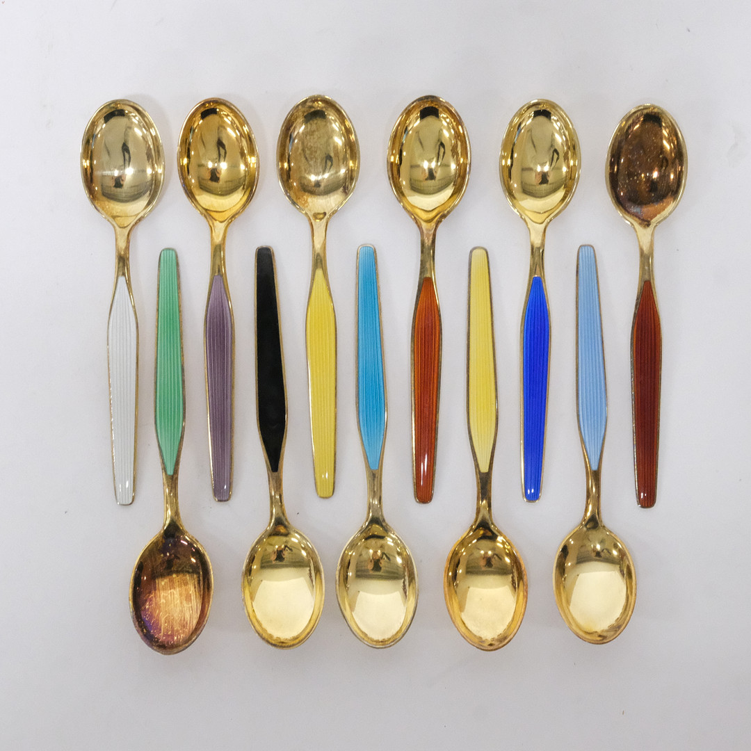 4938562. SKEER, EMALJE, SØLV, 11 STYKKER.