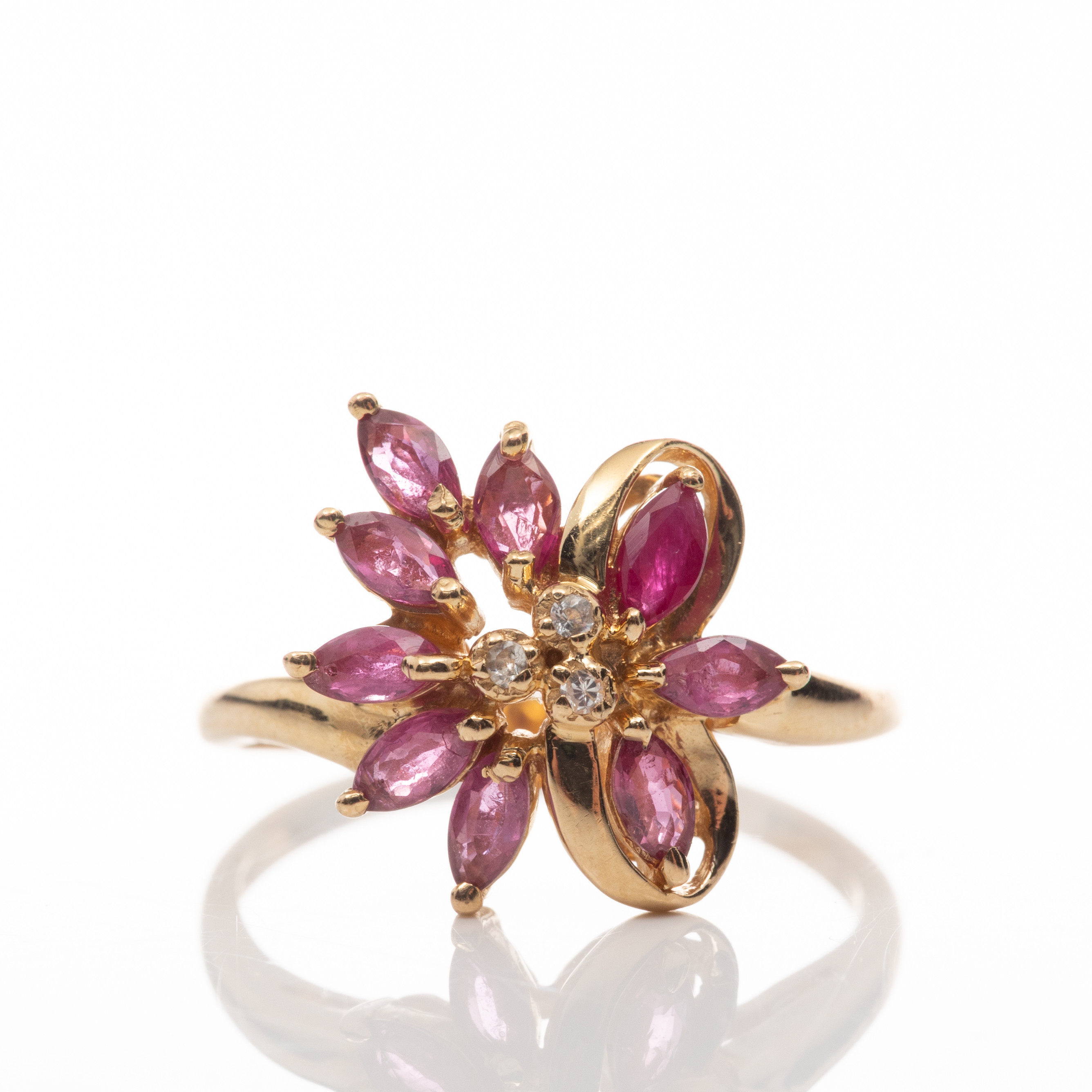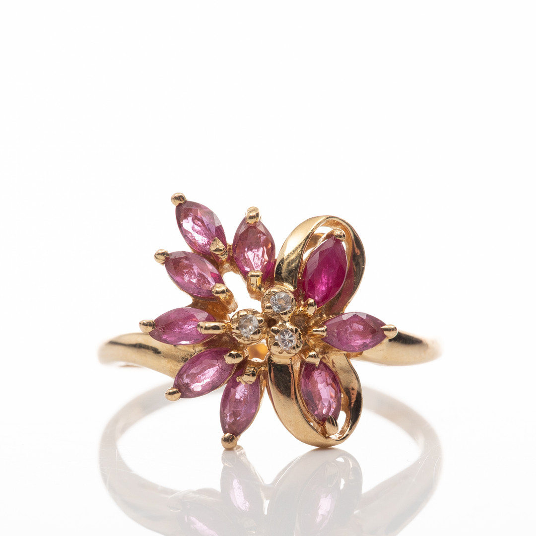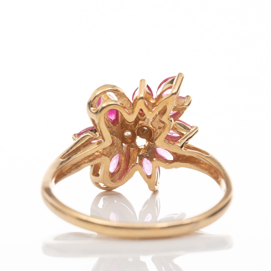 4939729. RING, 18K guld, Rubiner 0,6 ct, Diamanter.