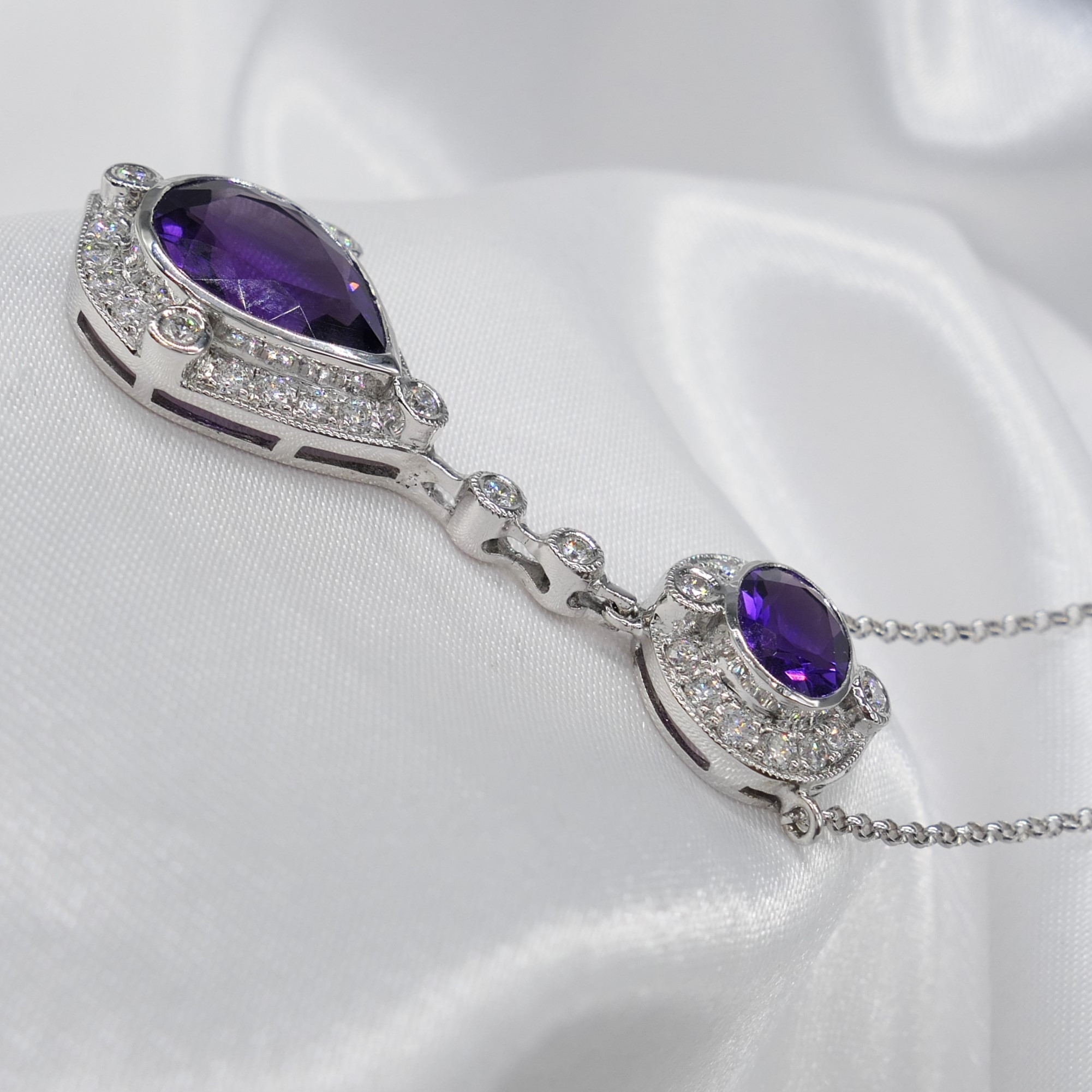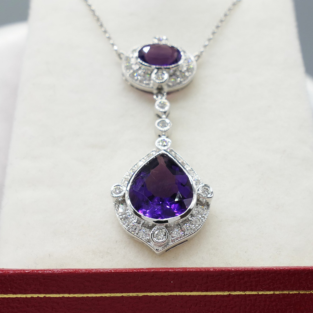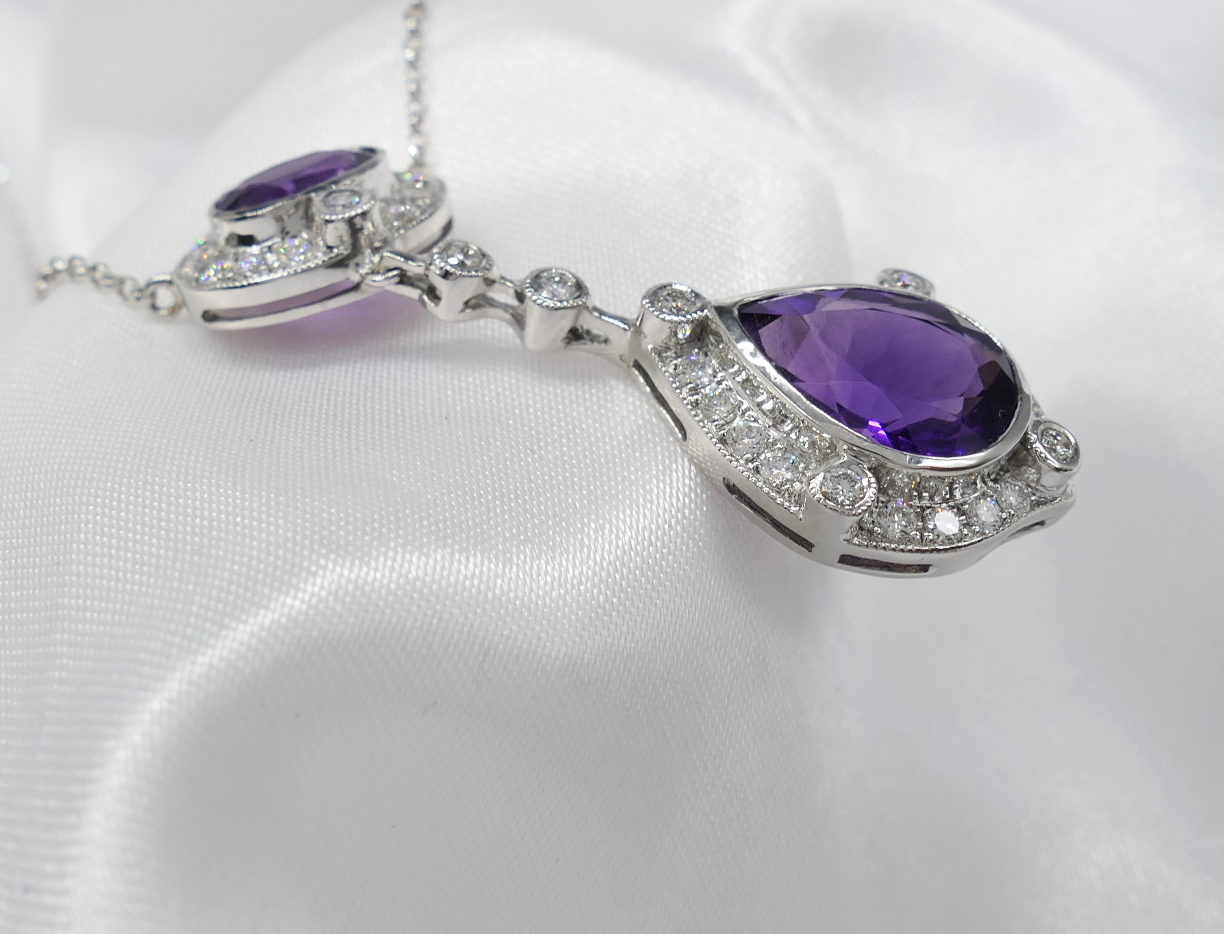 4940195. NATURLIG AMETYST & DIAMANT halskæde.
