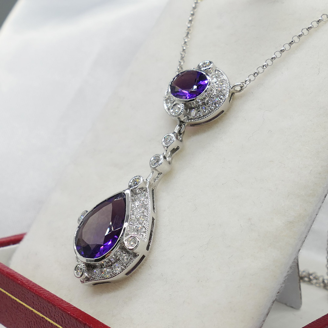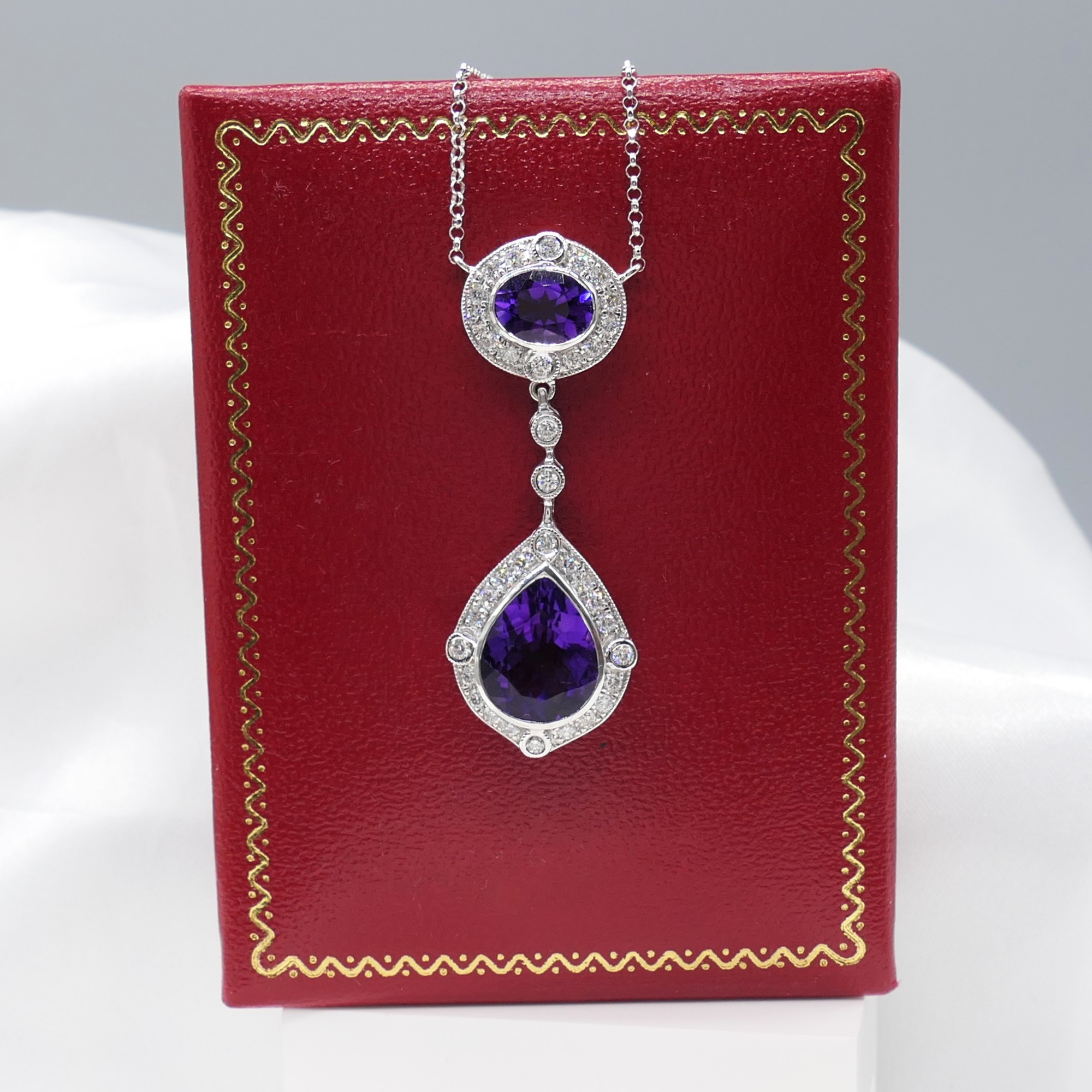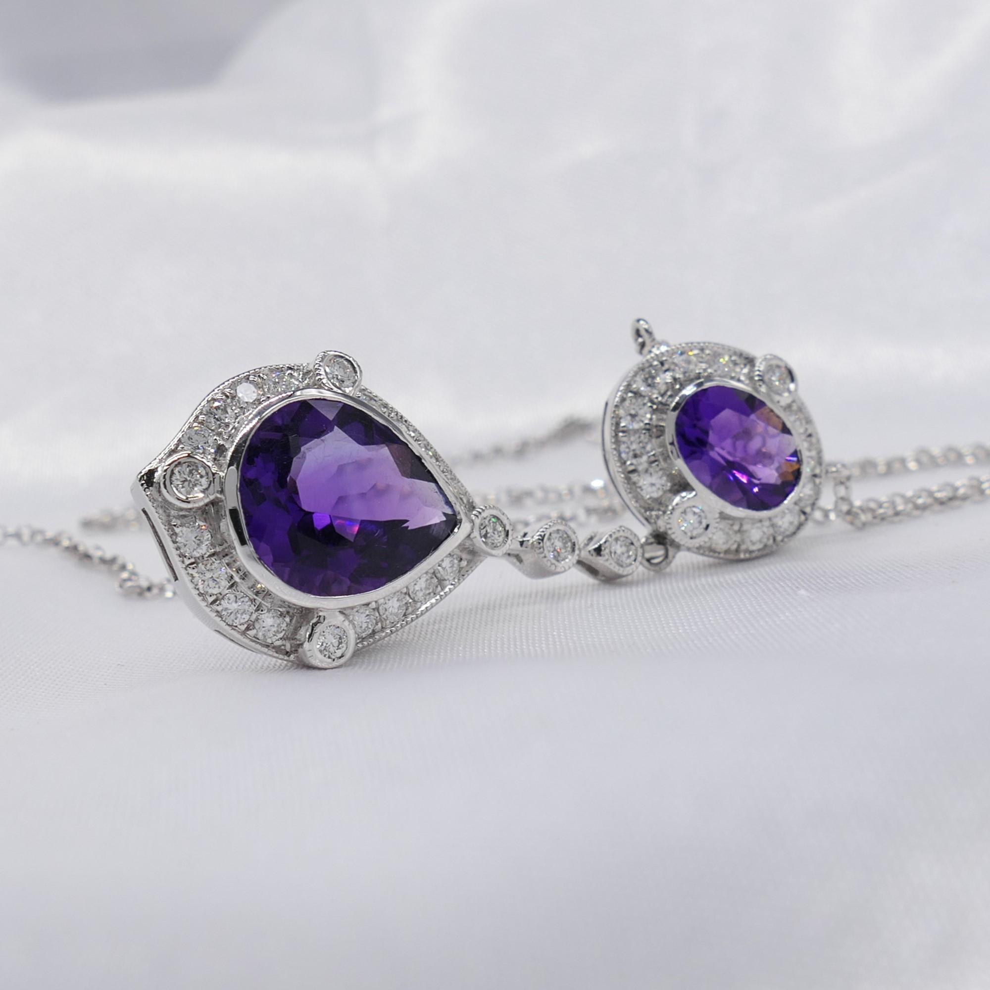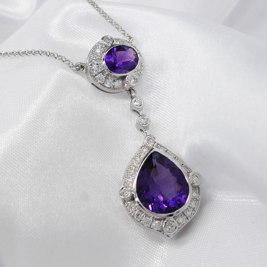 4940195. NATURLIG AMETYST & DIAMANT halskæde.