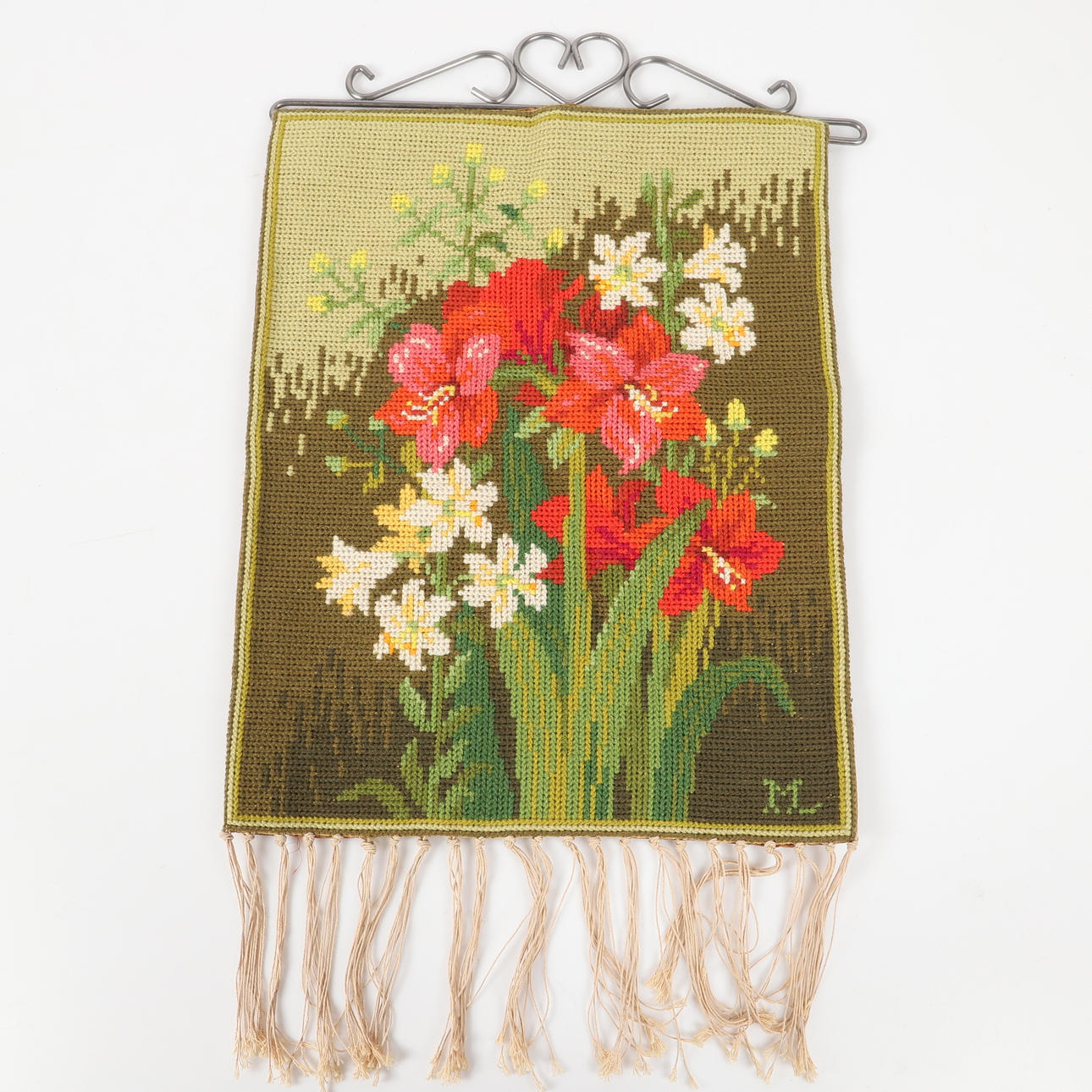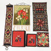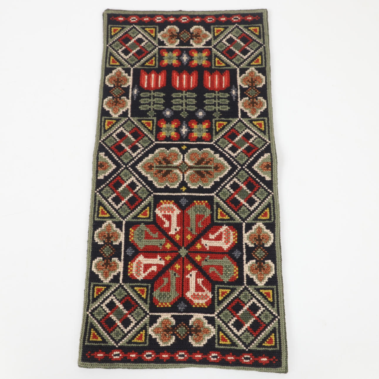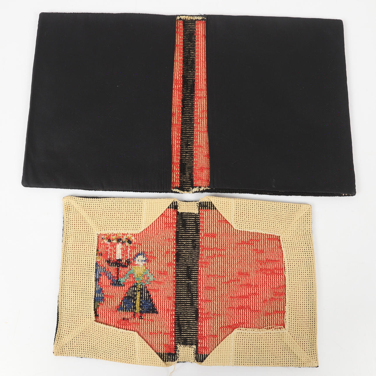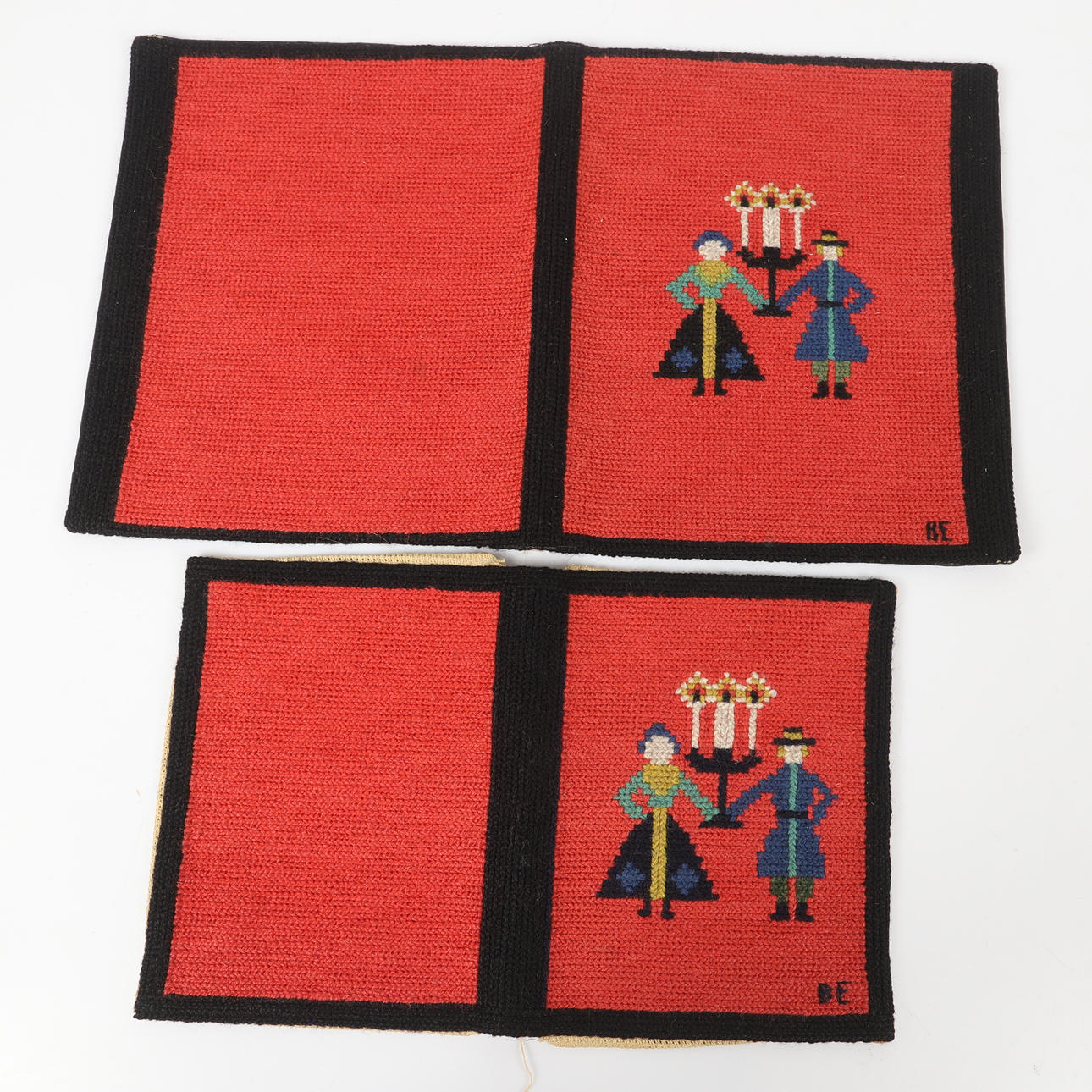 2 stk korssting broderede bogomslag, 22-27 x 18-23 cm dobbeltfoldet.