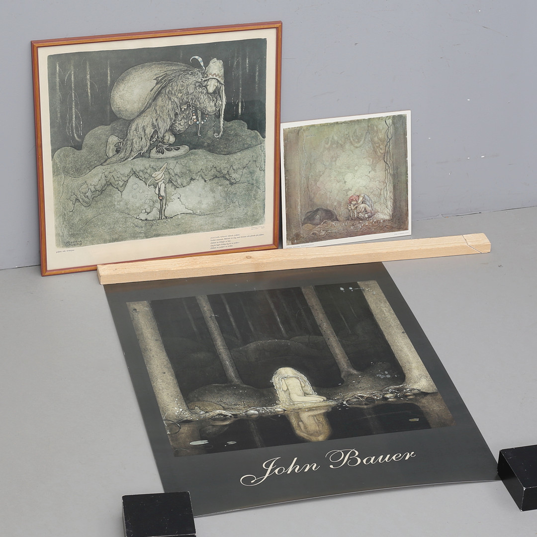 4940594. JOHN BAUER. 3 stk tryk, bla Palmeblad trykkeri.