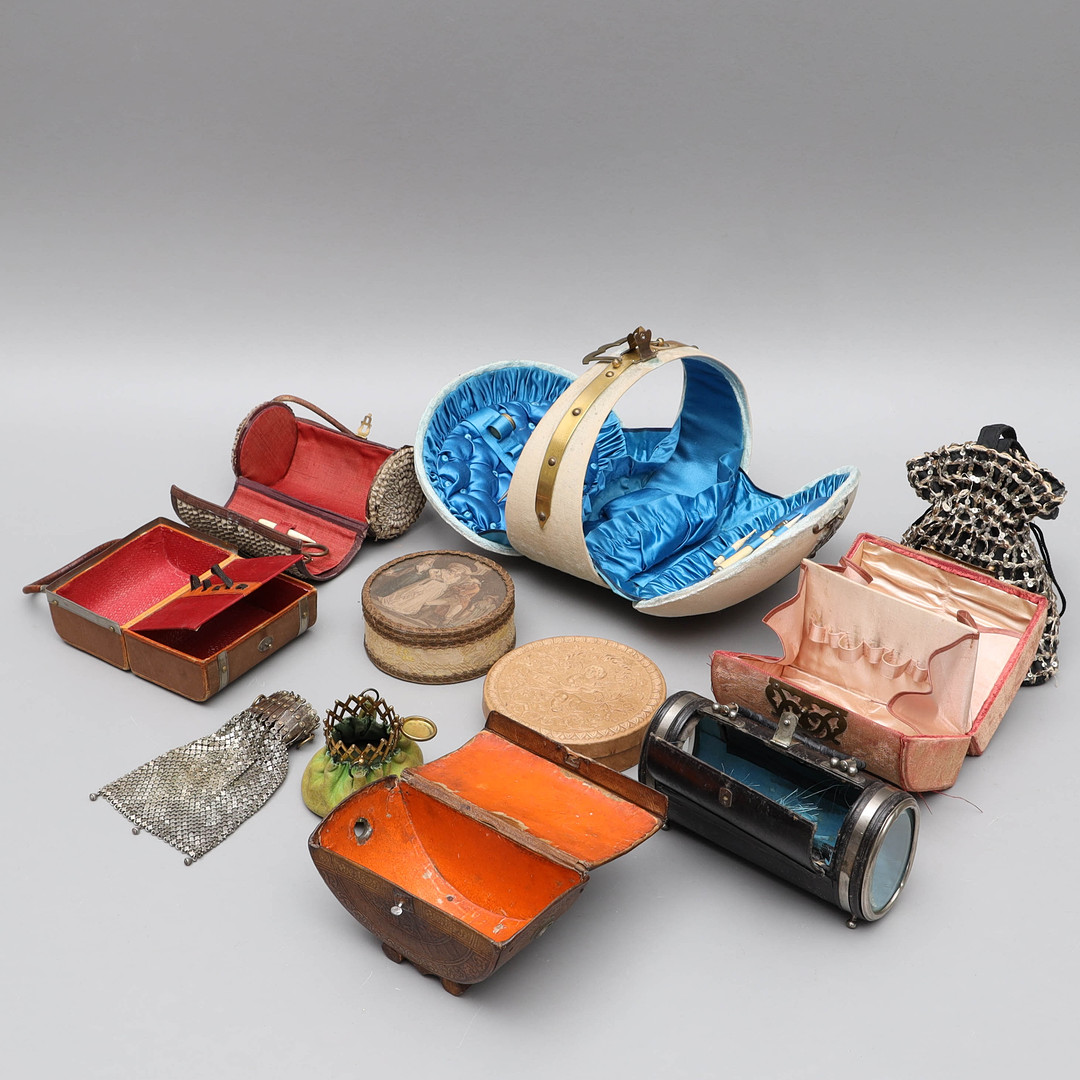 4943058. SYETUIN, TASKER OG KASSER, 11 stk., 1800/20. årh.