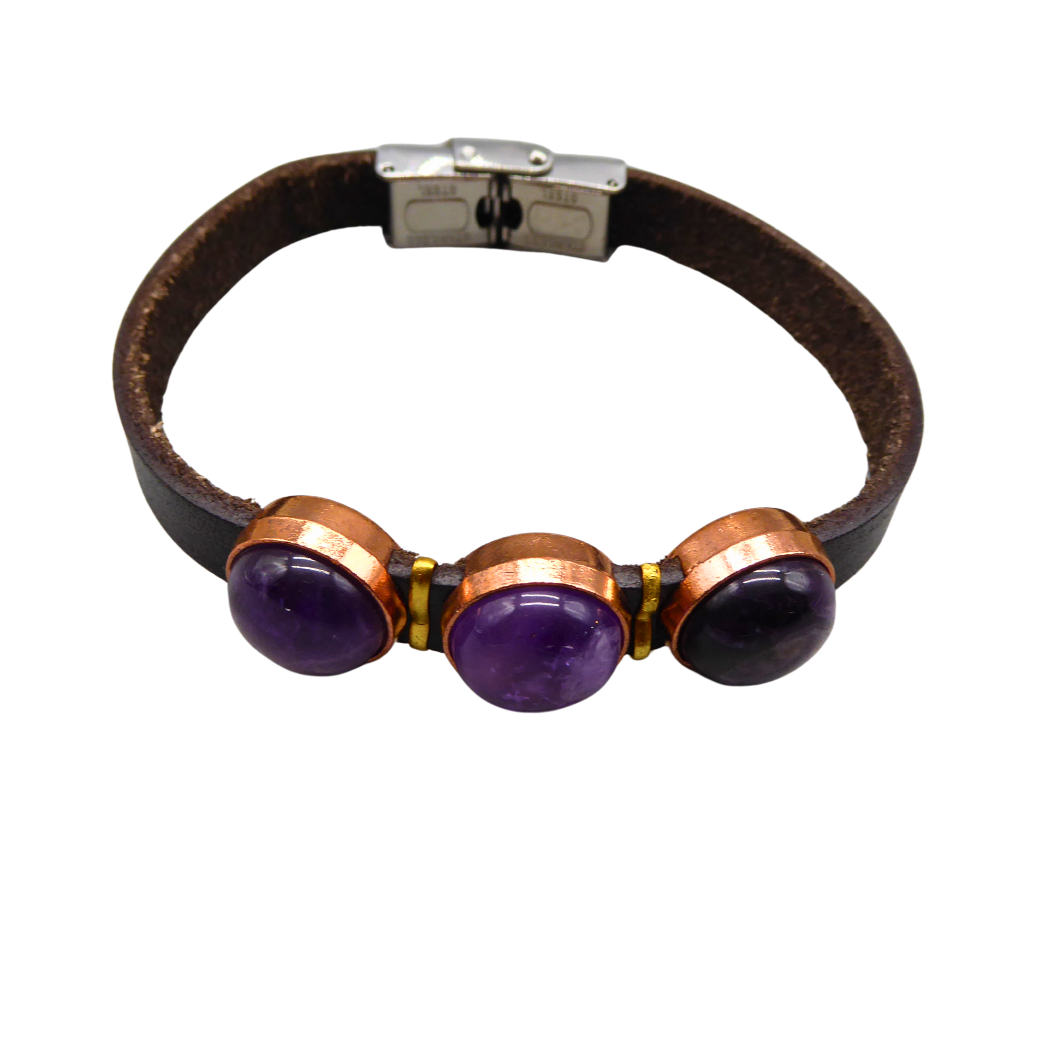 4944416. LÆDERARMBÅND MED AMETYSTER.