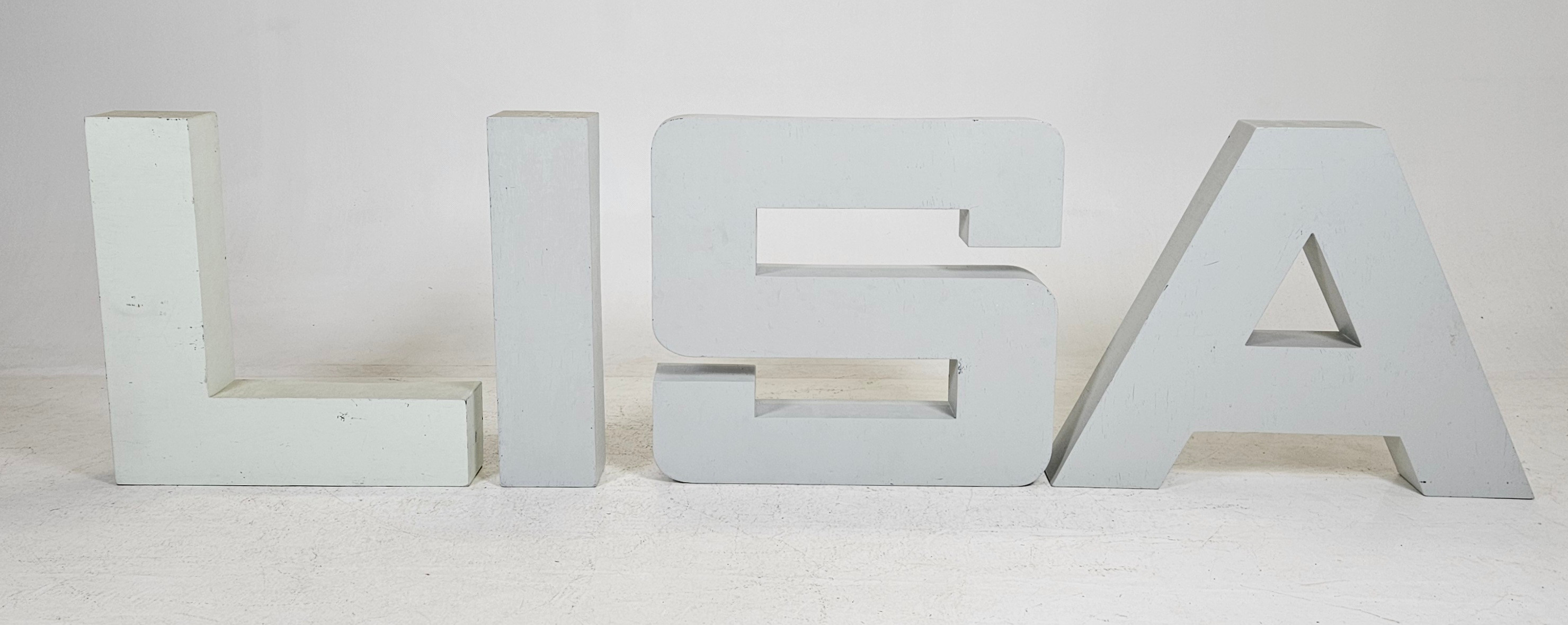 4944435. Bogstaver, 4 stk., metalplade, malet.