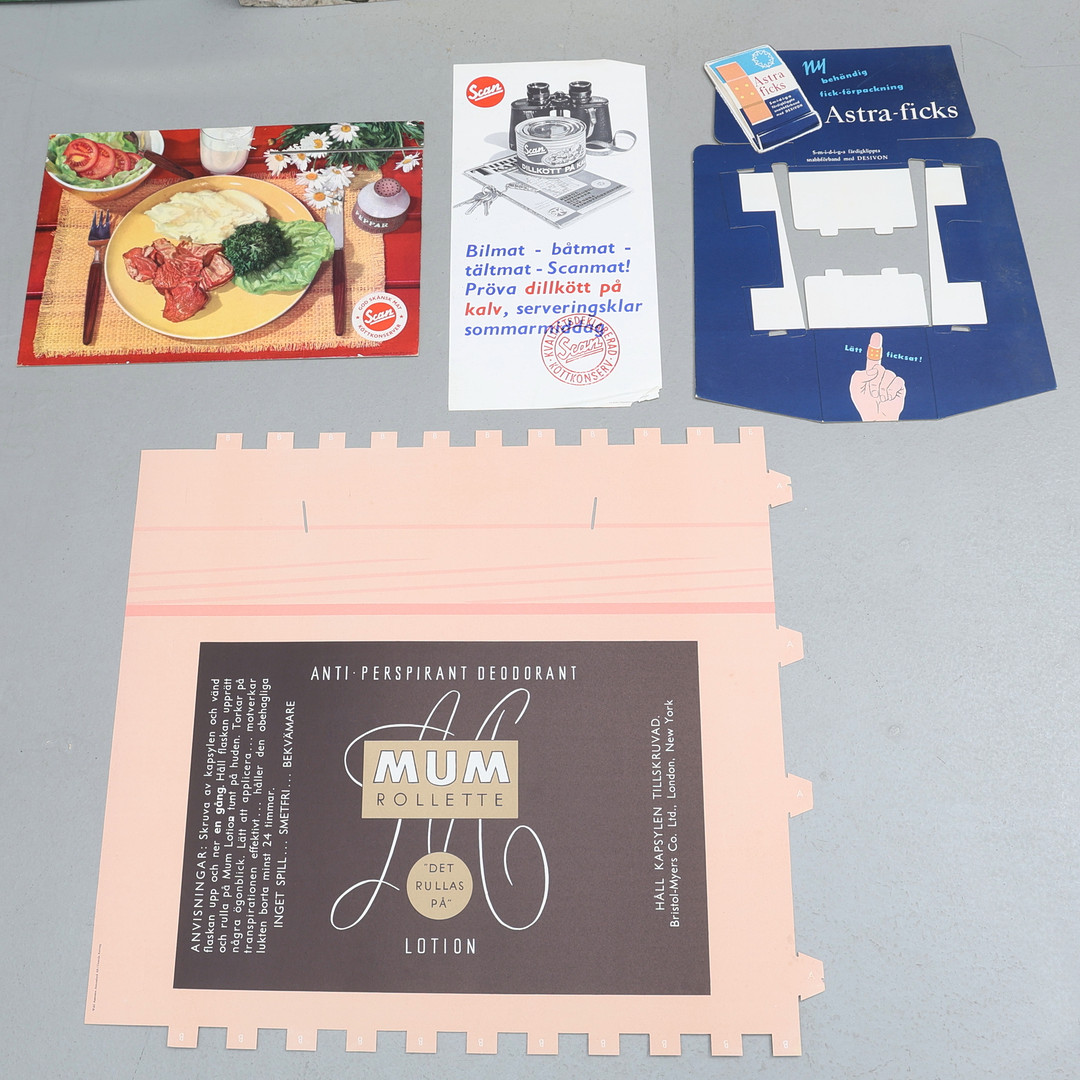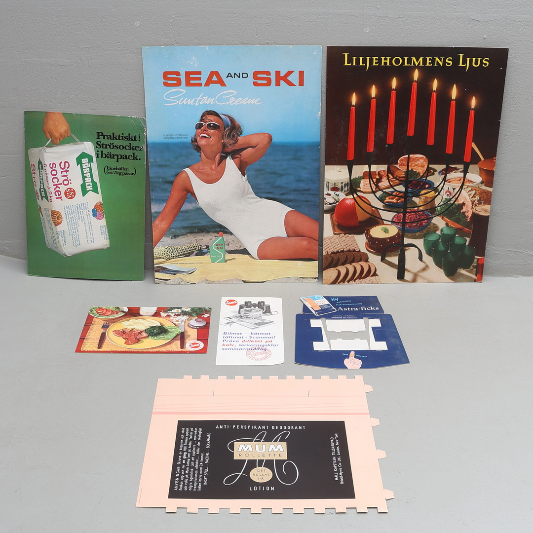 4945505. Reklameskilte, 7 stk., pap, 20. årh.