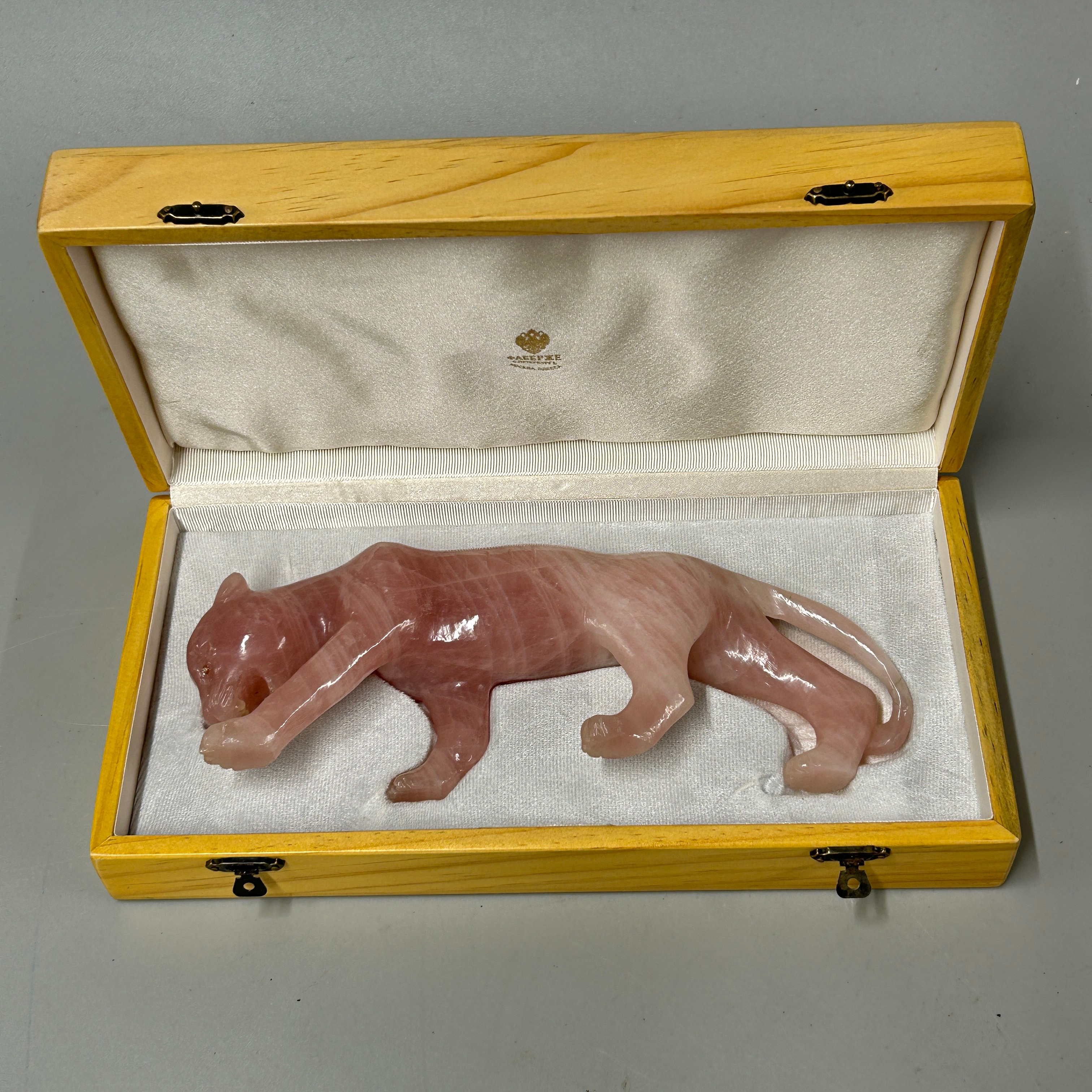 4947536. ROSEKVARTS TIGER MED DIAMANTSATTE ØJNE.