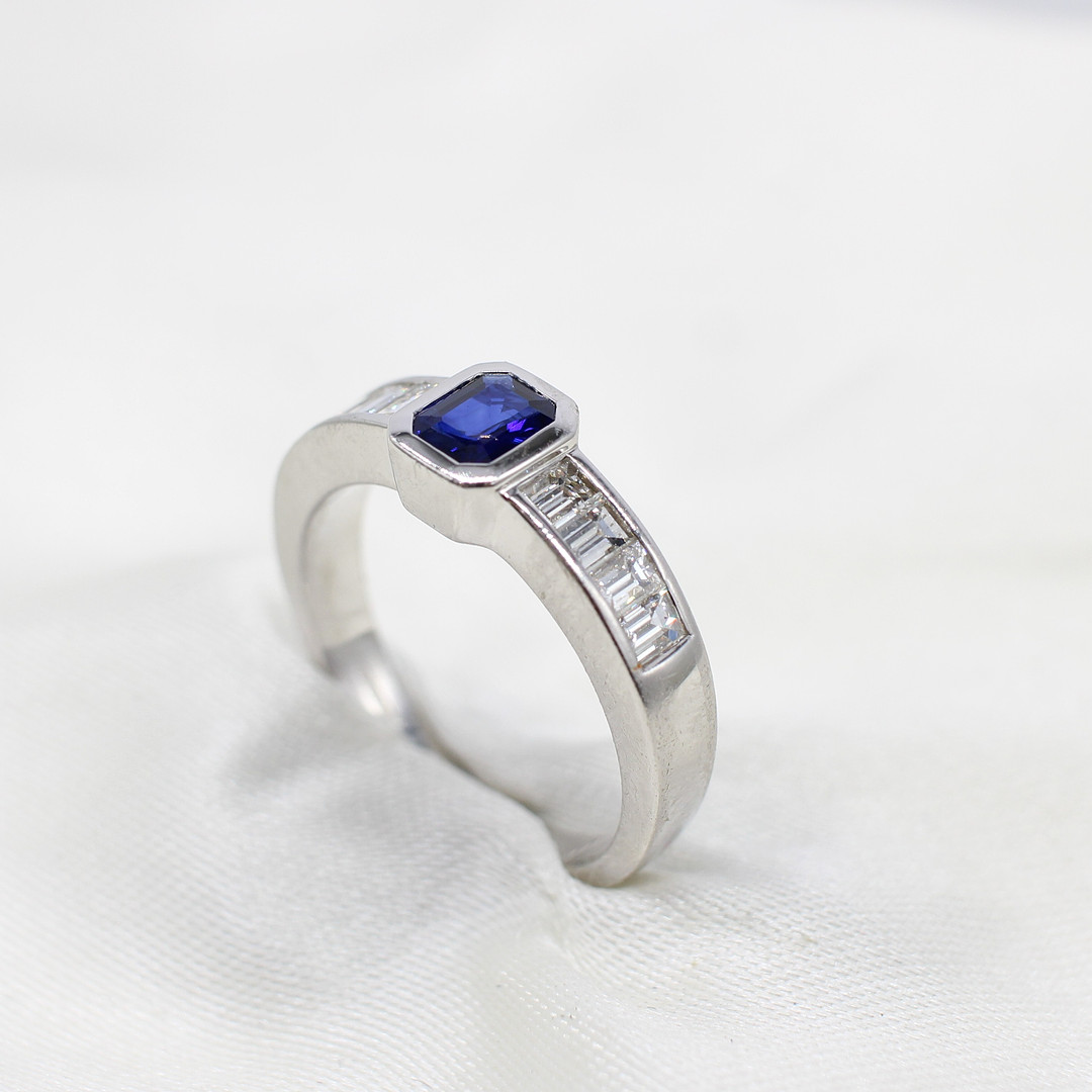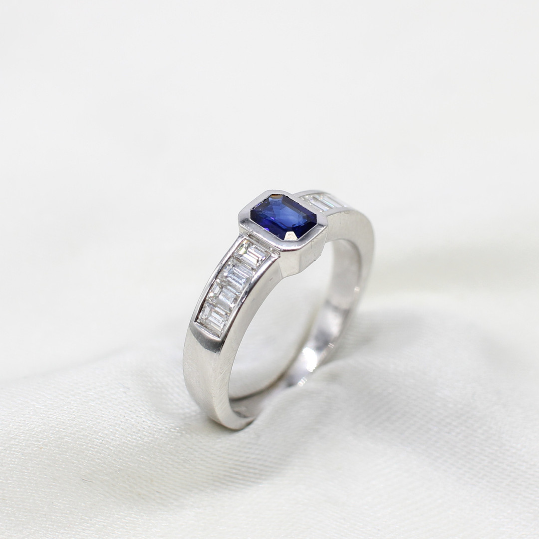 4948035. SAFIR & DIAMANT RING I 18K GULD.