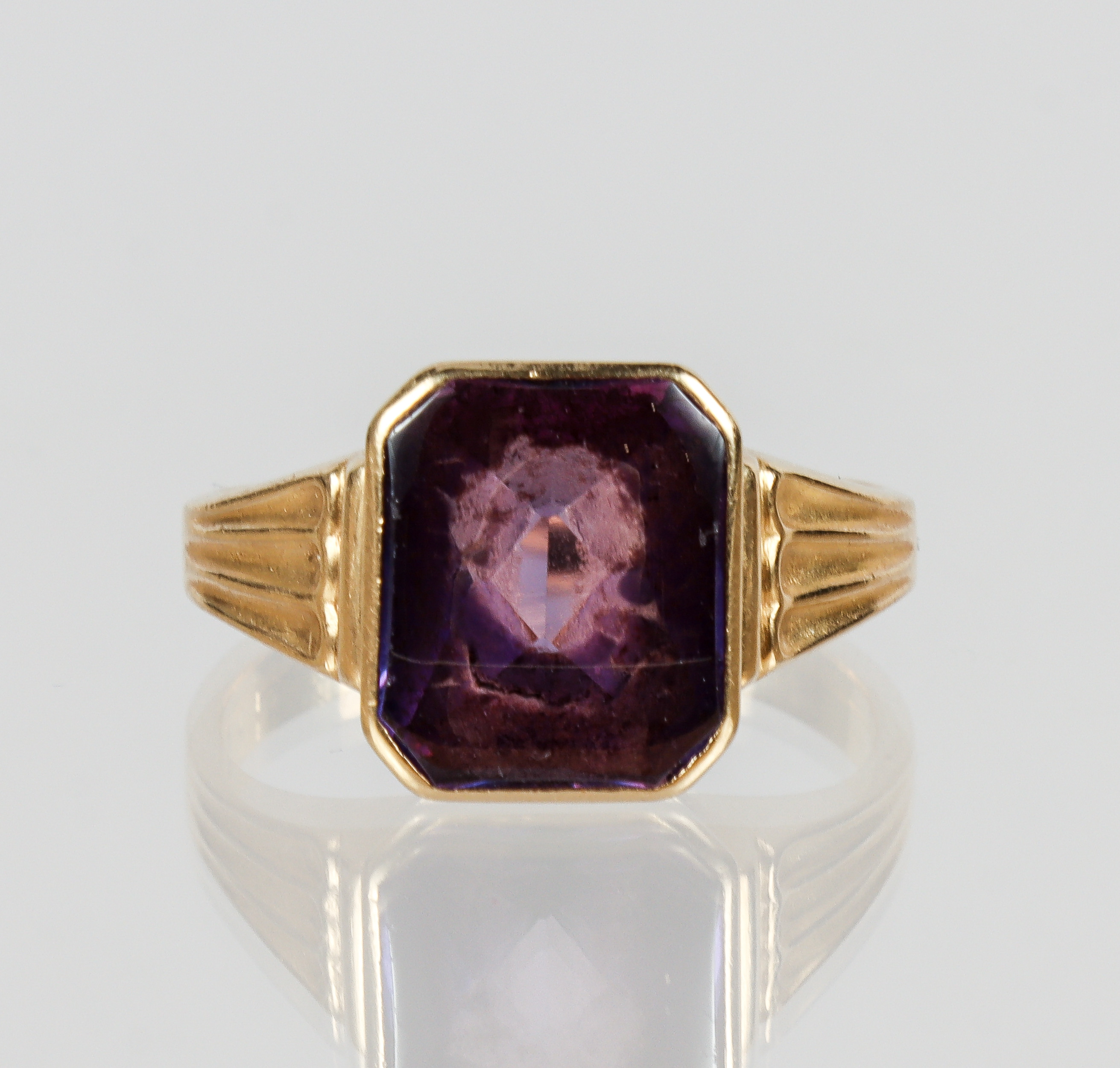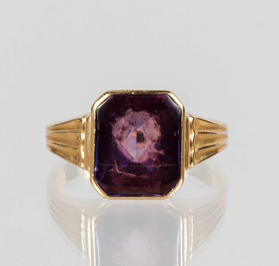 4950800. RING 18 kt. guld med flaskåret ametyst.