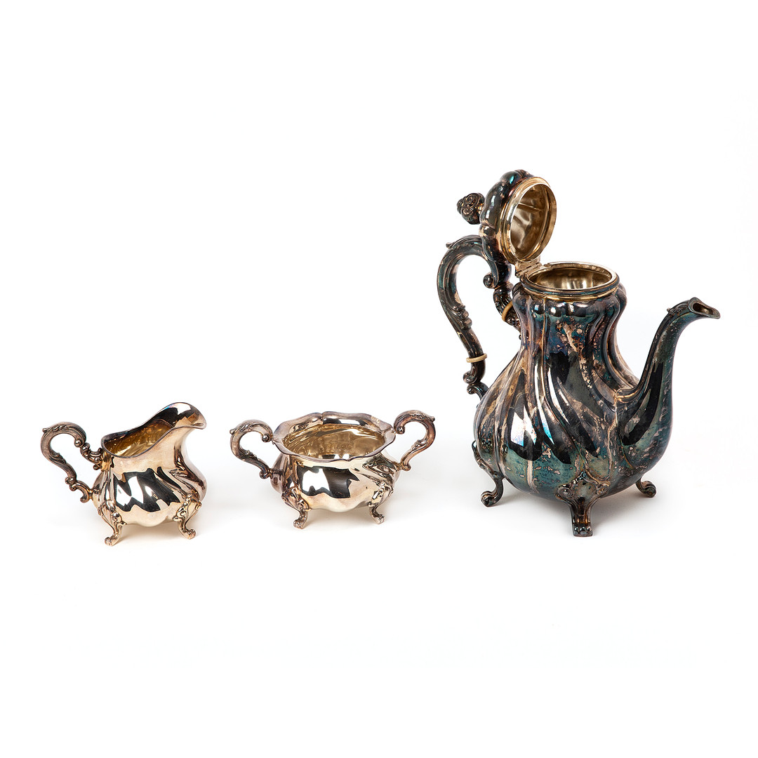 4950977. KAFFESERVICE. 3 stk., sterlingsølv, importstemplet.